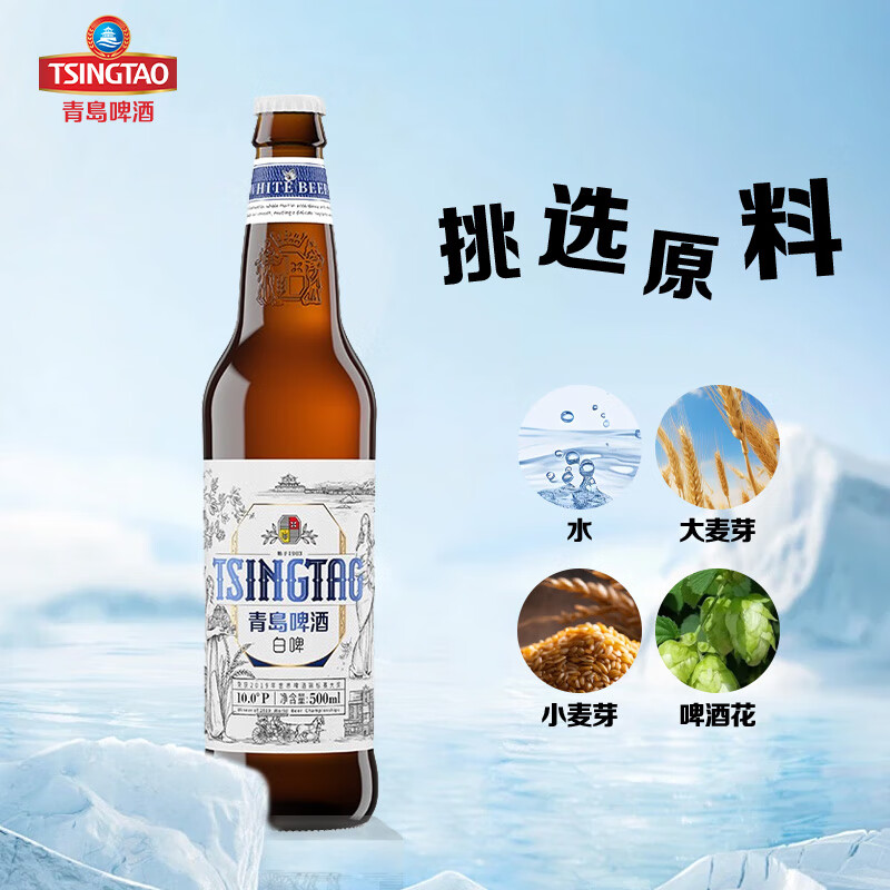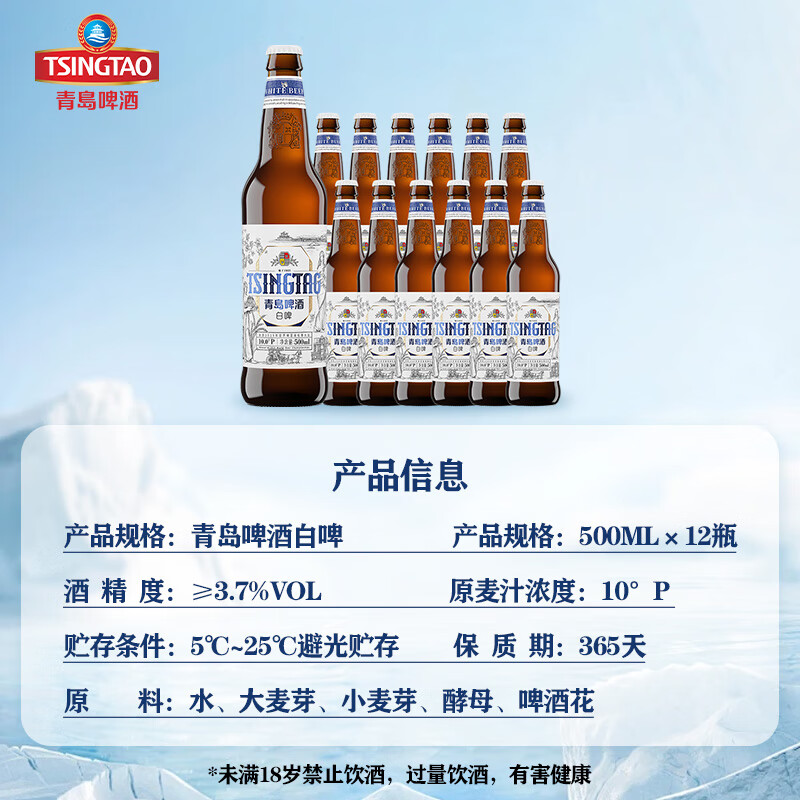 青岛啤酒 全麦白啤 3.7%vol 500ml*12瓶