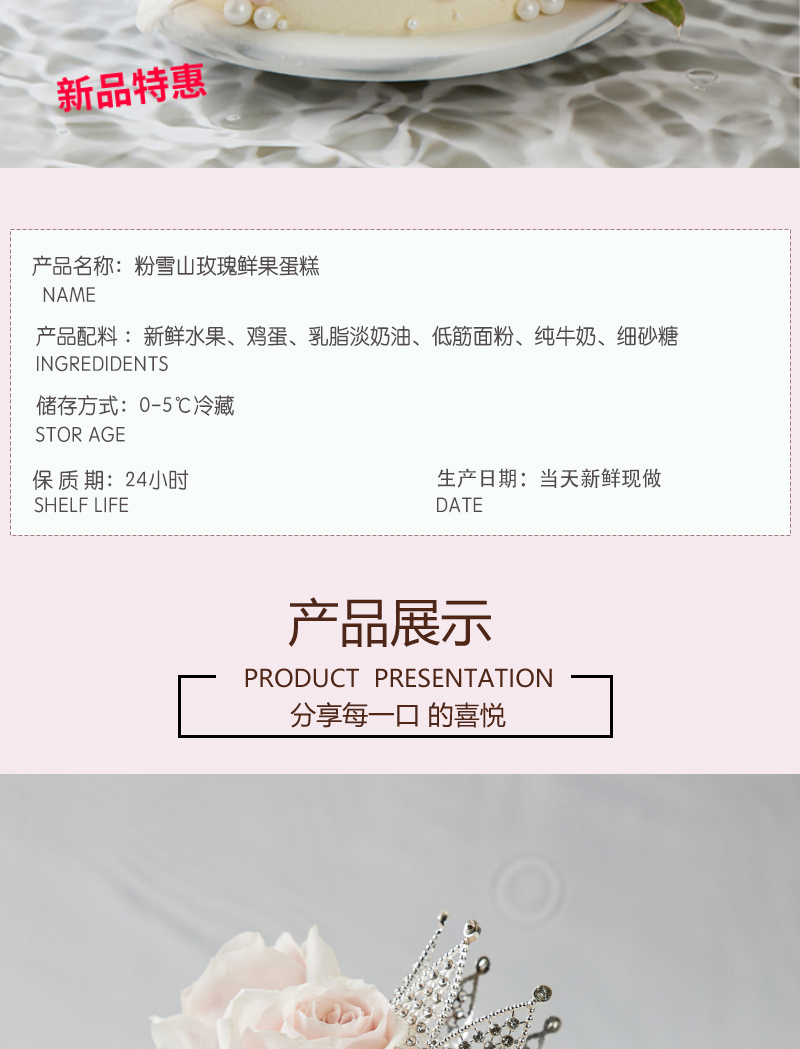 Women's Day 粉雪山玫瑰鲜果蛋糕【惠州】
