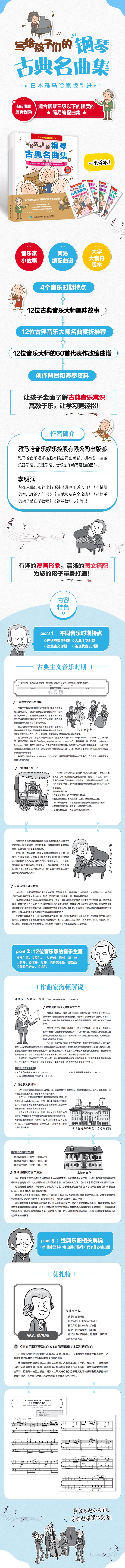本书是为孩子们想要弹奏钢琴古典名曲而量身定制的曲集。本书分为四册,***含*2位音乐家的60*耳熟能详的古典音乐乐谱,还*含了孩子们学习古典音乐需要了解的四个重要的音乐时期,以及这些重要时期中*2位音乐家的生平故事和代表作品的讲解。 本书分为四册,第*册讲解了巴洛克音乐时期的*点,以及维瓦尔第、亨德尔、巴赫的成长故事及*5*代表作品;第二册阐述了古典主义时期的*点,以及海顿、莫扎*、贝多芬的生平往事及*5*代表作品;第三册描述了浪漫主义时期的*点,以及舒伯*、肖邦、柴可夫斯基的成长历程及*5*代表作品;第四册讲述了近现代音乐时期的*点,以及德彪西、拉赫玛尼诺夫、拉威尔的音乐生涯及*5*代表作品。这样的内容搭配,**能丰富孩子们的古典音乐常识,还能寓教于乐,让孩子们在练习的过程中更加轻松有趣。 本书适合儿童钢琴初*使用,也可以作为音乐教师的课堂练习教材使用。