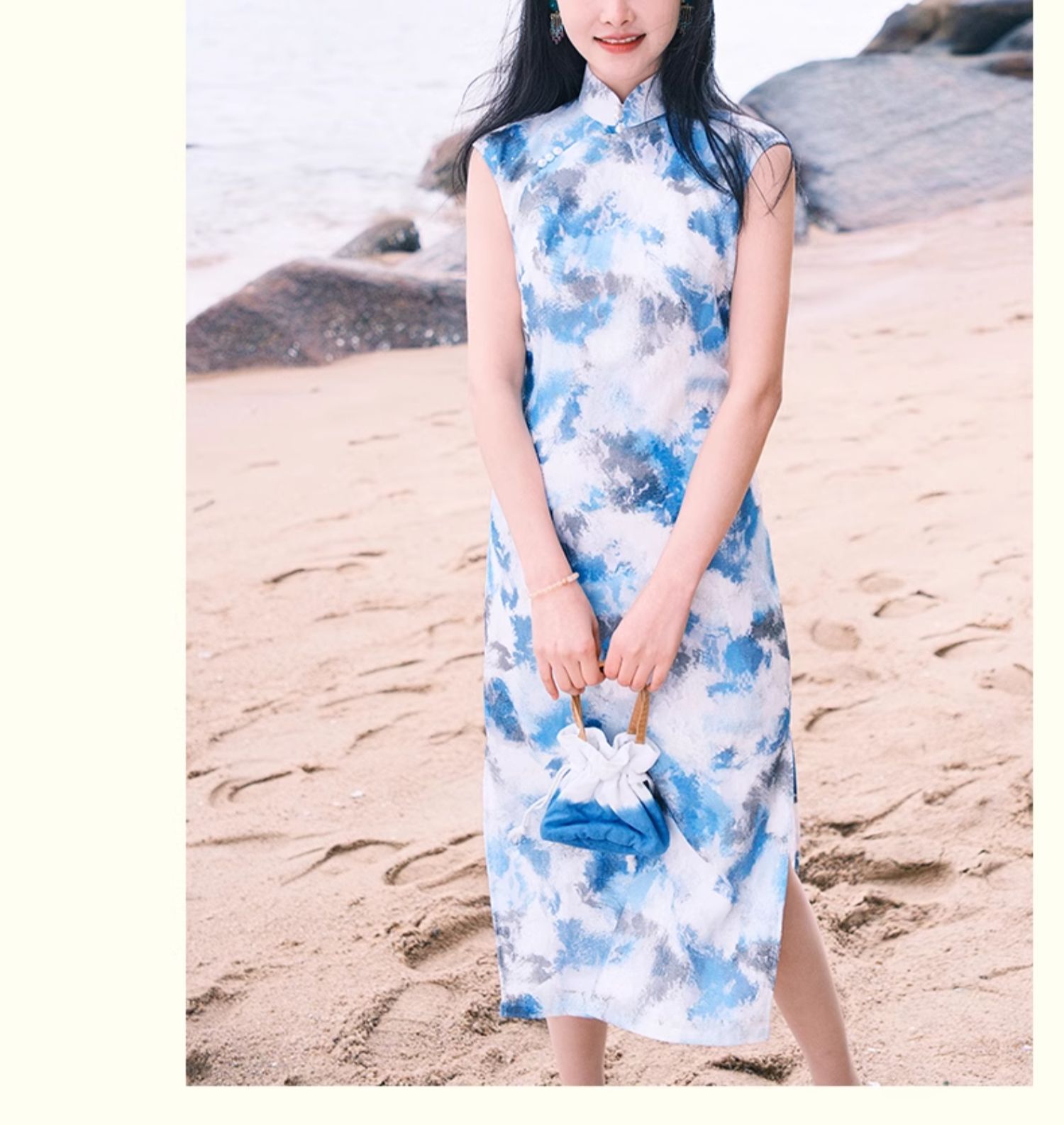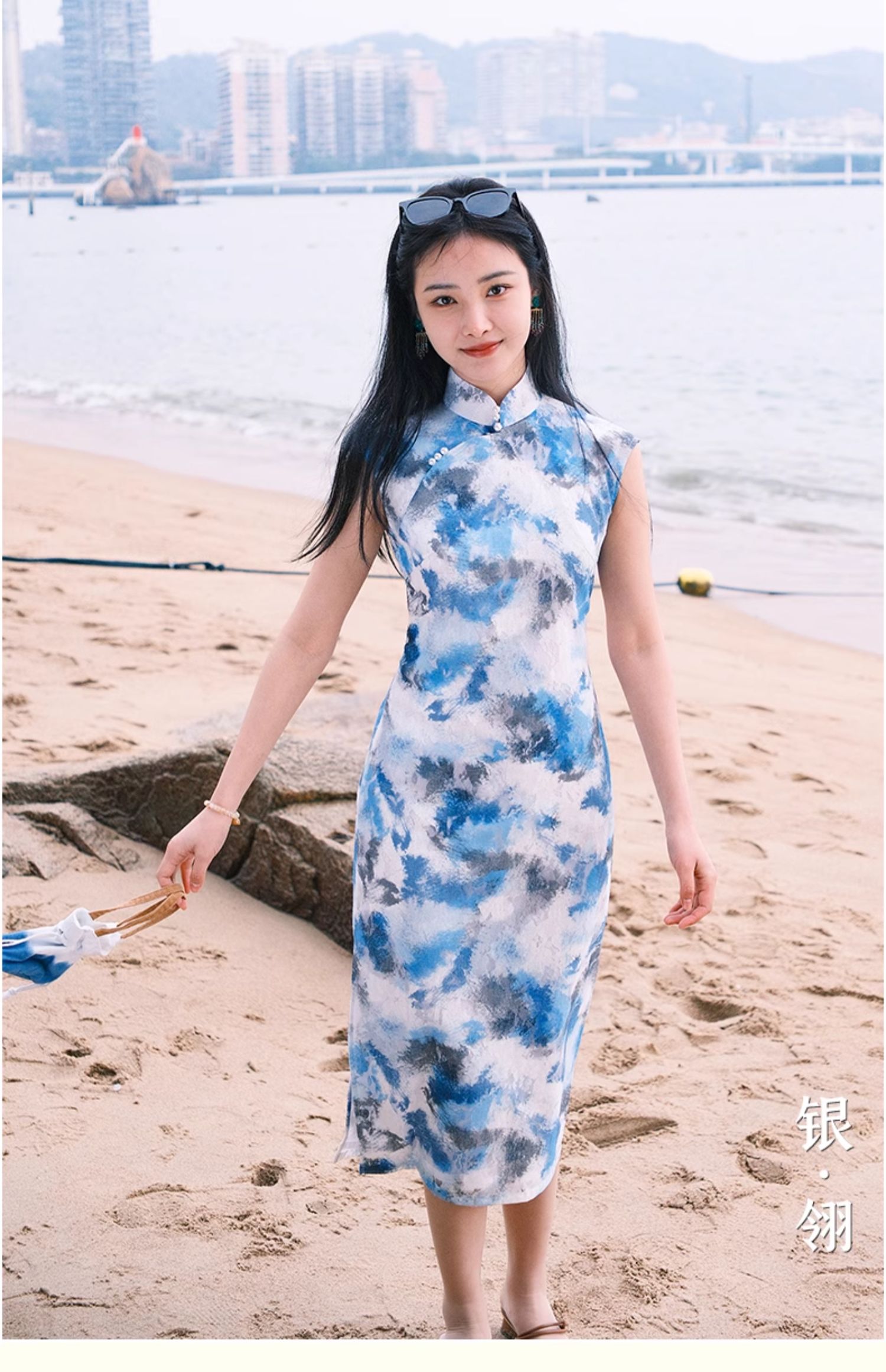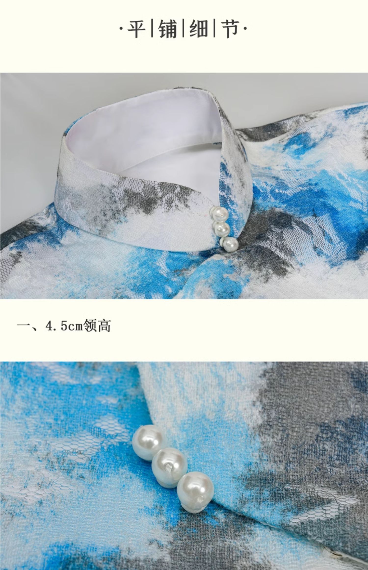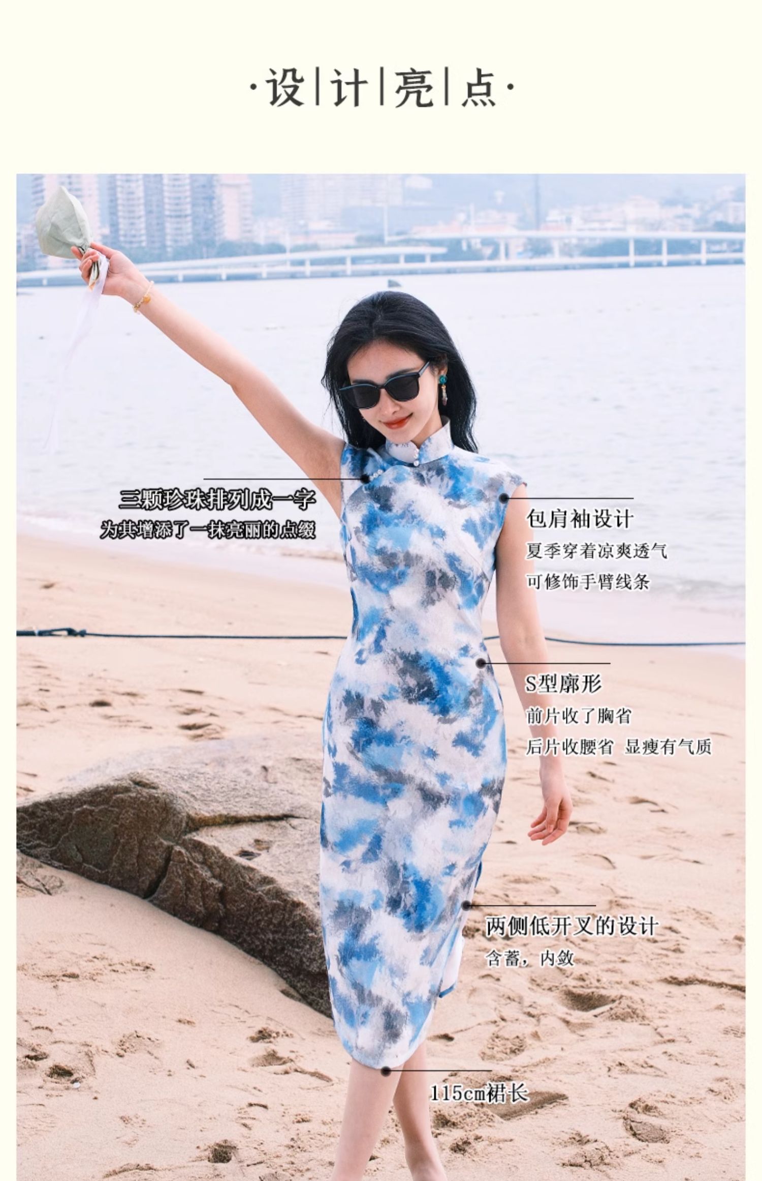 逸红颜明月优选#精致手工钉珠旗袍『山水纪』提花料山水印花针织旗袍,行走的山水画~
