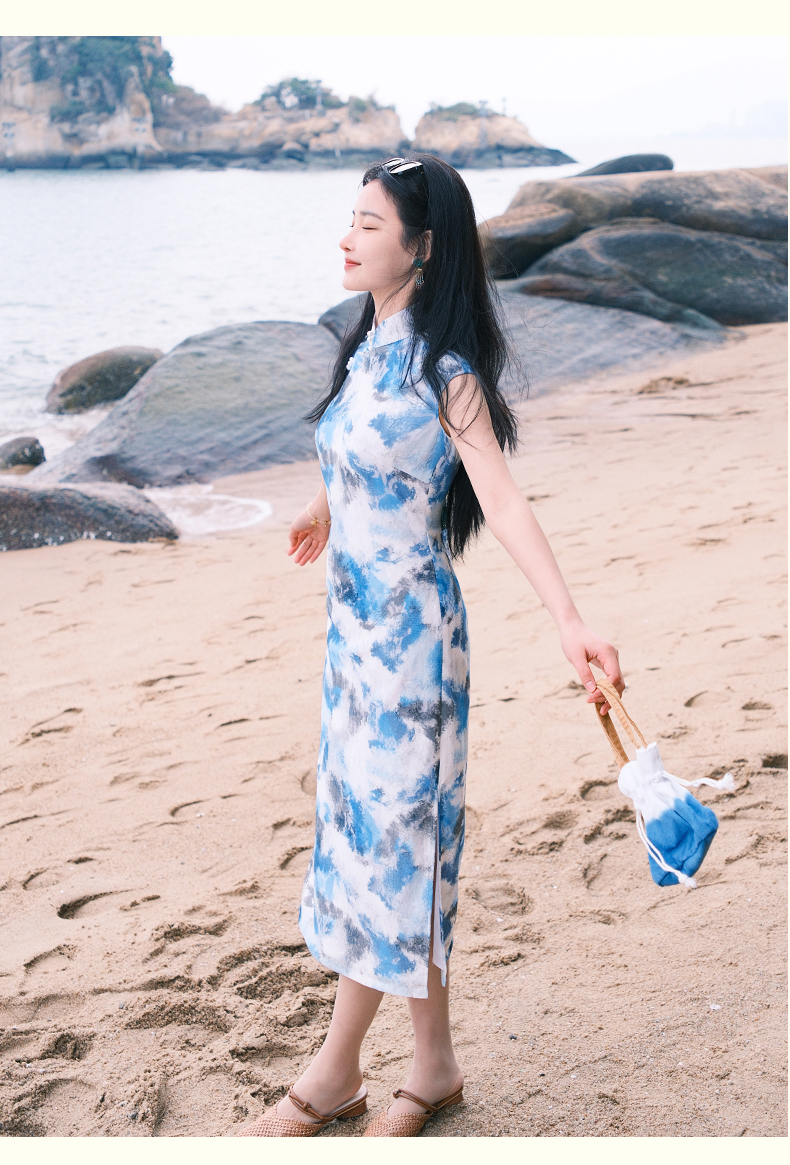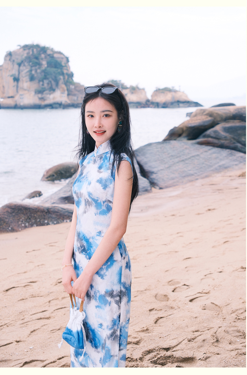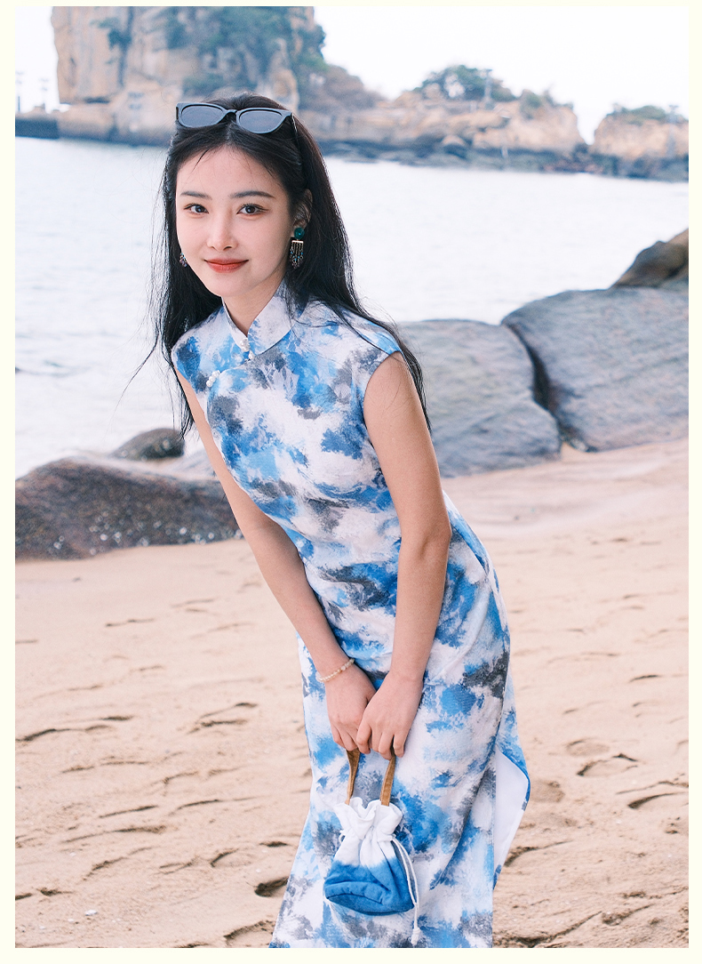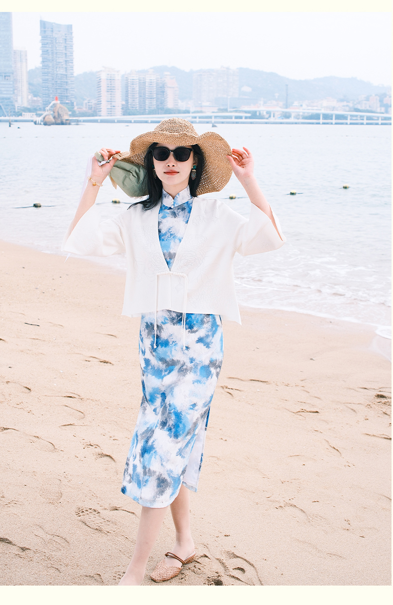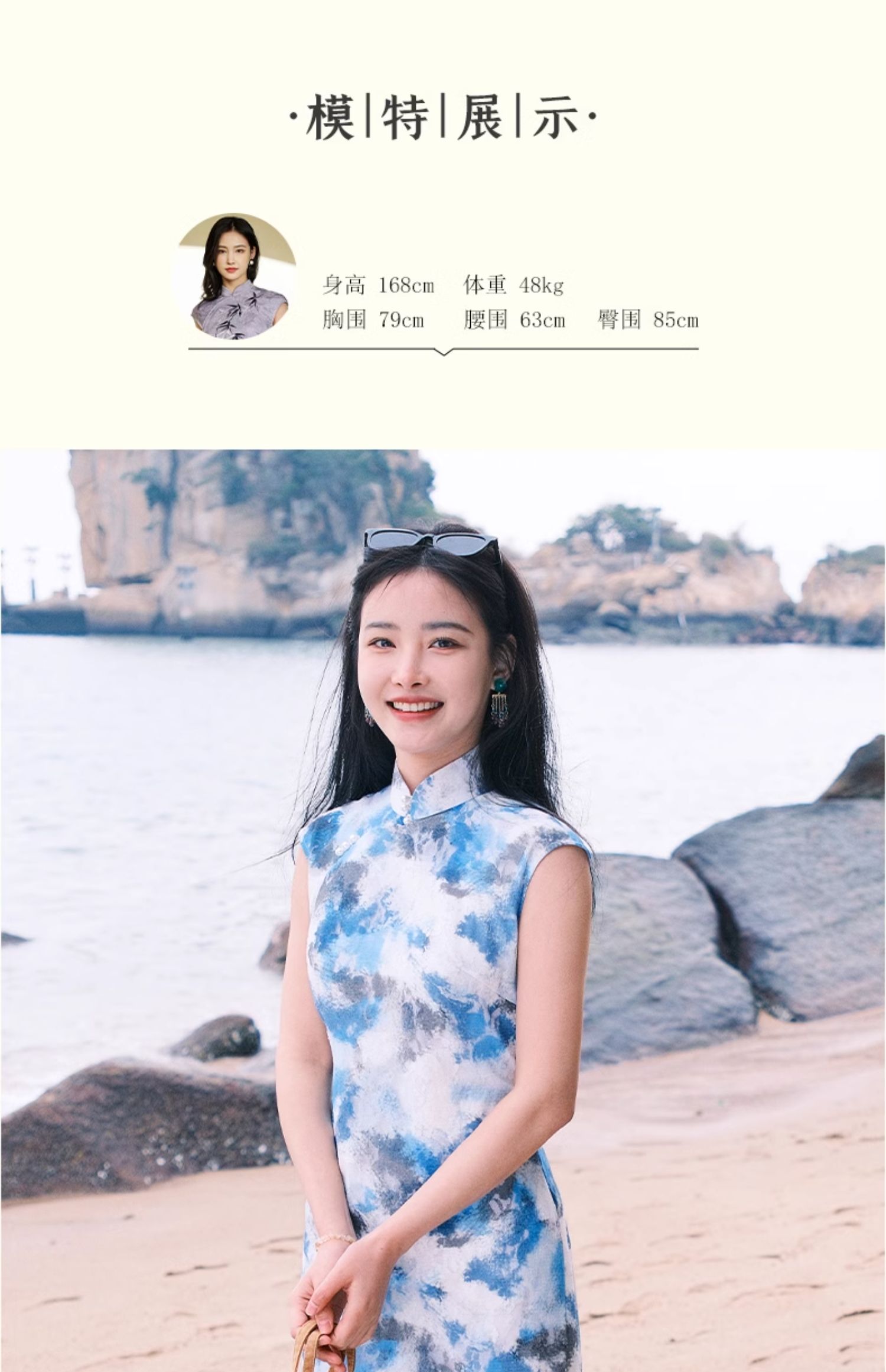 逸红颜明月优选#精致手工钉珠旗袍『山水纪』提花料山水印花针织旗袍,行走的山水画~