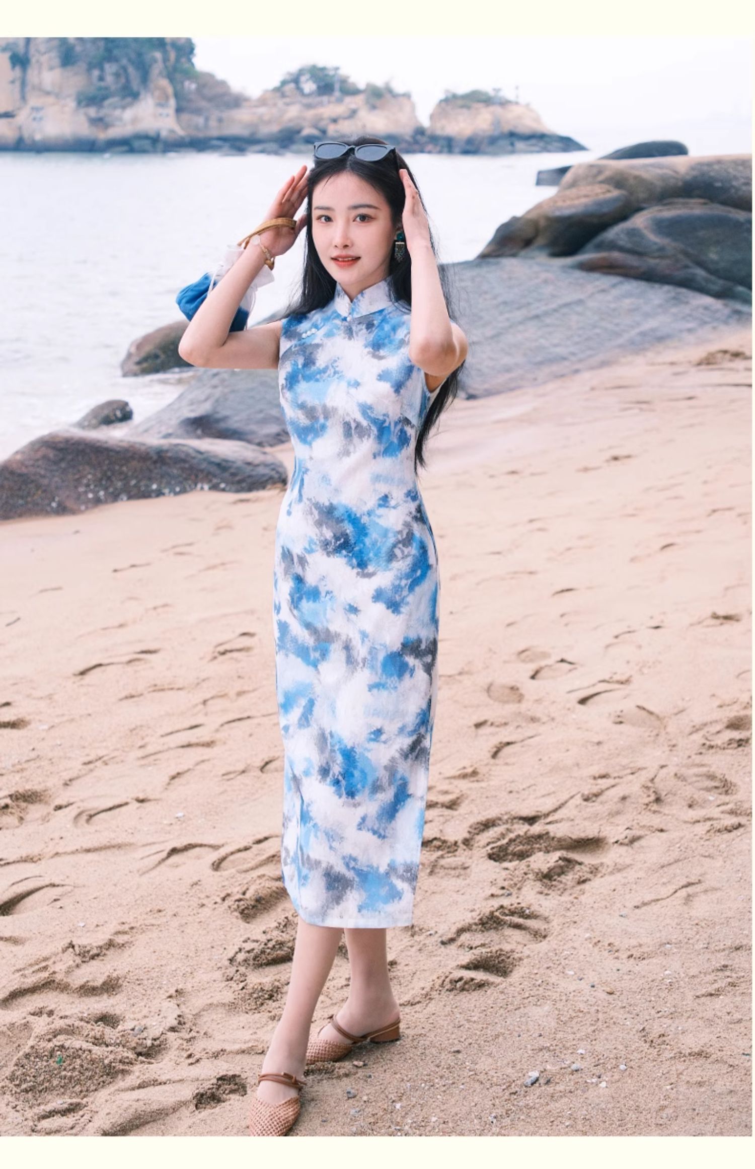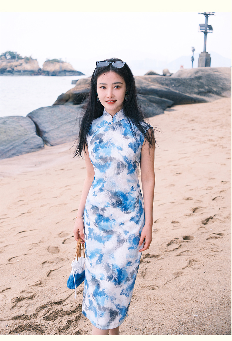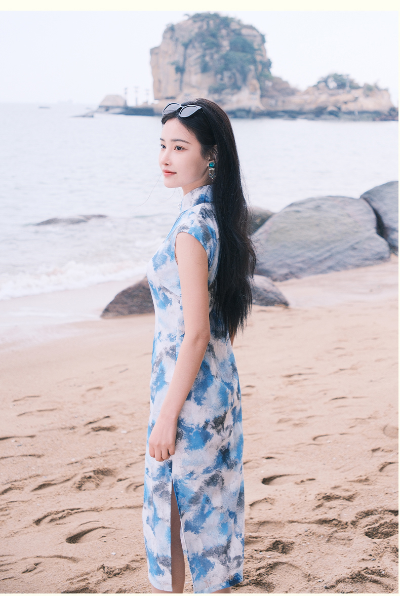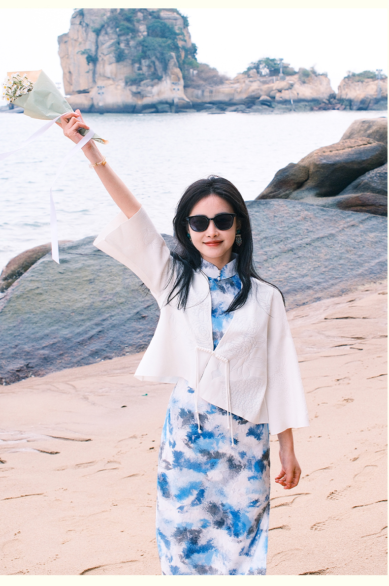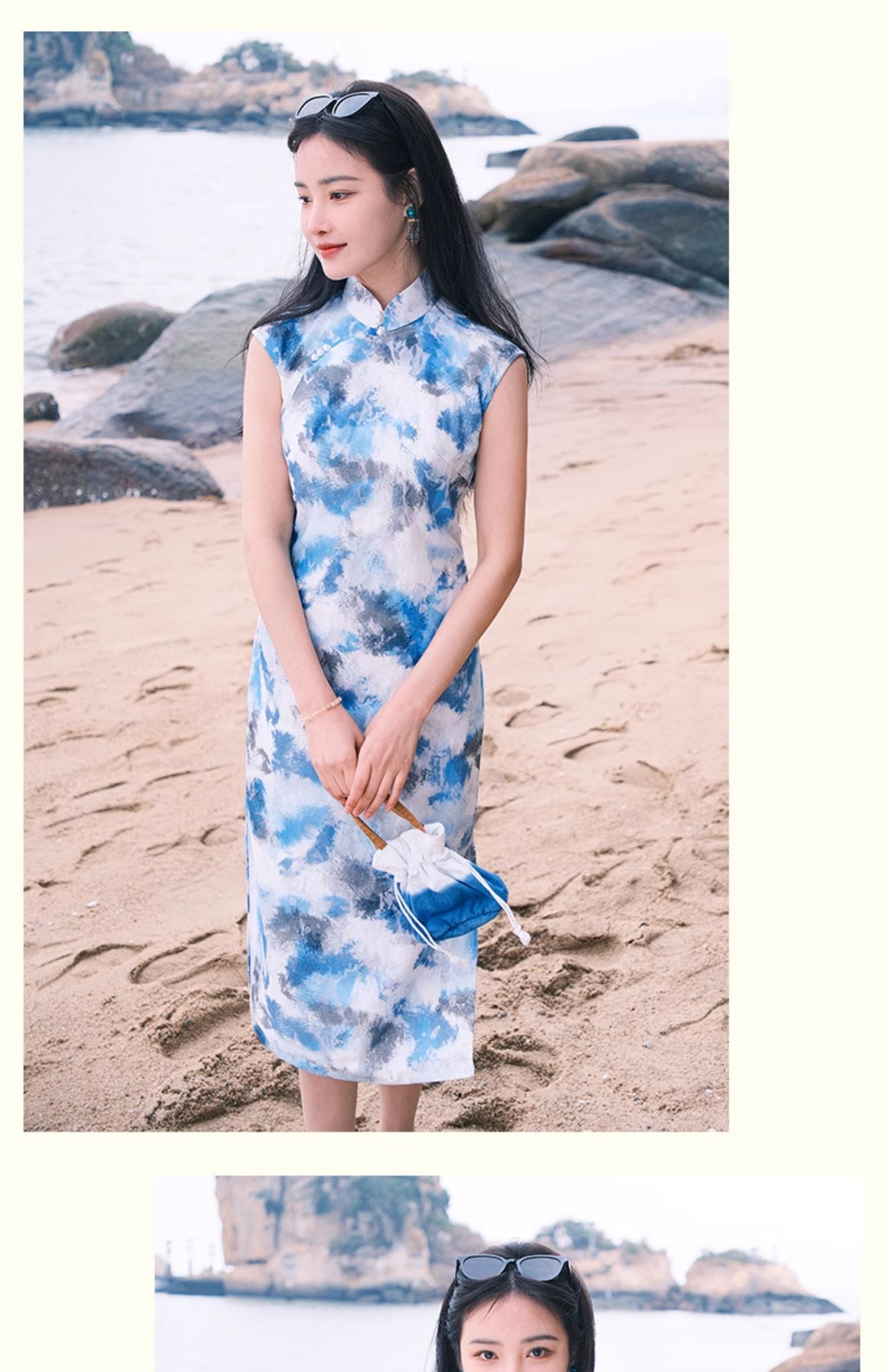 逸红颜明月优选#精致手工钉珠旗袍『山水纪』提花料山水印花针织旗袍,行走的山水画~
