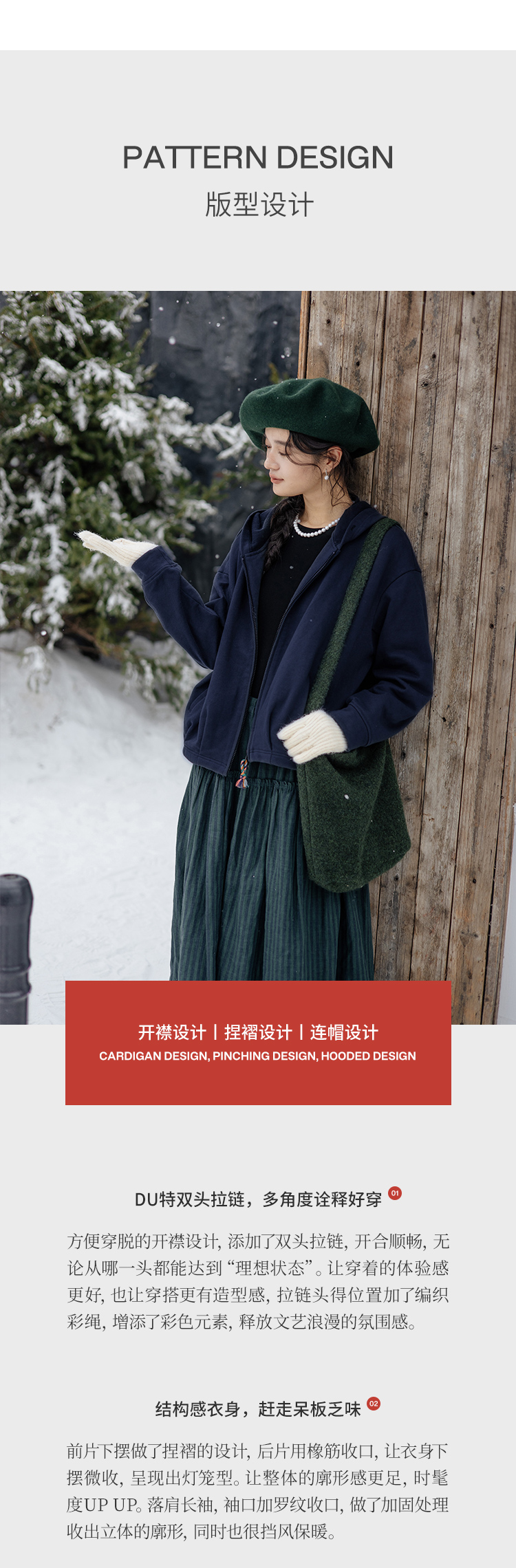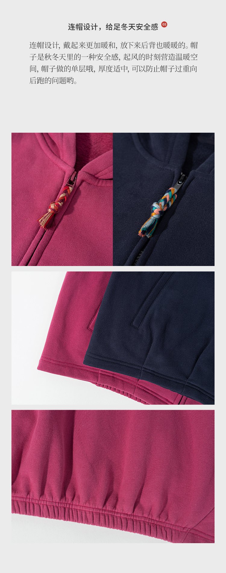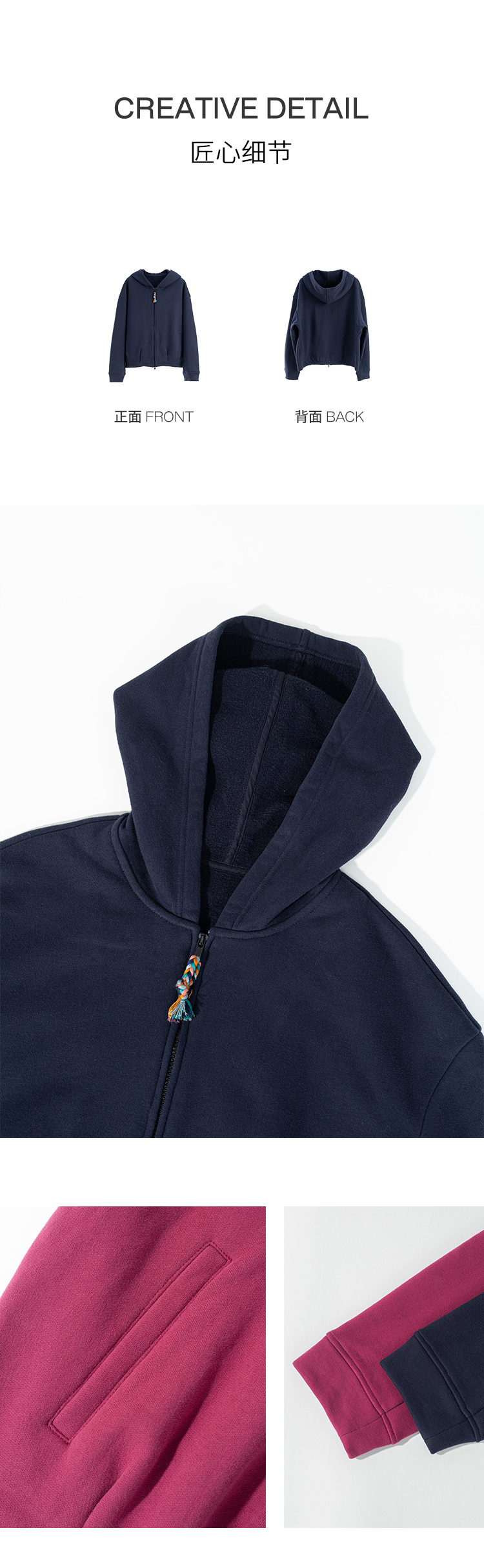 绽放876朵/结构感卫衣秋冬纯棉加绒开襟双头拉链宽松外套连帽上衣