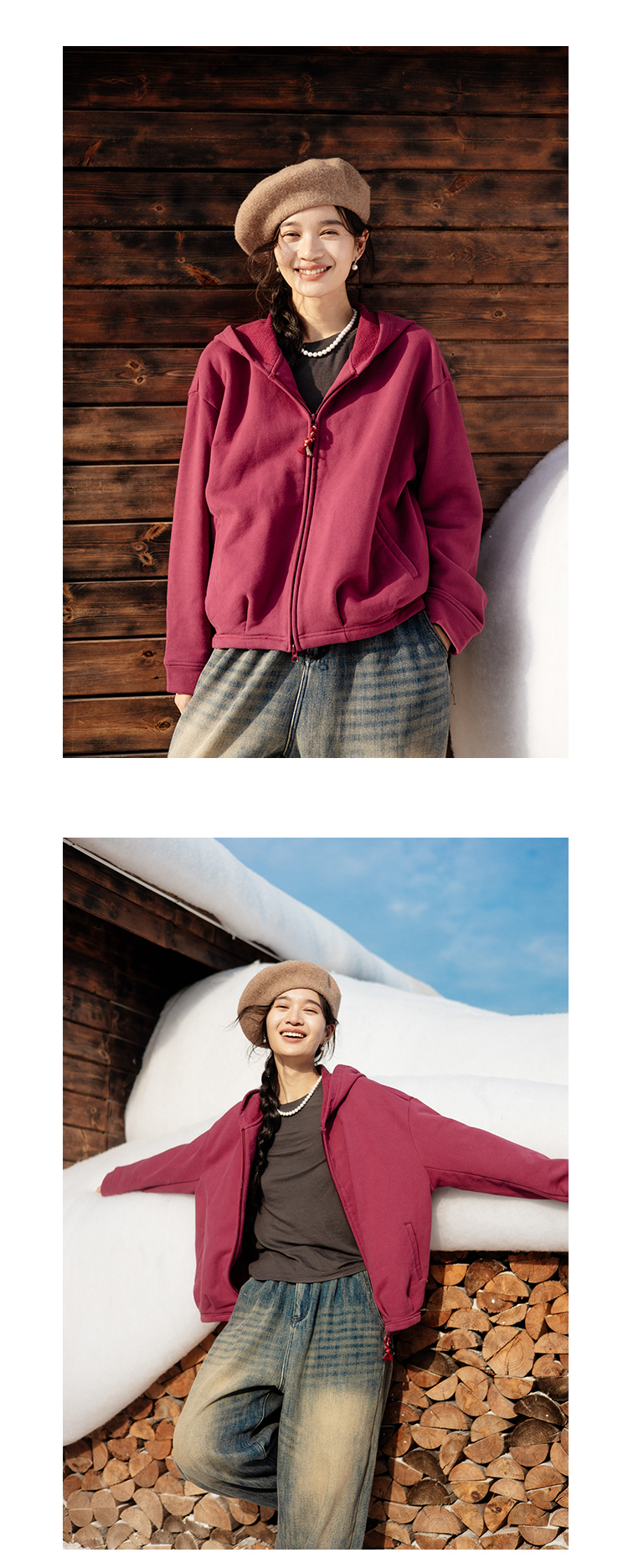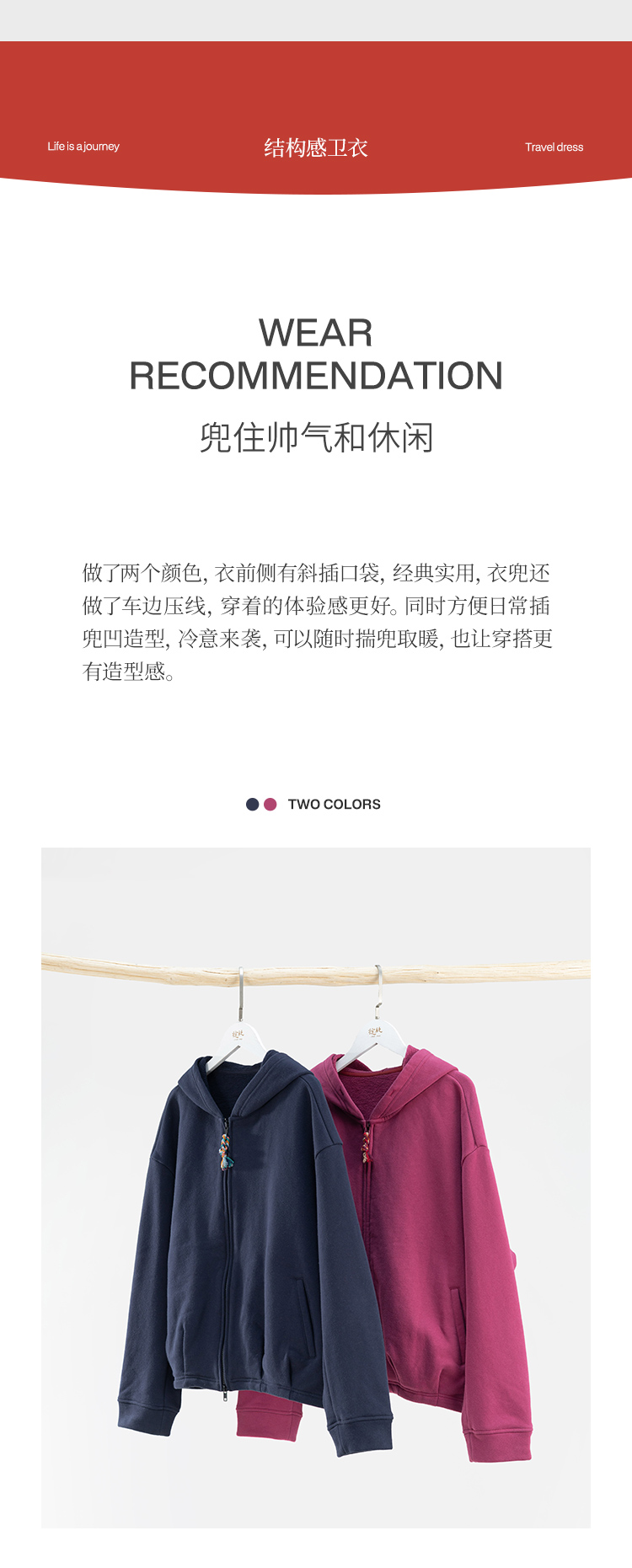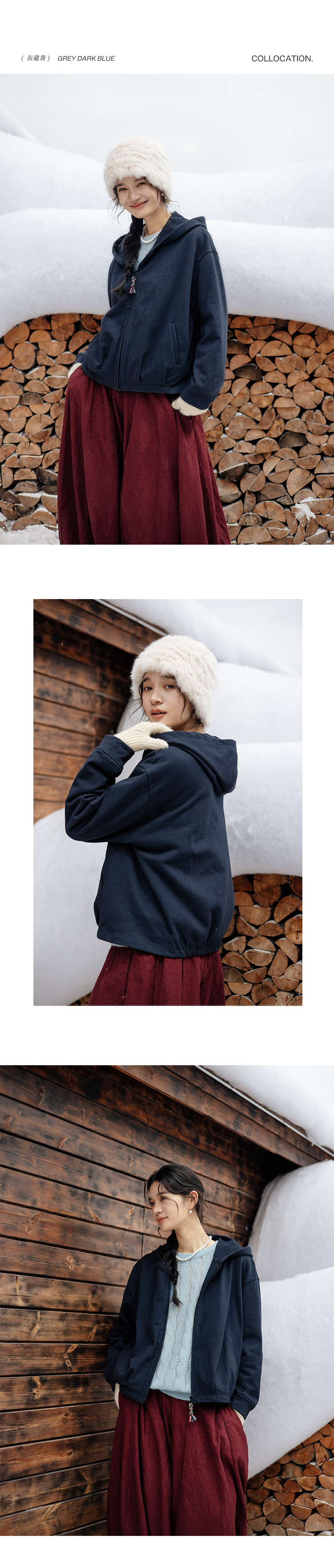 绽放876朵/结构感卫衣秋冬纯棉加绒开襟双头拉链宽松外套连帽上衣