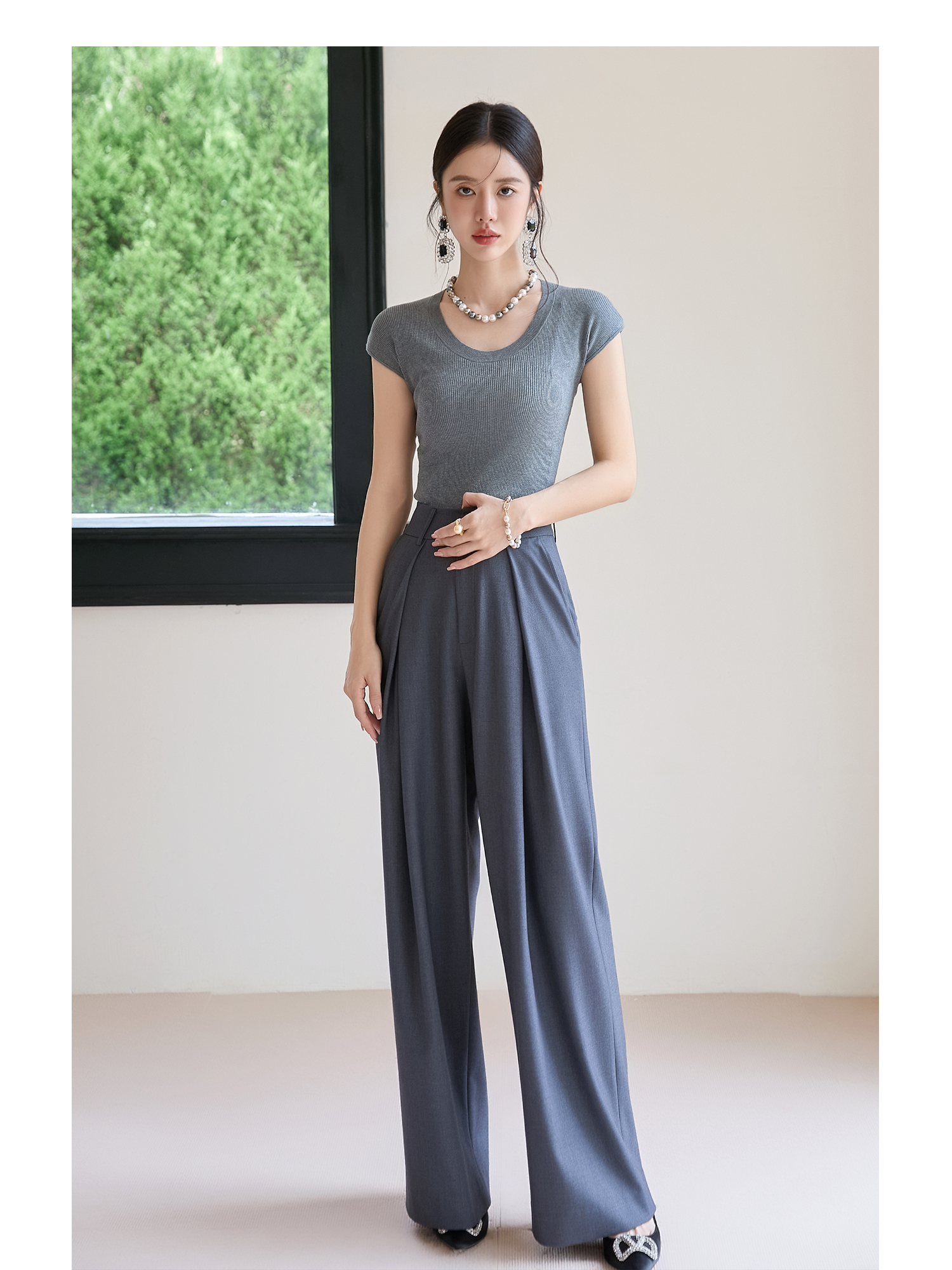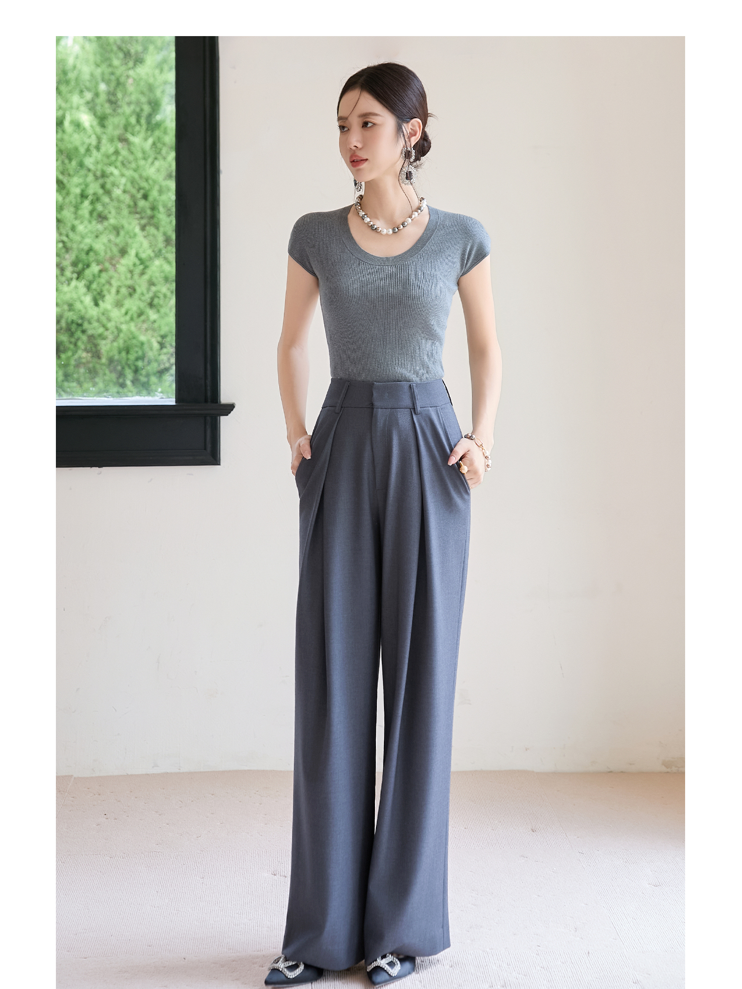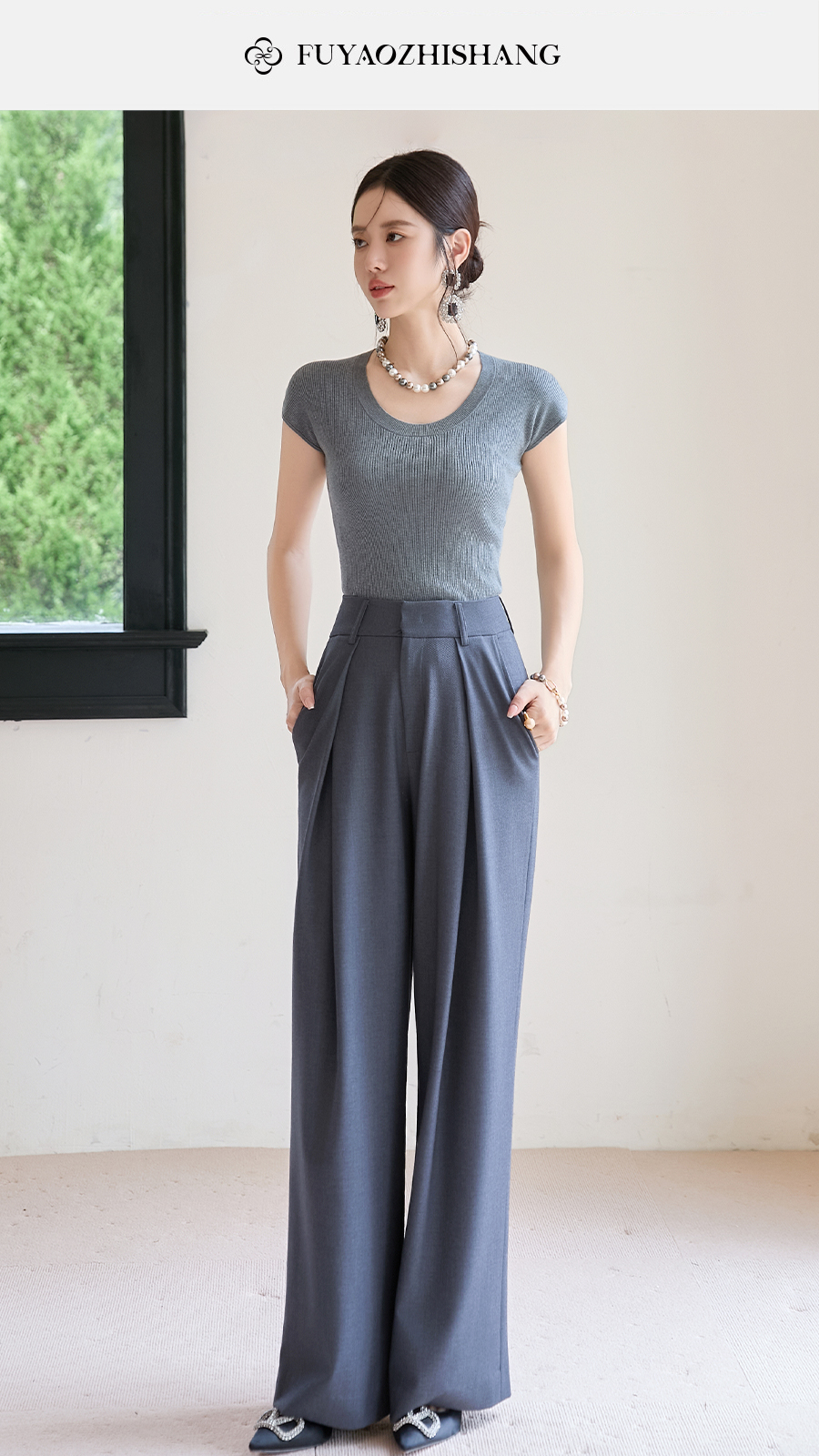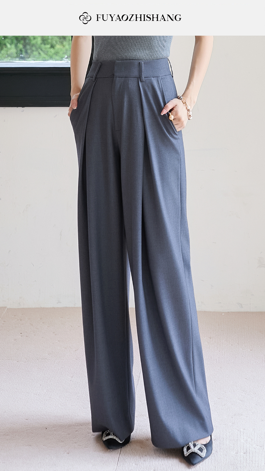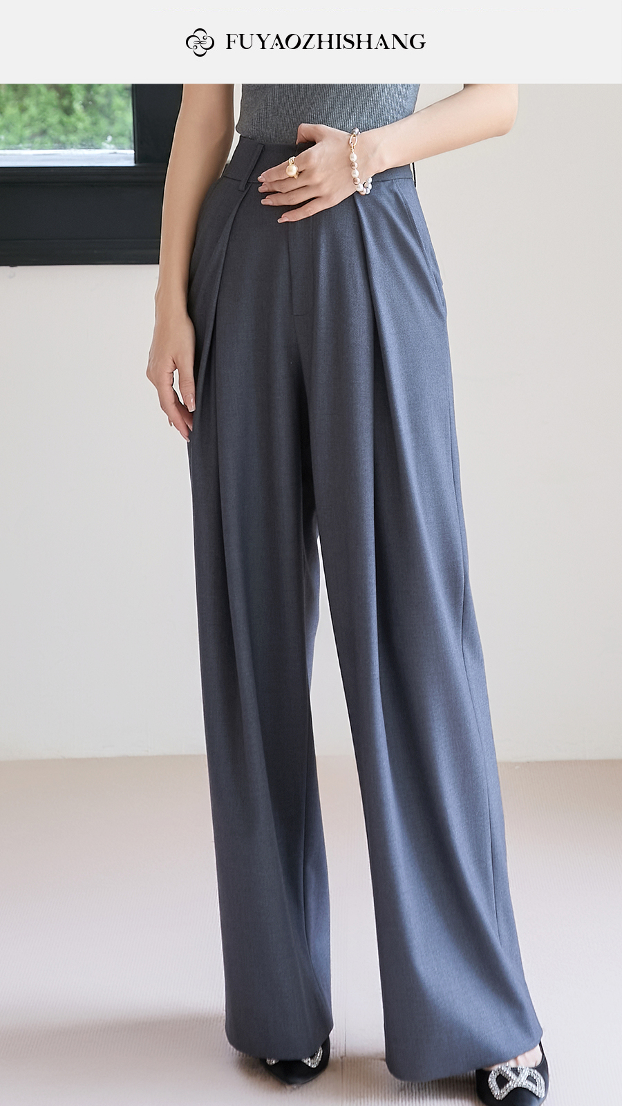 FUYAO扶摇 轻奢气质西装裤女高级感垂感直筒阔腿裤高腰百搭休闲裤