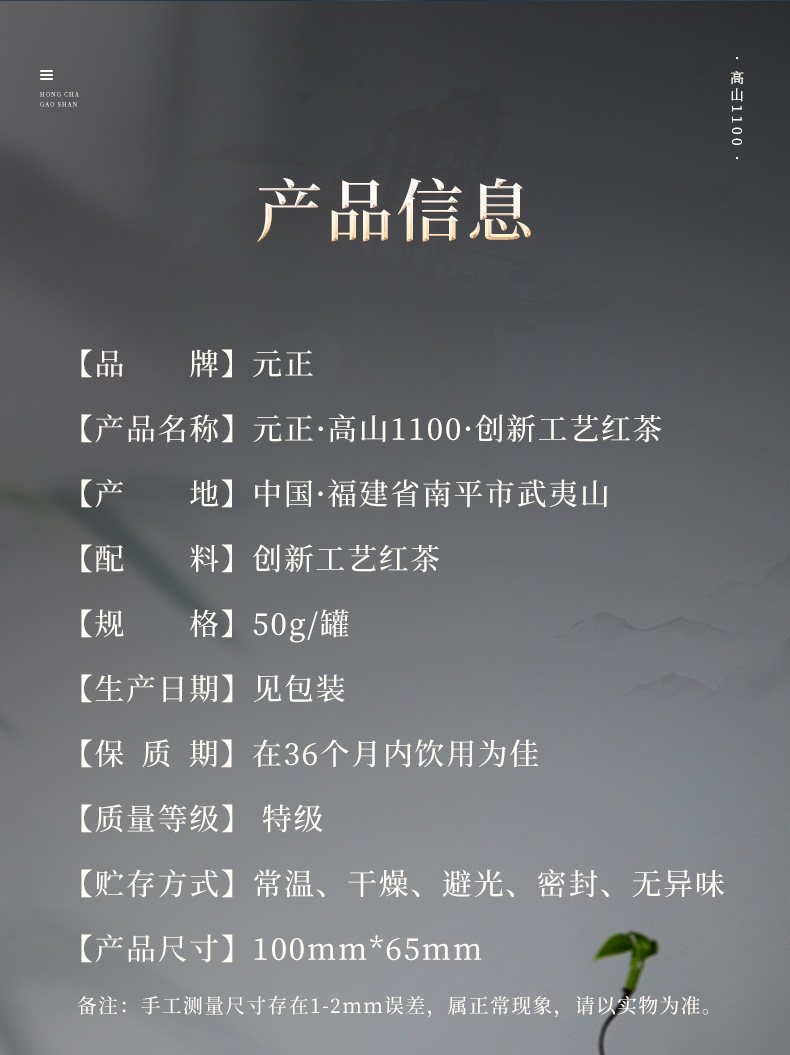 包装改版 元正 茶颜高山1100 特级武夷红茶叶罐装50g/150g