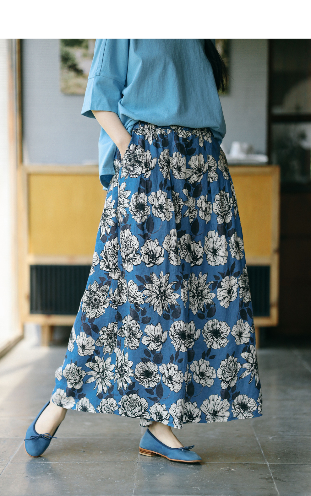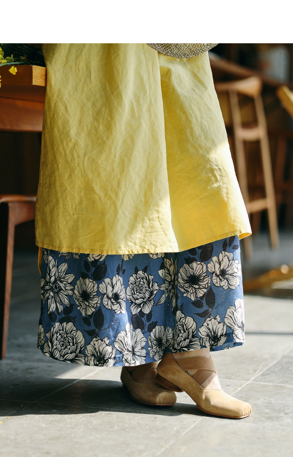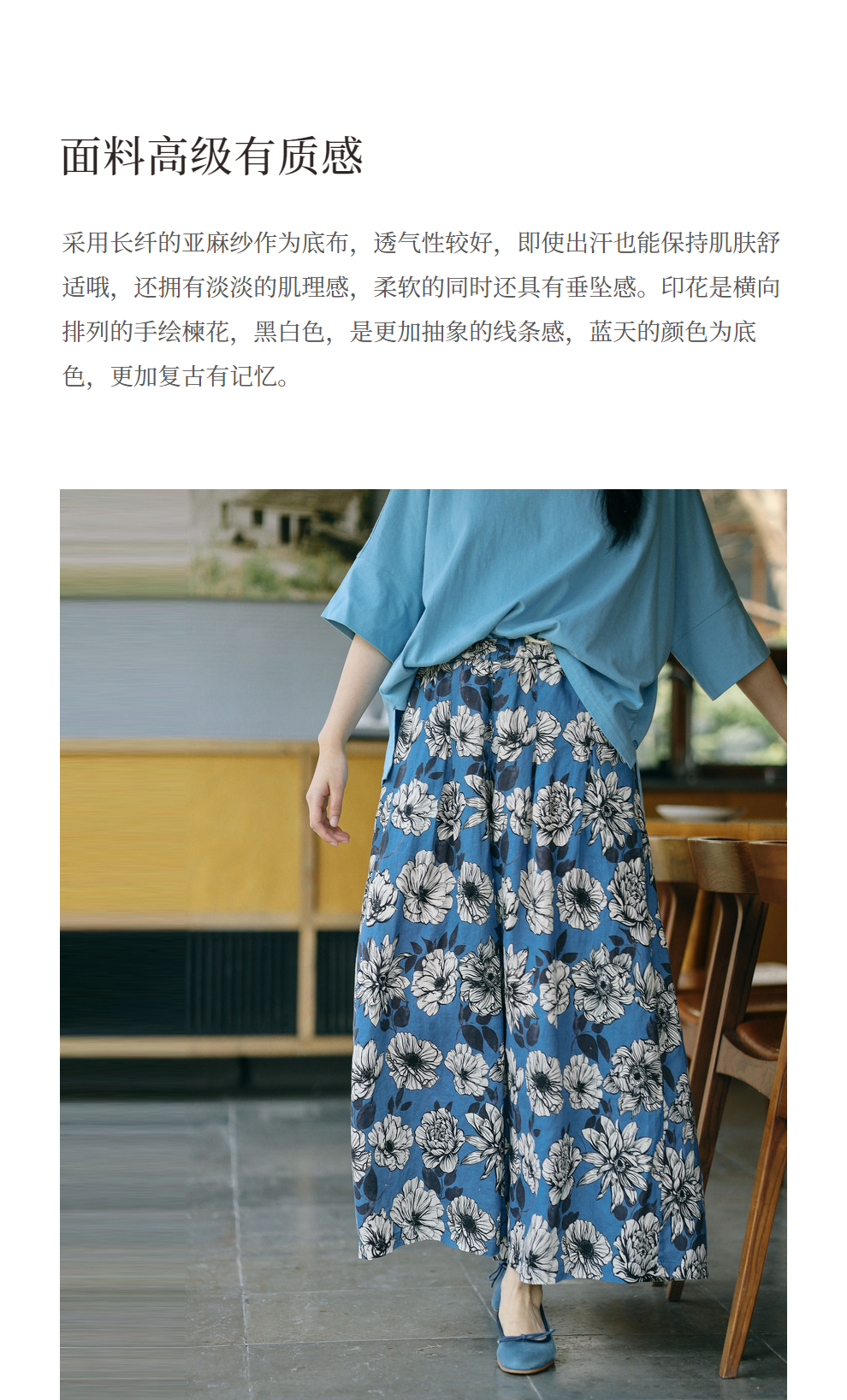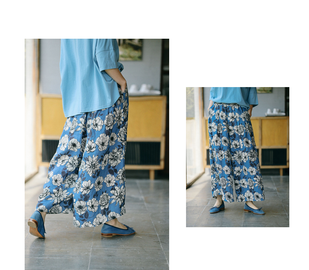 绽放253朵/高支亚麻手绘楝花复古文艺宽松休闲阔腿