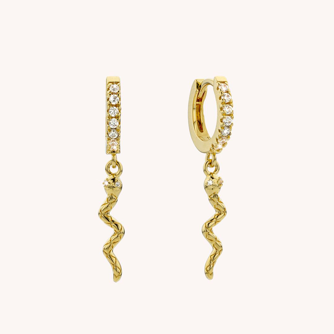 北京仓|MYA-BAY-LITTLE SNAKE-蛇来运转 锆石 hoop 吊坠耳环(单只)[比利时设计师]