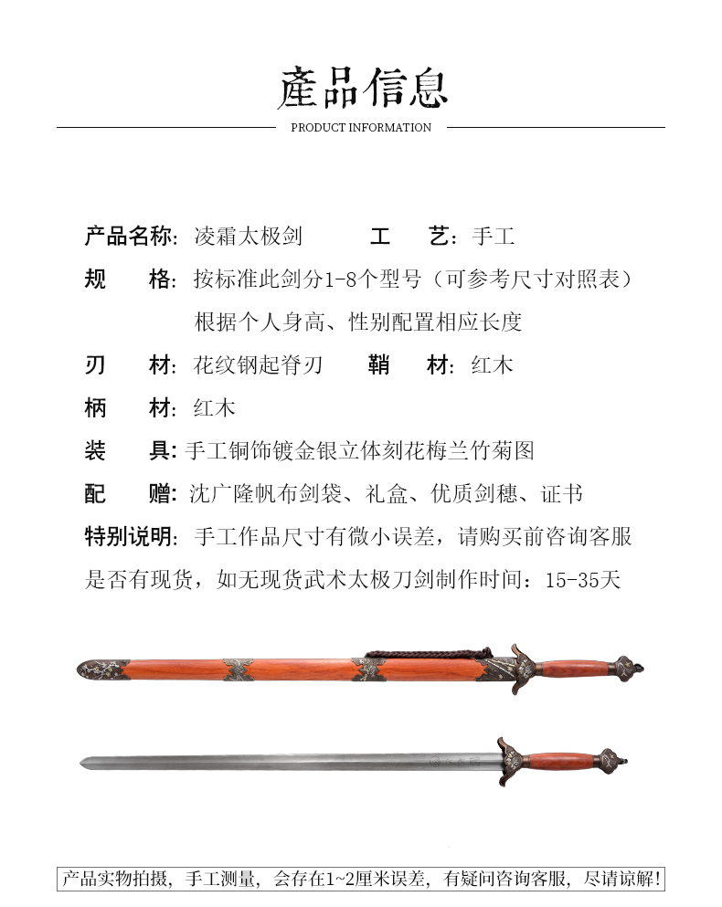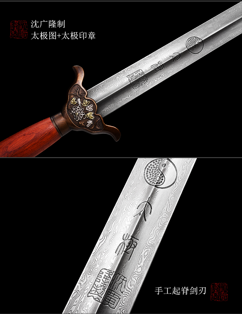 凌霜太极剑 花纹钢太极剑 标准武术太极剑 龙泉沈广隆宝剑 未开刃