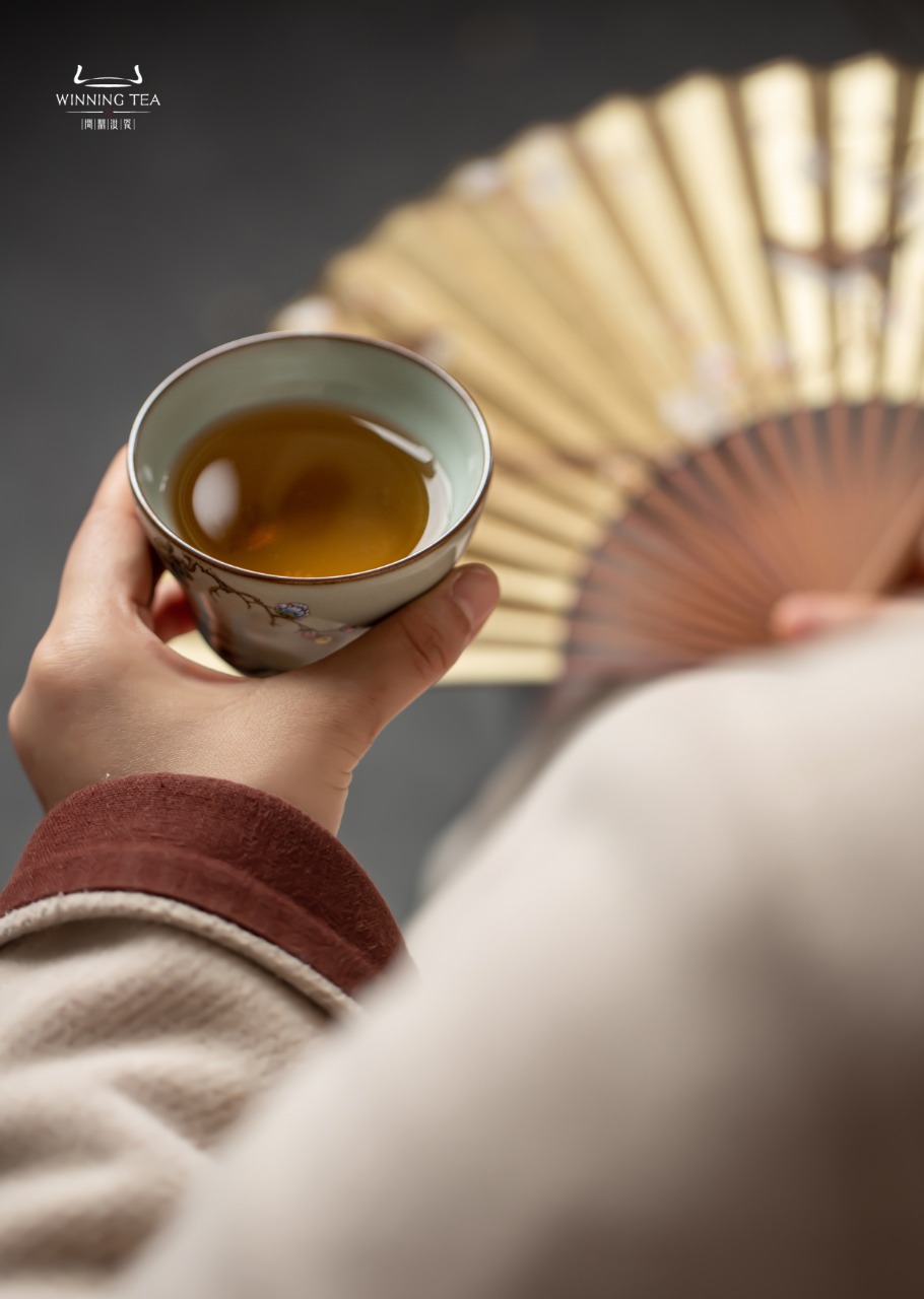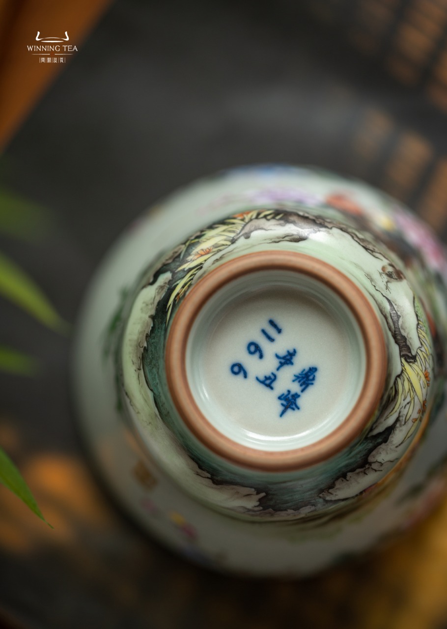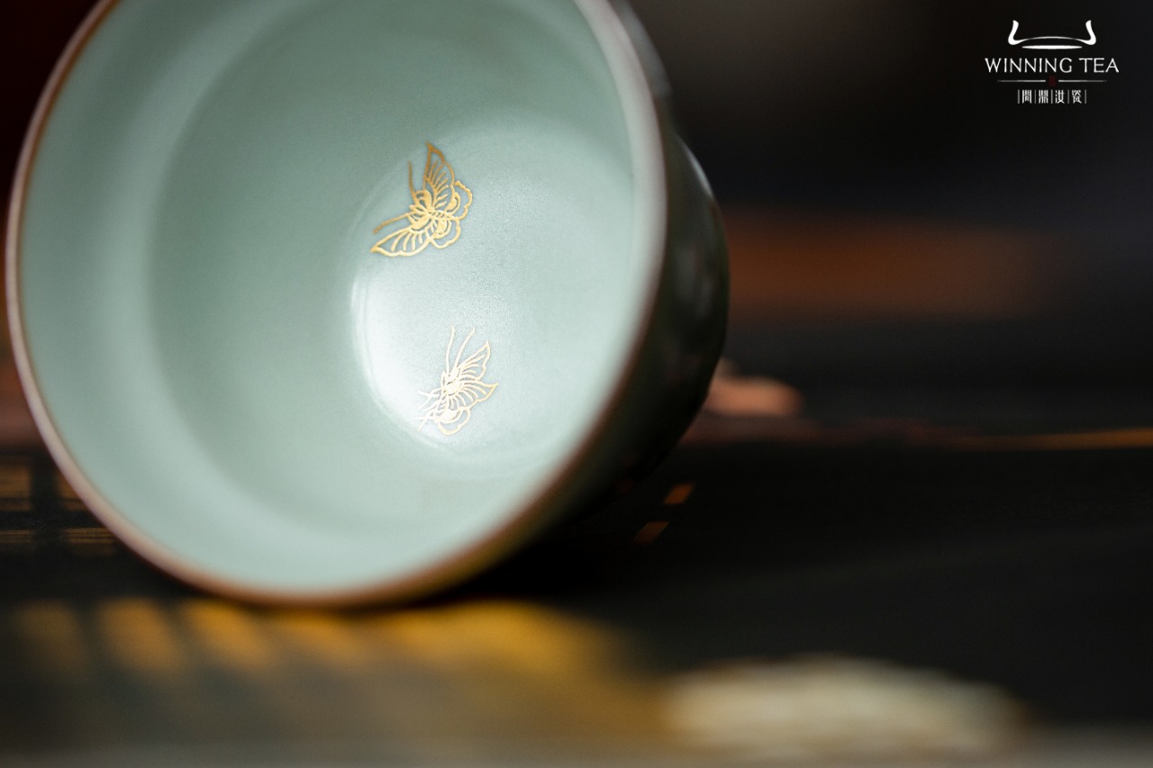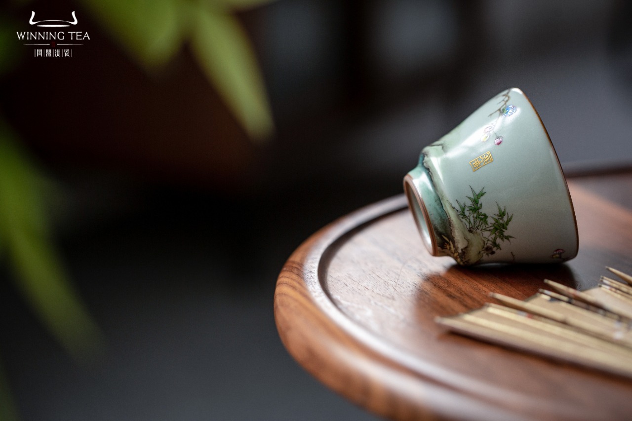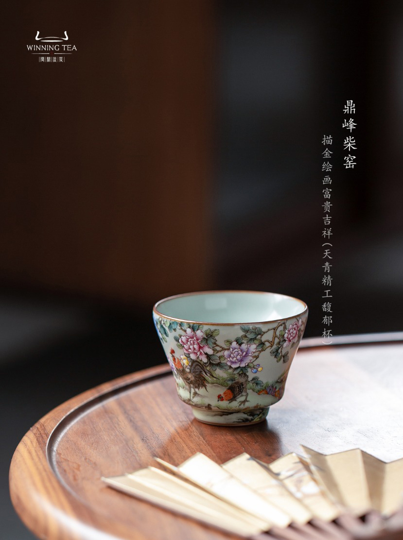 问鼎汝瓷鼎峰柴窑天青精工馥郁杯(描金绘画富贵吉祥)(缺货)