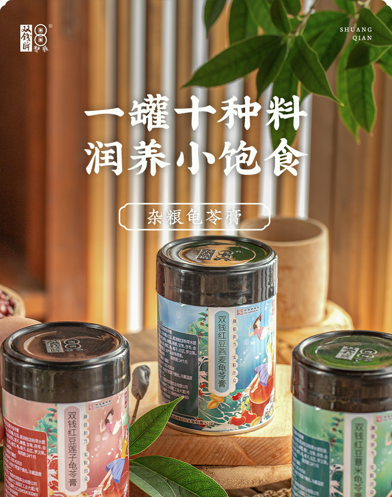 广西梧州双钱牌杂粮龟苓膏红豆薏米/莲子/燕麦口味200g*3罐/6罐装养胃代餐懒人零食地方特产