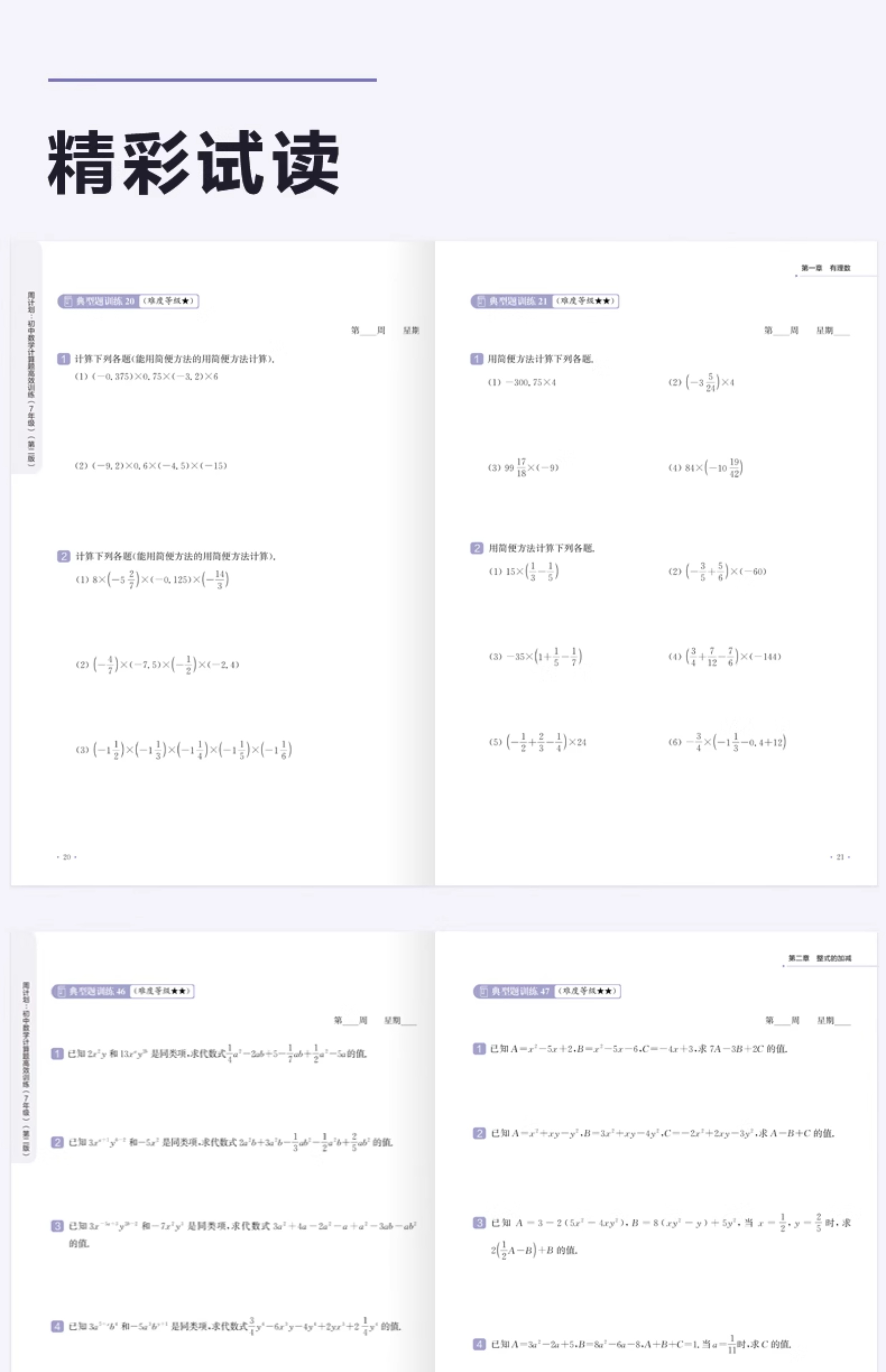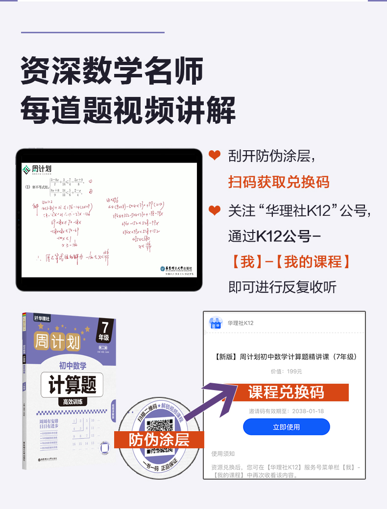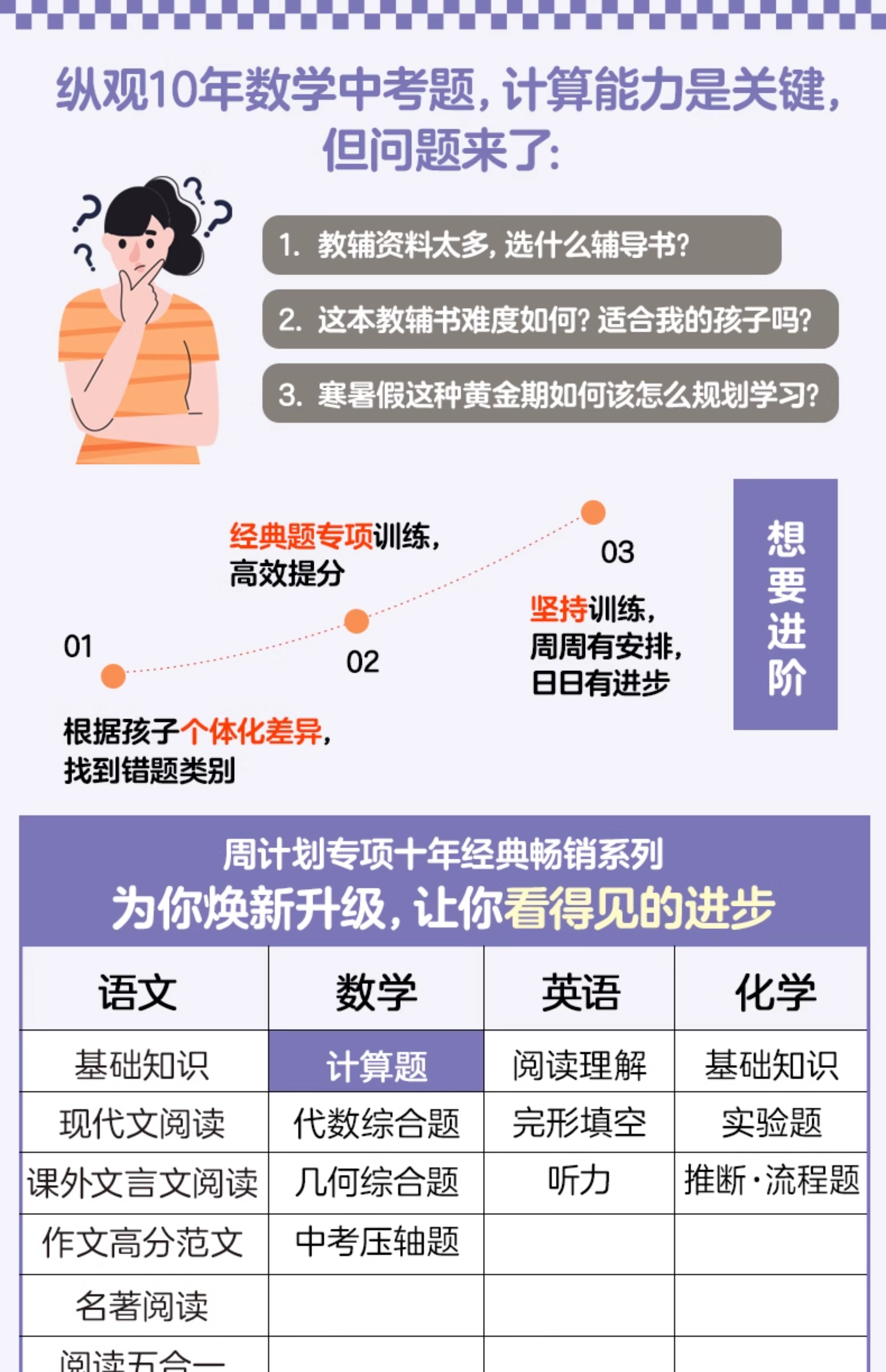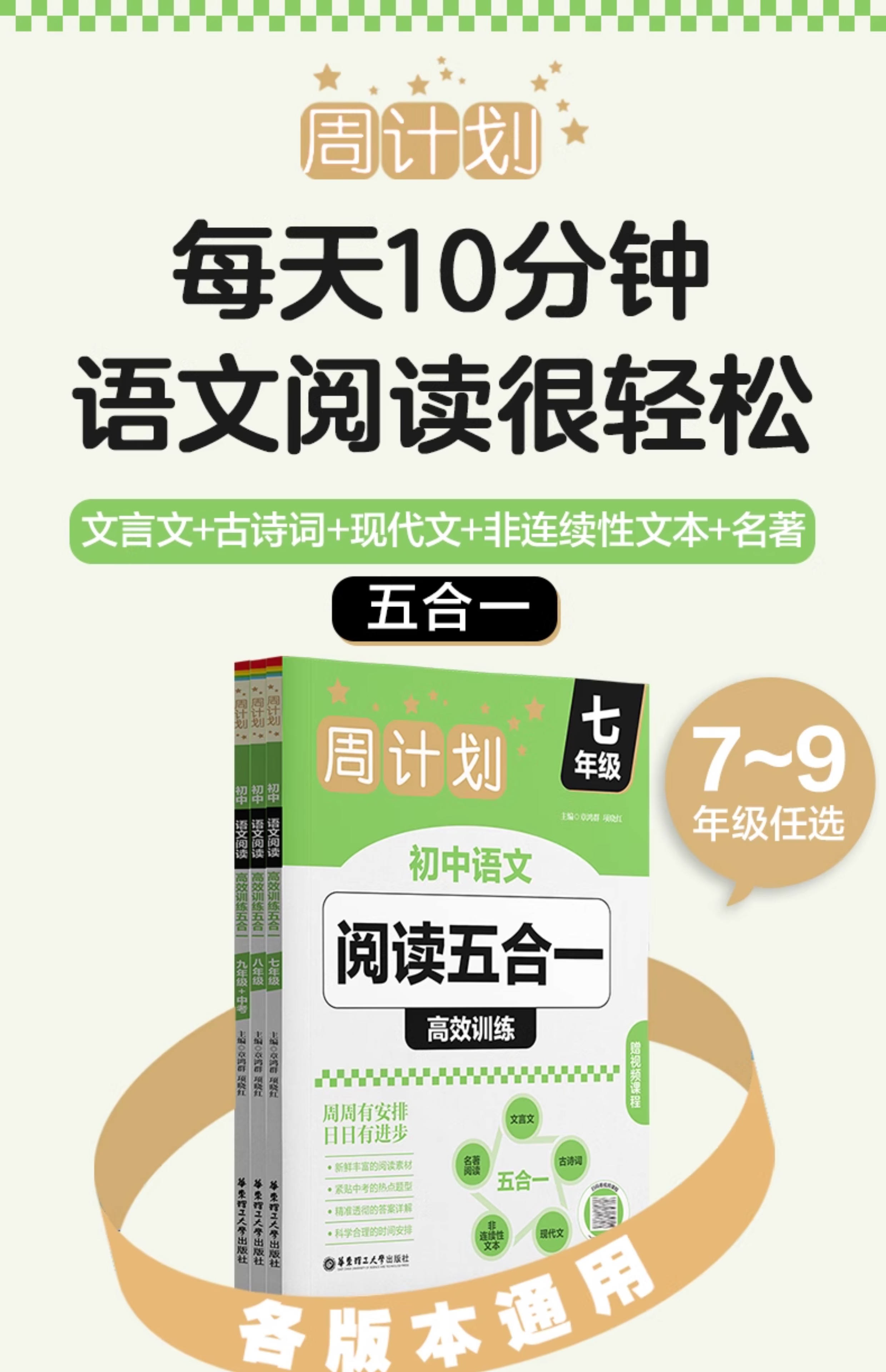 华理社周计划初中数学计算题高效训练赠视频讲解+语文阅读五合一+英语阅读理解789年级中考初一初二初中数学语文英语专项练习