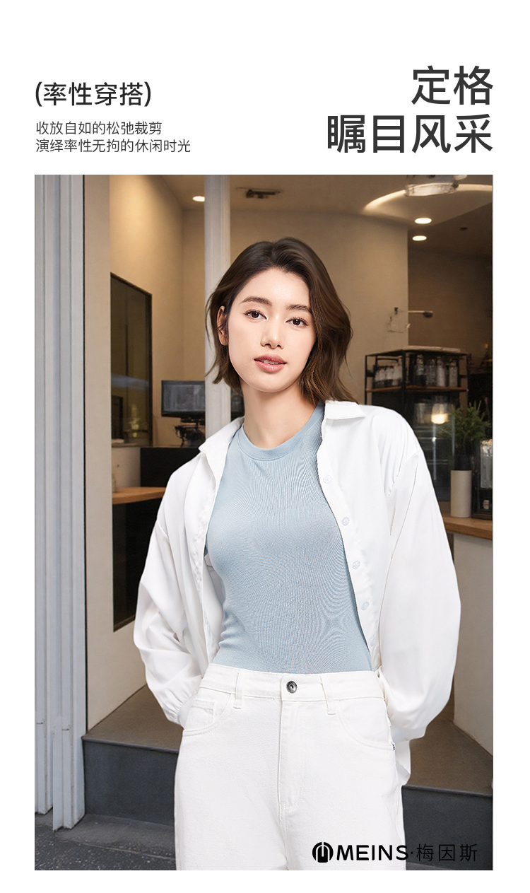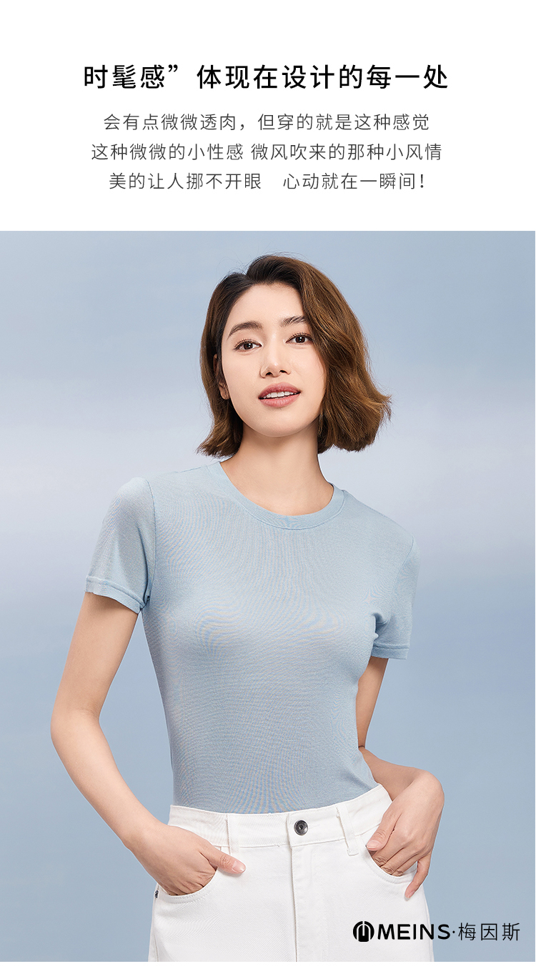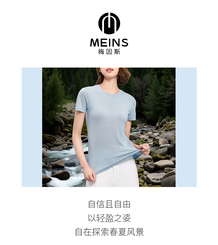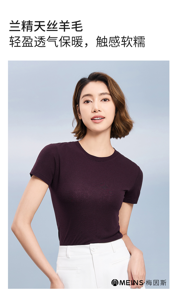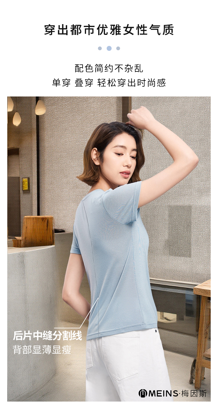 Meins梅因斯 夏款女纯色透气兰精天丝羊毛短袖肌底T恤N25NF2171