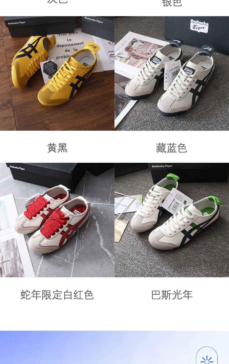 商品信息 —— I N F O R M A T I O N —— 购买须知: 【品牌】:鬼塚虎【品名】:鬼塚虎运动休闲鞋 【颜色】:绑带款-银色 绑带款-巴斯光年 绑带款-蛇年限定白红色 绑带款-白灰 绑带款-藏蓝色 绑带款-黄黑 【尺码】:44码、40.5码、36码、41.5码、40码、43.5码、37码、38码、39.5码、42码、39码、37.5码、码数偏小 建议拍大半码或一码 【产地】:印尼 【面料材质】: 绑带款材质:皮革+橡胶 【发货地】:广东仓/福建仓 【发货快递】:中通快递/申通快递 随机发 【包装方式】:简易袋装 【发货时效】:72小时内 【运费标准】:包邮,新疆,西藏不发,其他地区全国包邮 【售后政策】:支持7天无理由退换货,非质量问题客户承担寄回运费 |