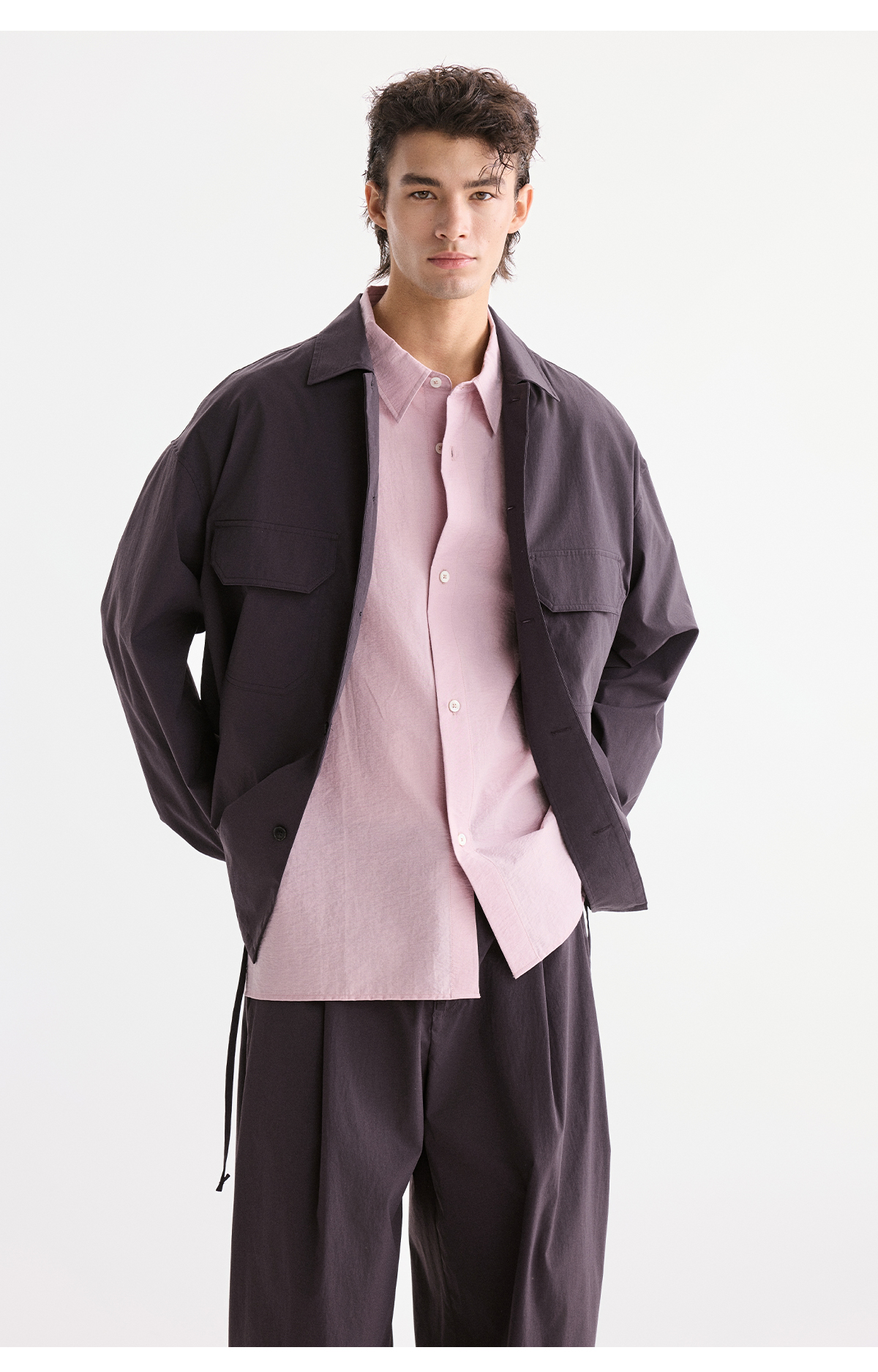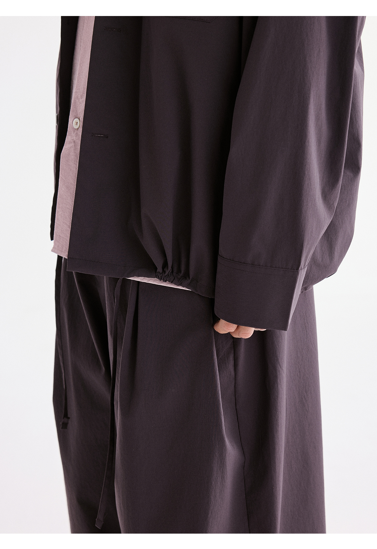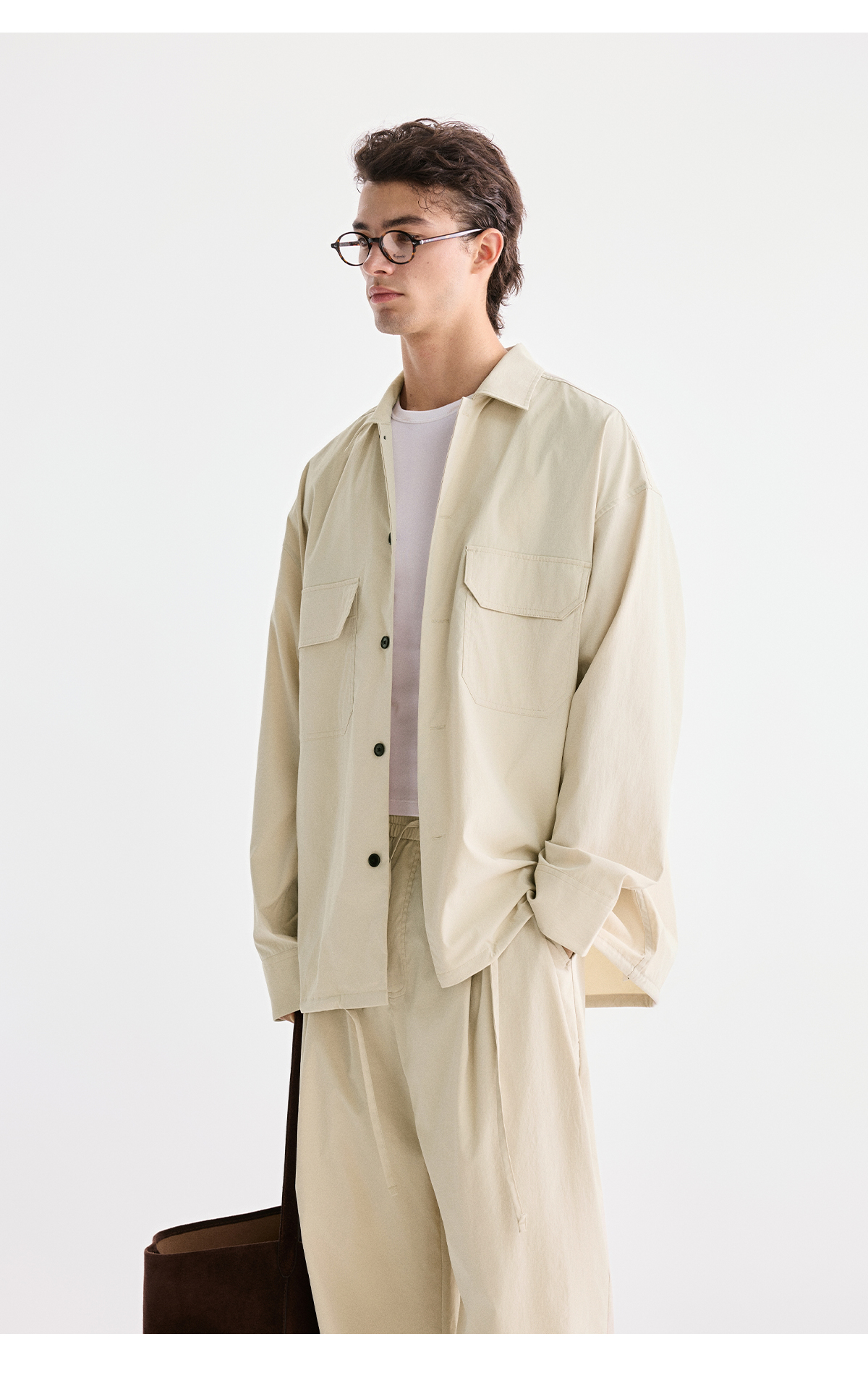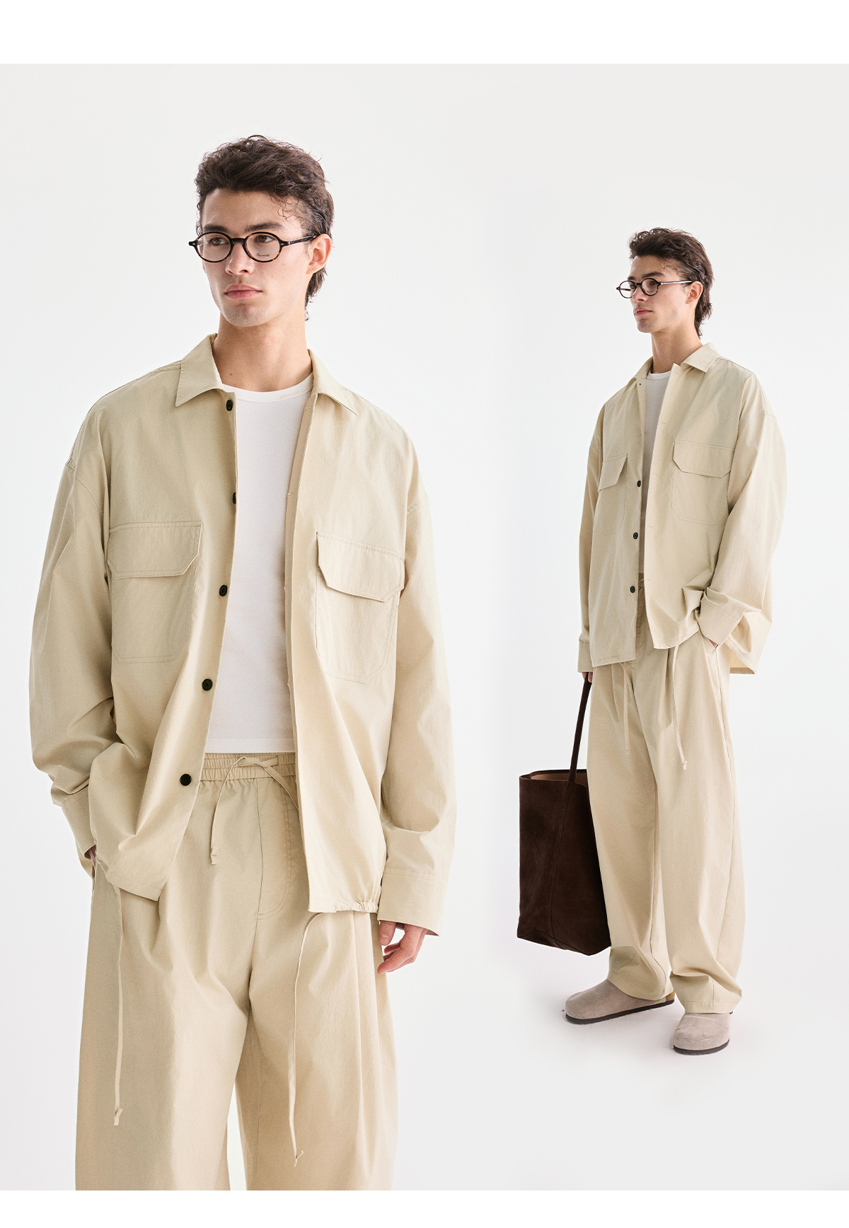 棉仓3621004003-【京都回眸】宽松日式贴袋下摆抽绳长袖衬衫