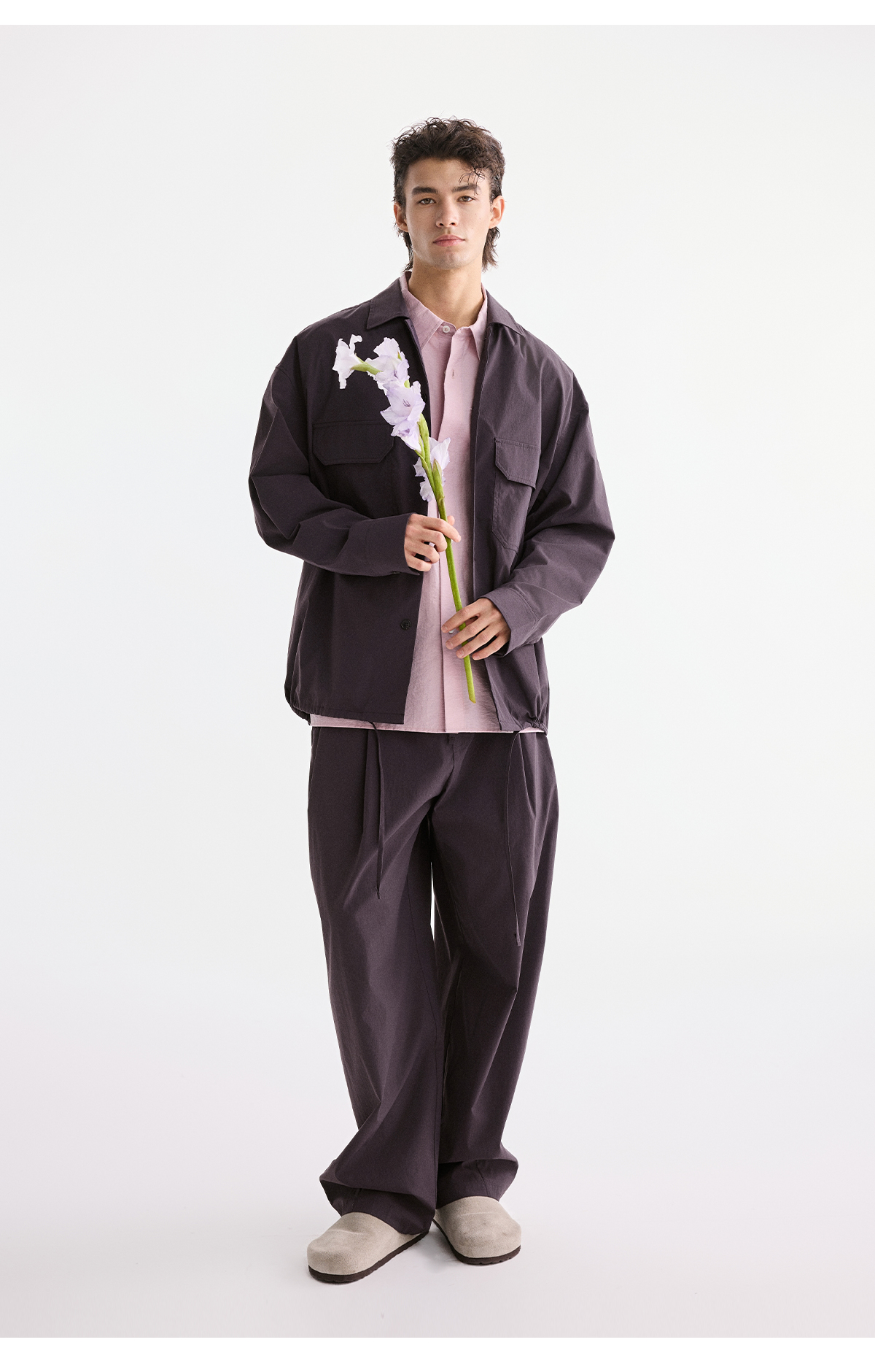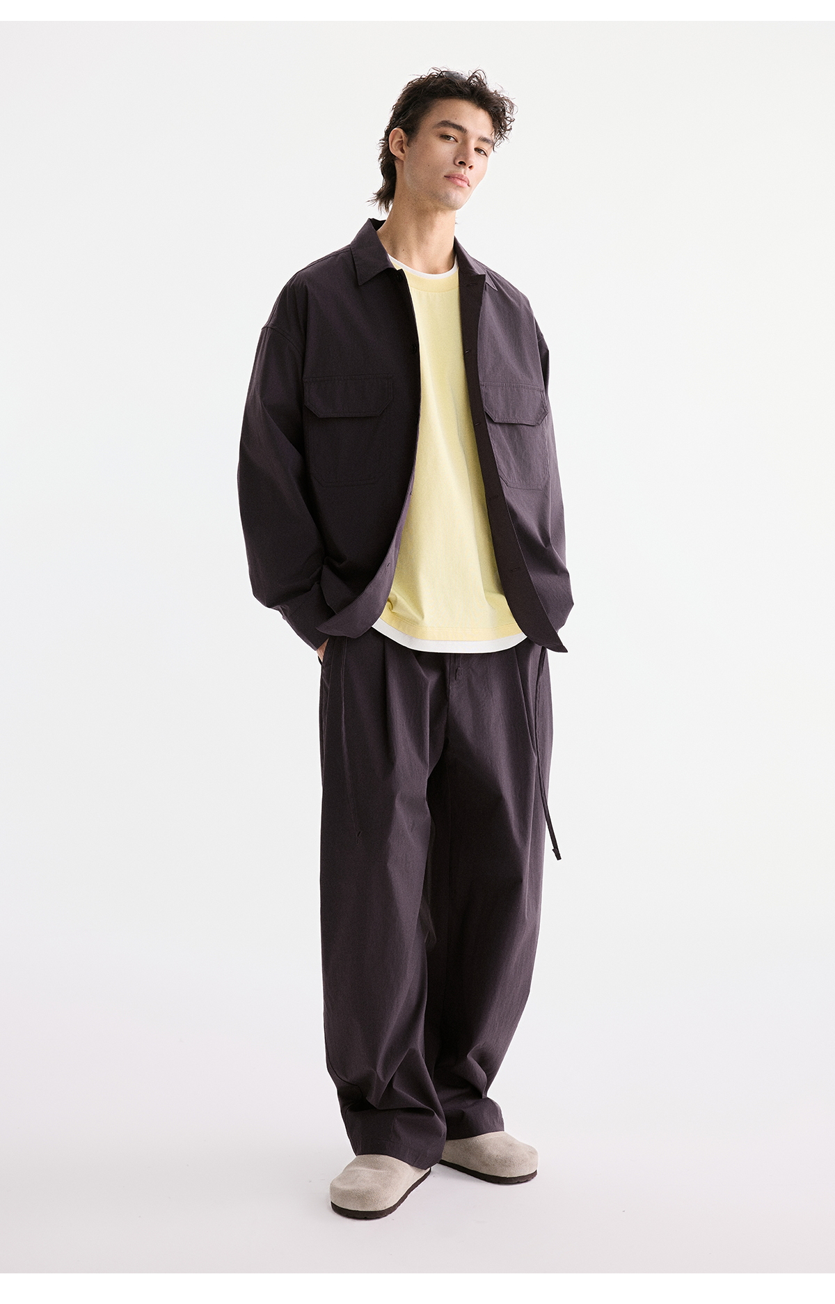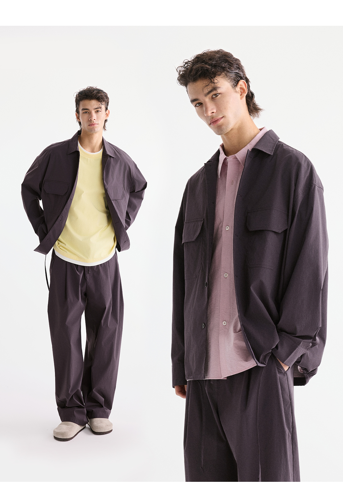 棉仓3621004003-【京都回眸】宽松日式贴袋下摆抽绳长袖衬衫