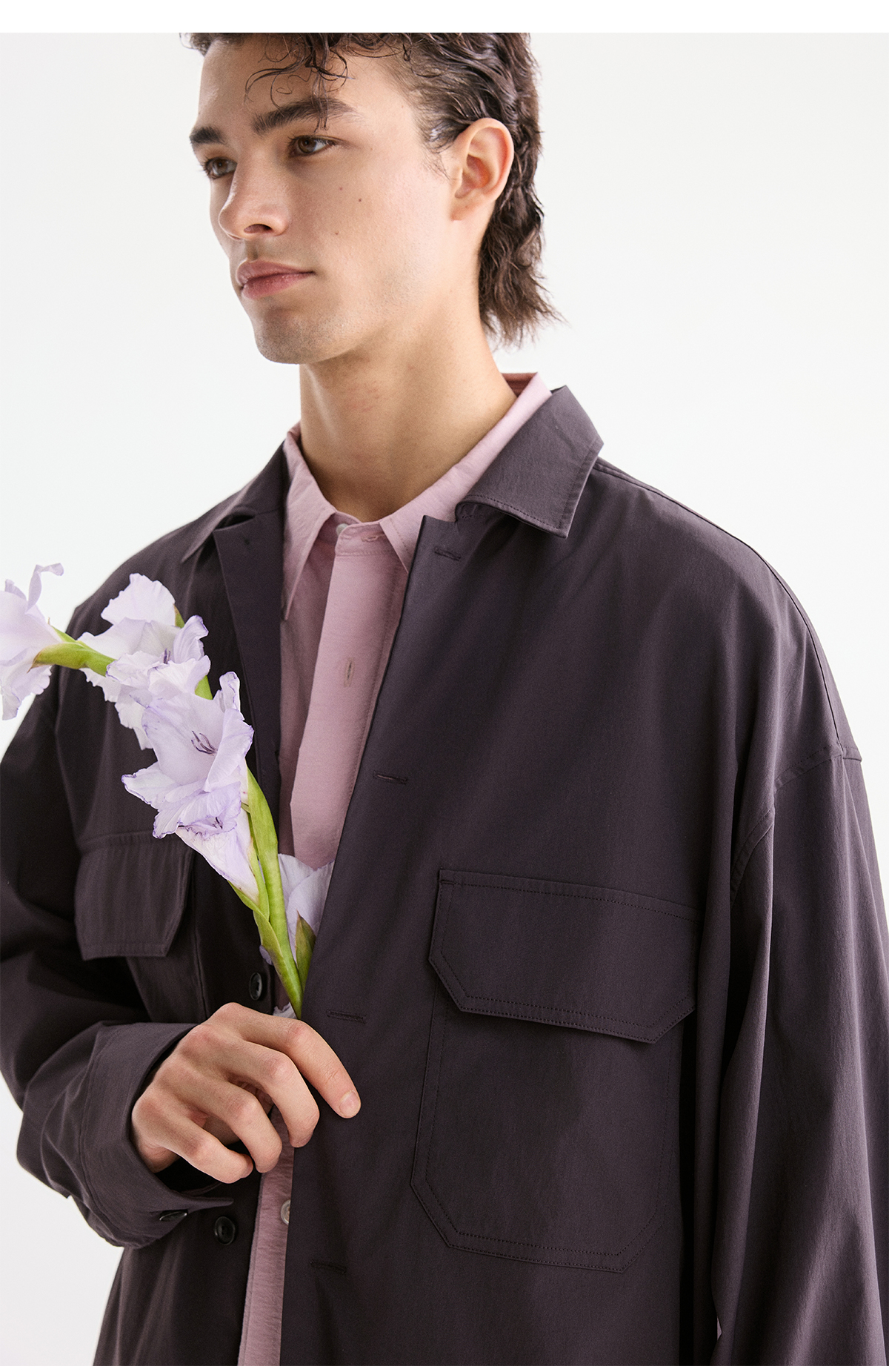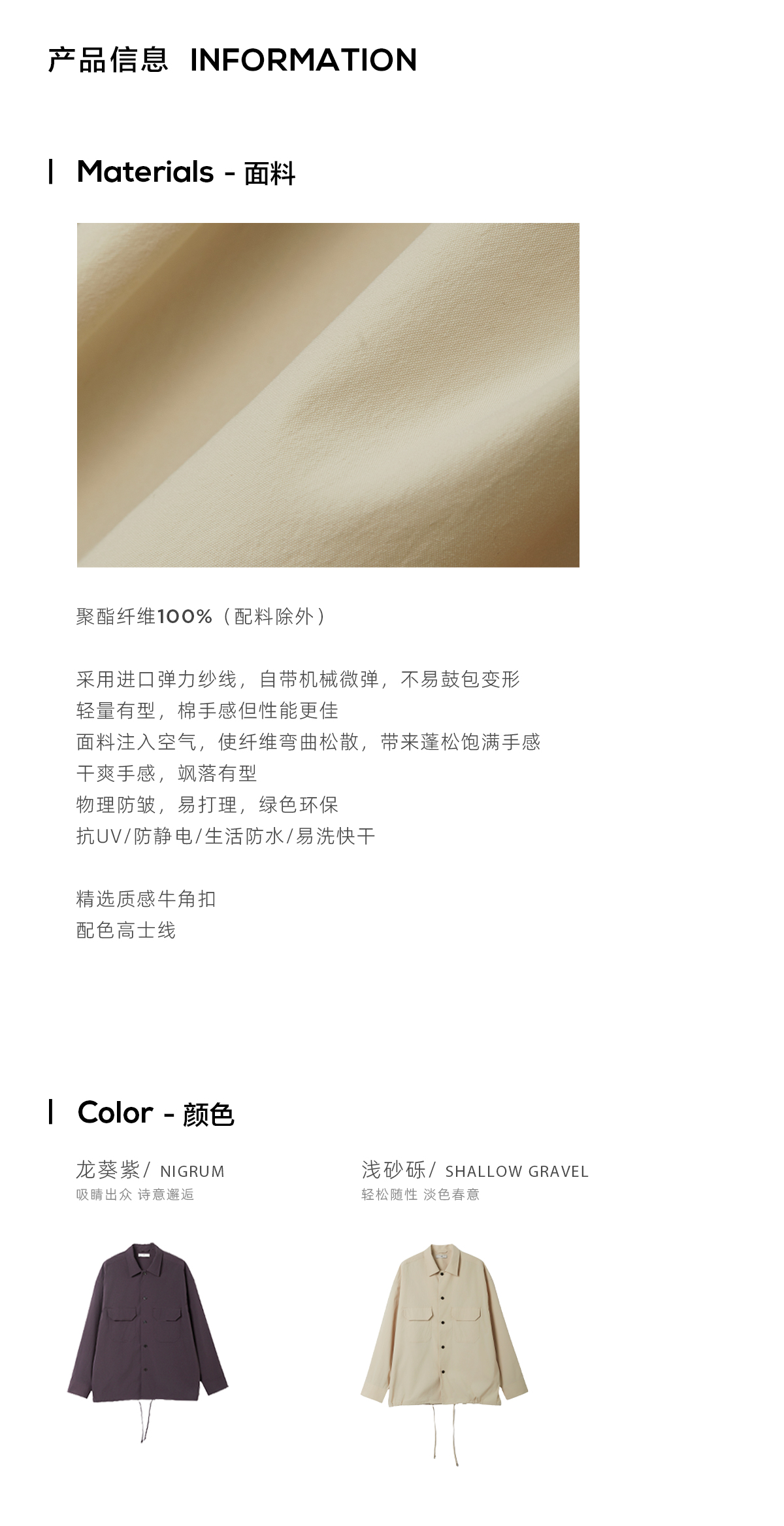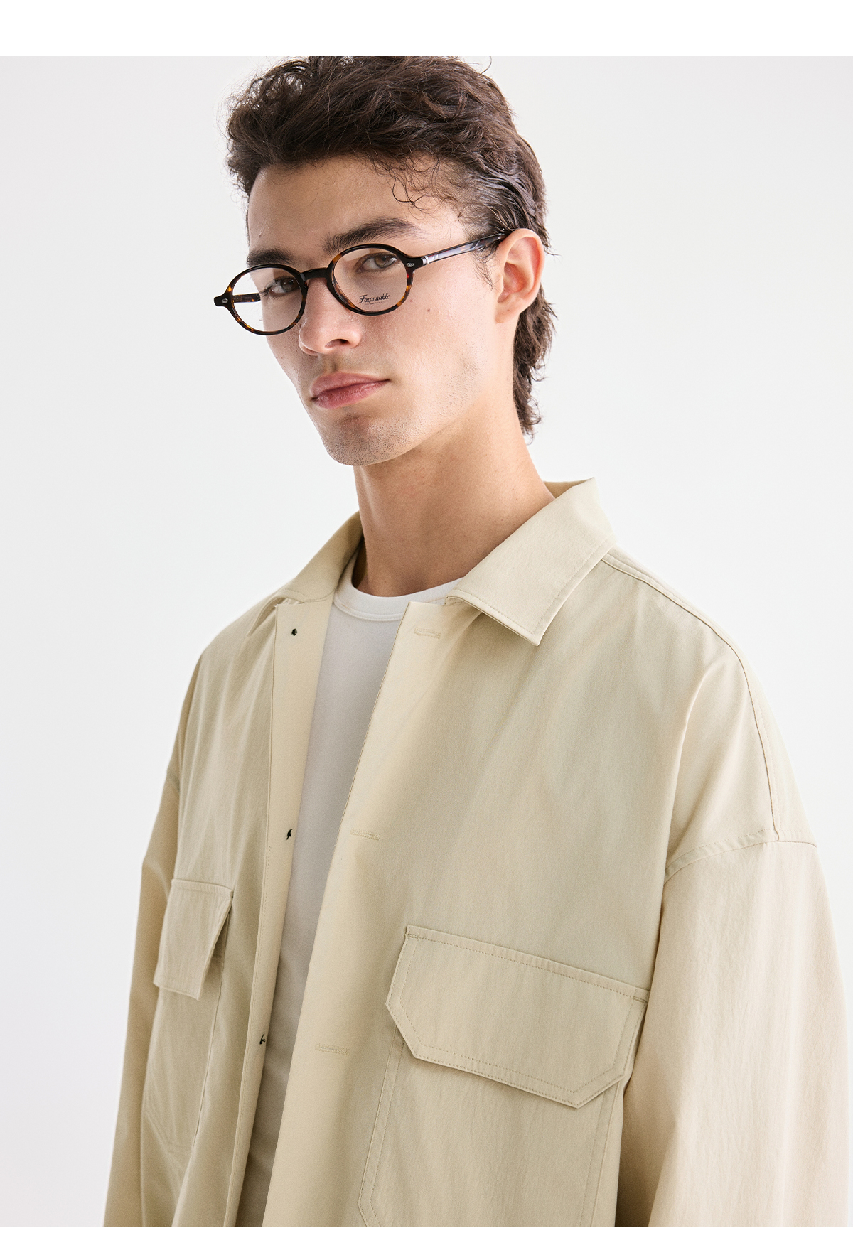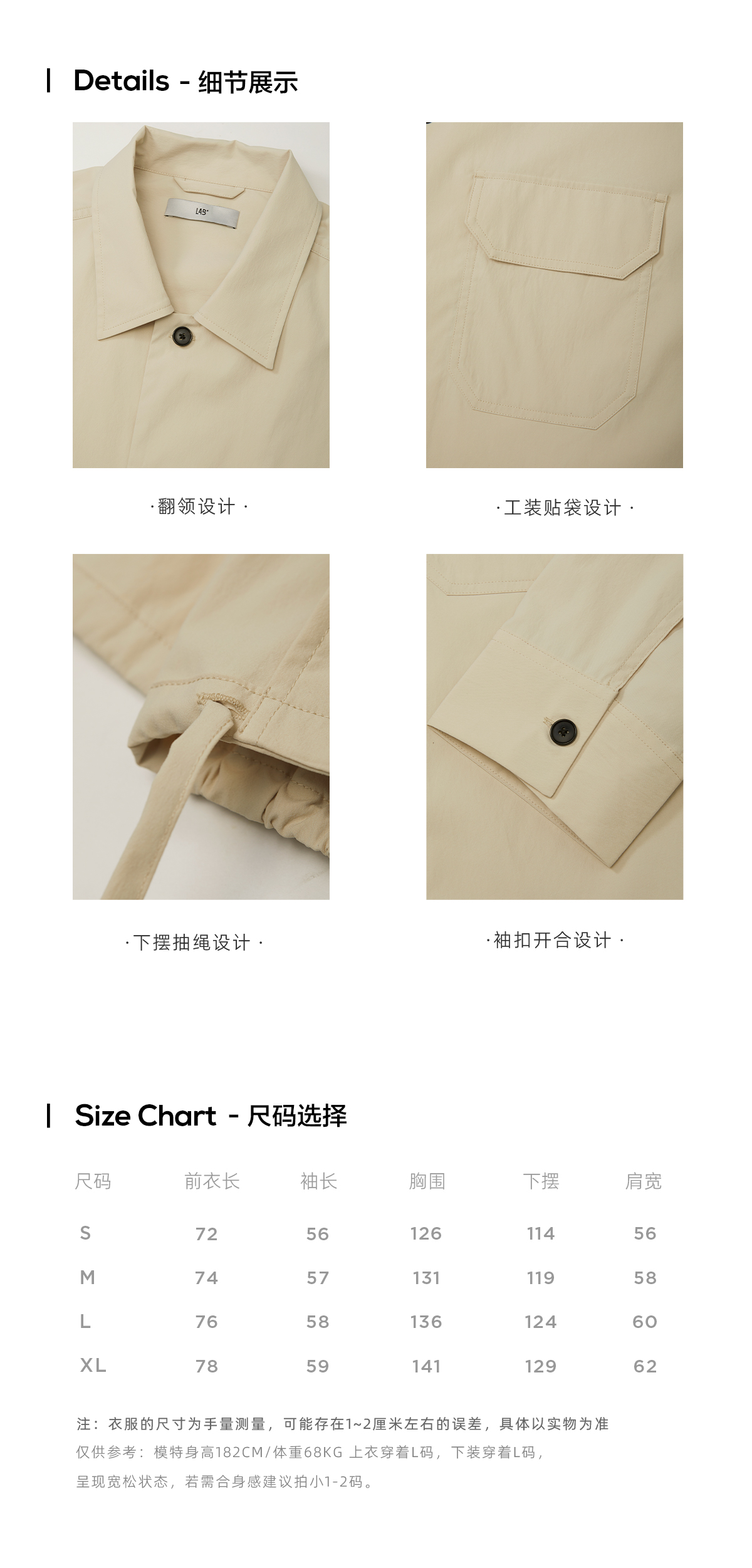 棉仓3621004003-【京都回眸】宽松日式贴袋下摆抽绳长袖衬衫