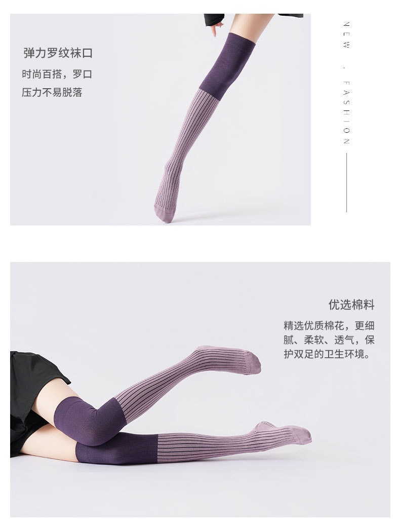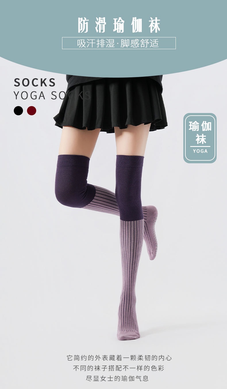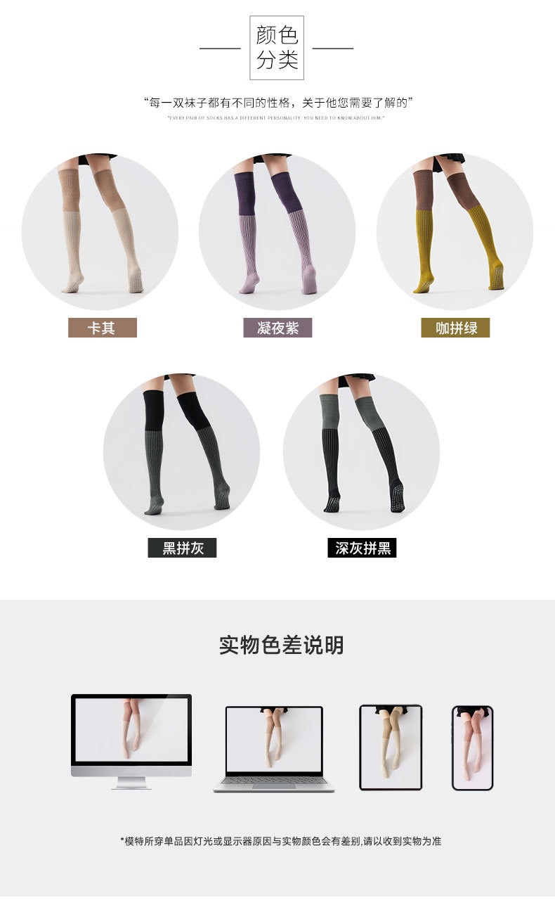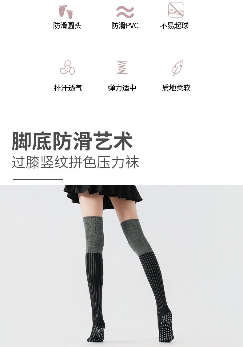 秋冬新品拼色压力过膝瑜伽袜防寒保暖长腿袜美腿显瘦普拉提防滑袜XY