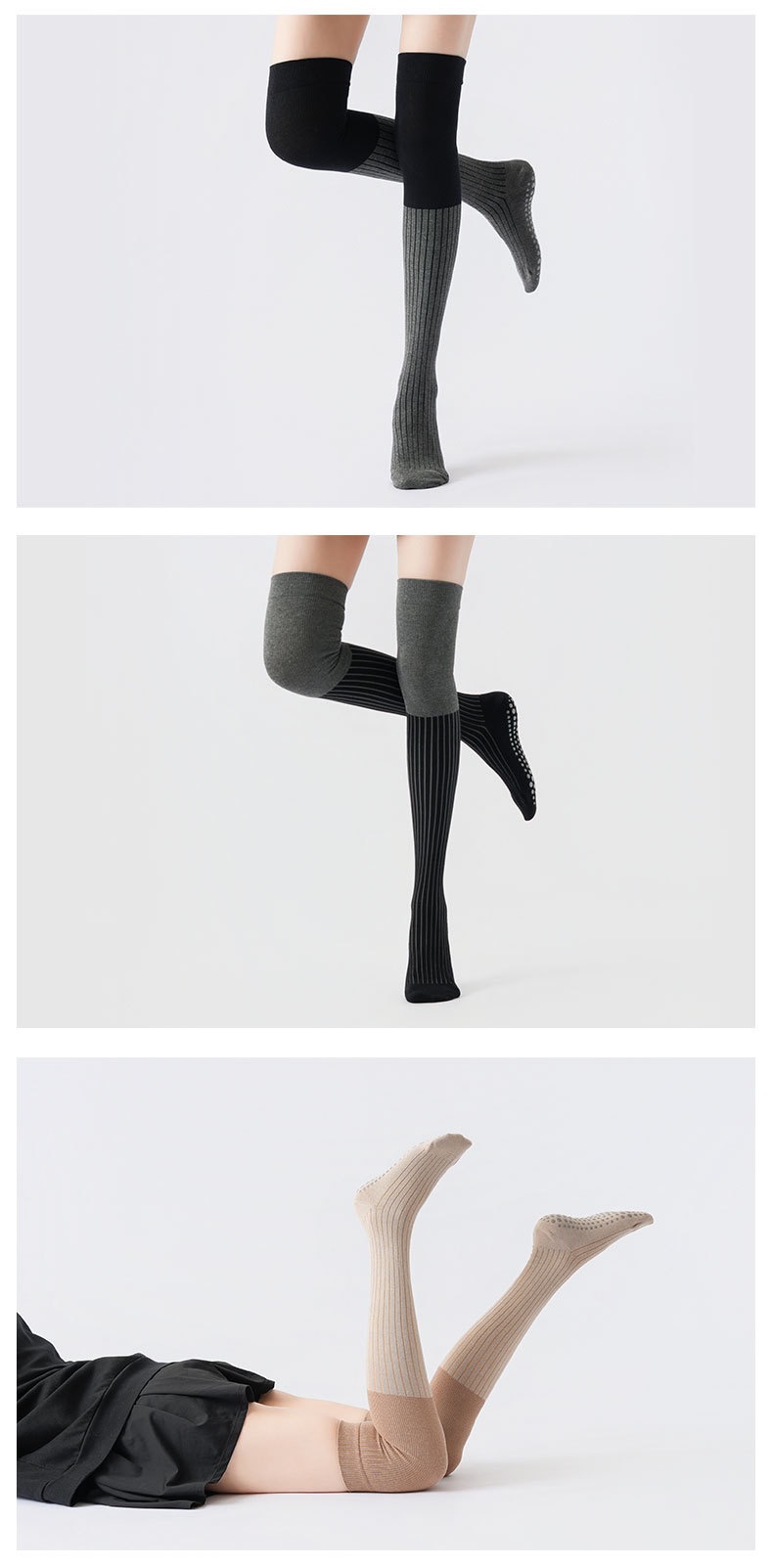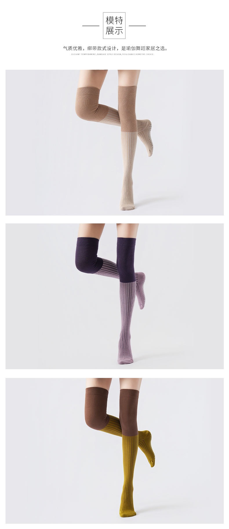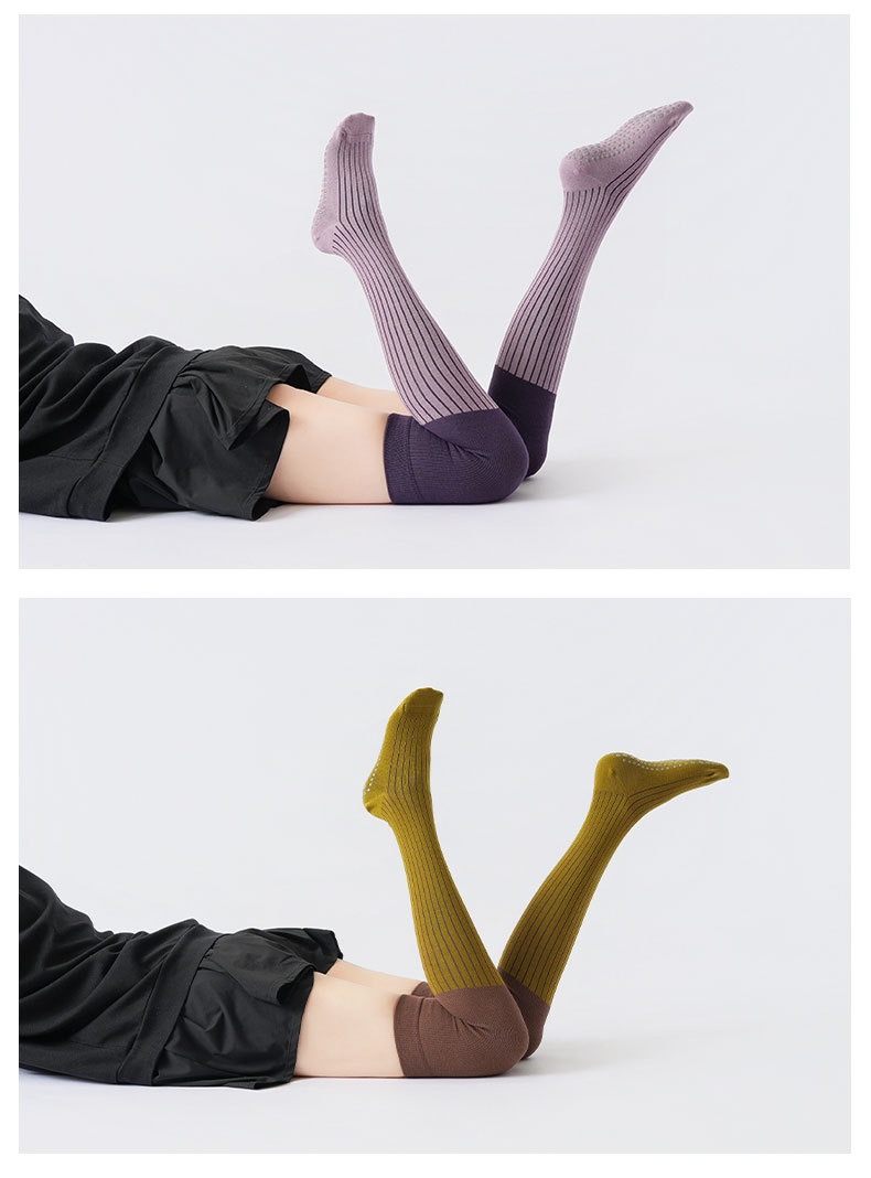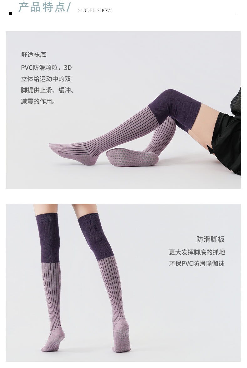 秋冬新品拼色压力过膝瑜伽袜防寒保暖长腿袜美腿显瘦普拉提防滑袜XY
