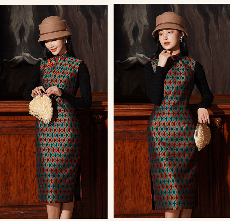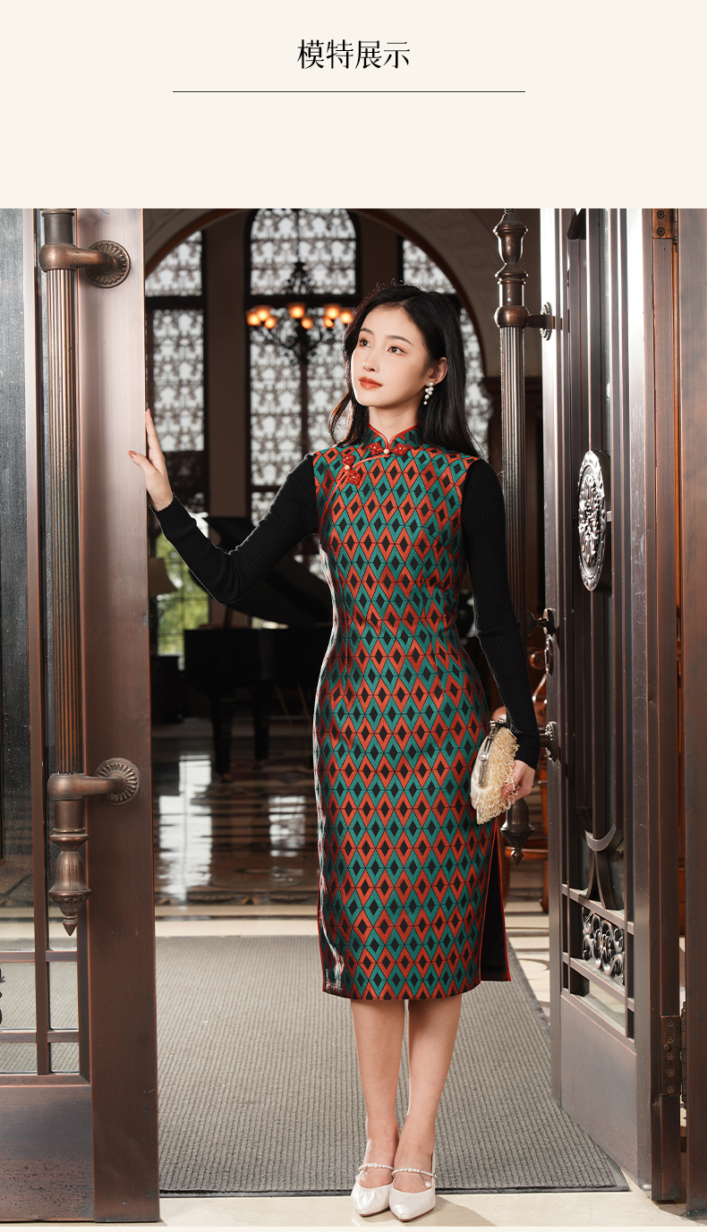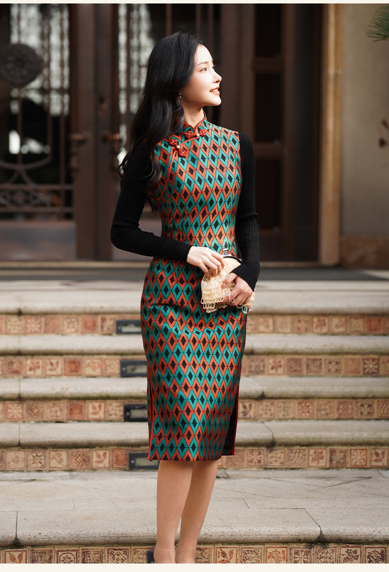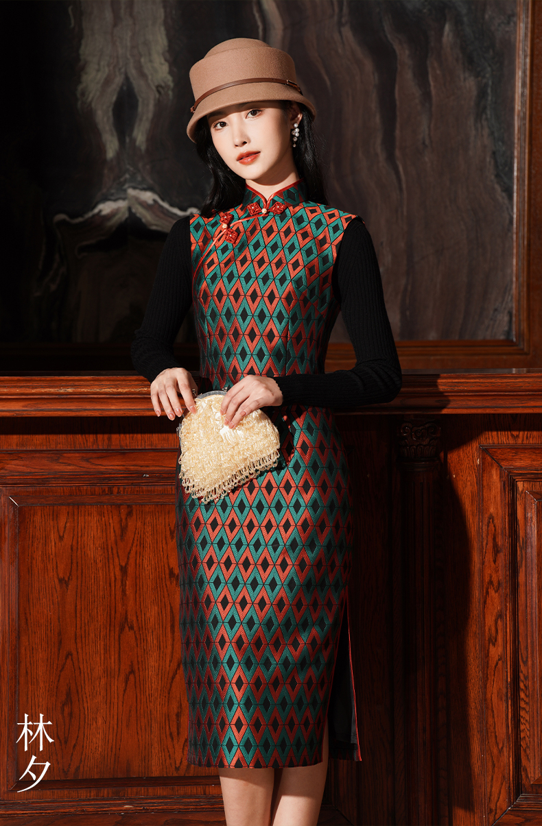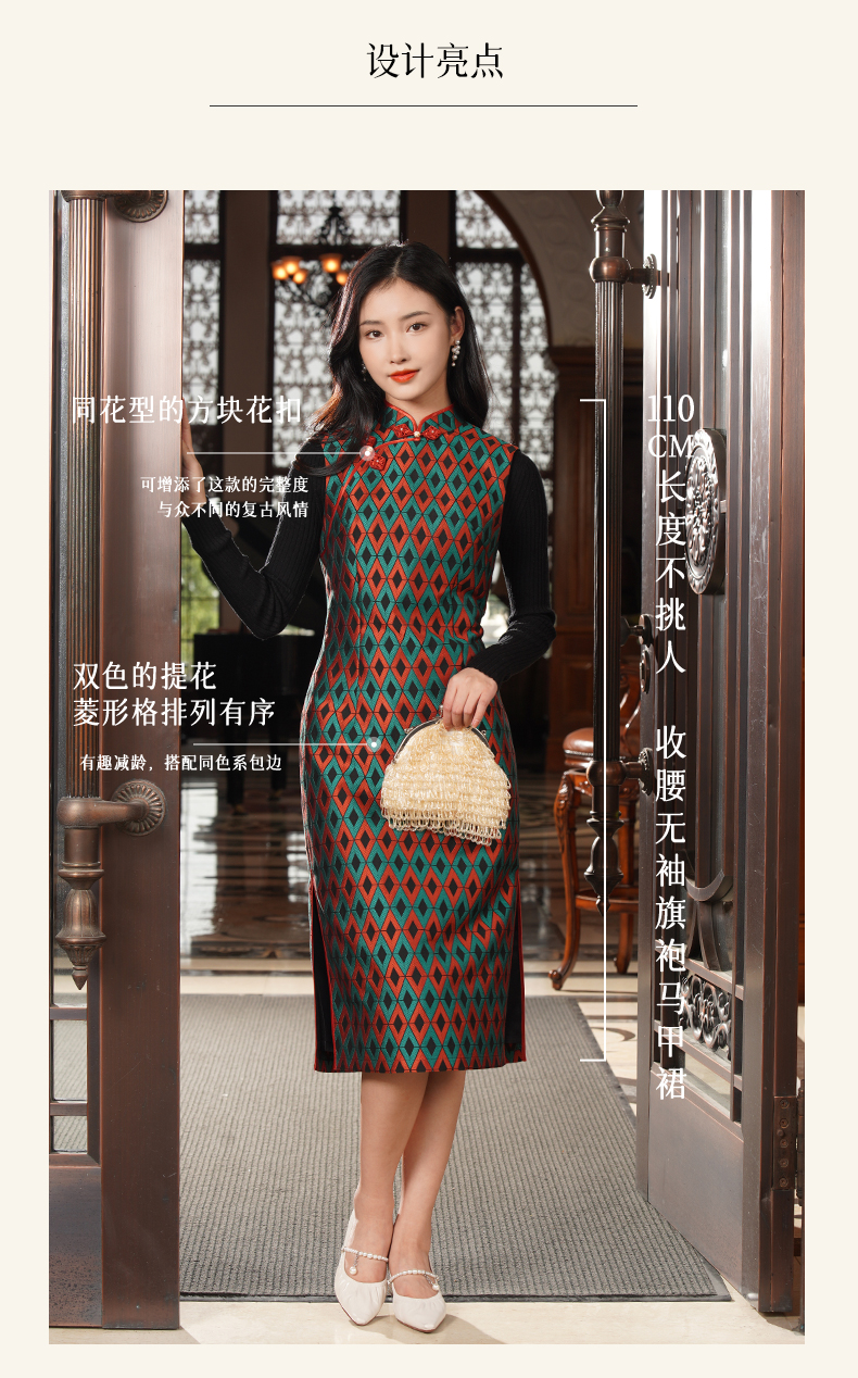 逸红颜 林夕 2025春季新款提花马甲旗袍裙改良无袖中长版洋装女