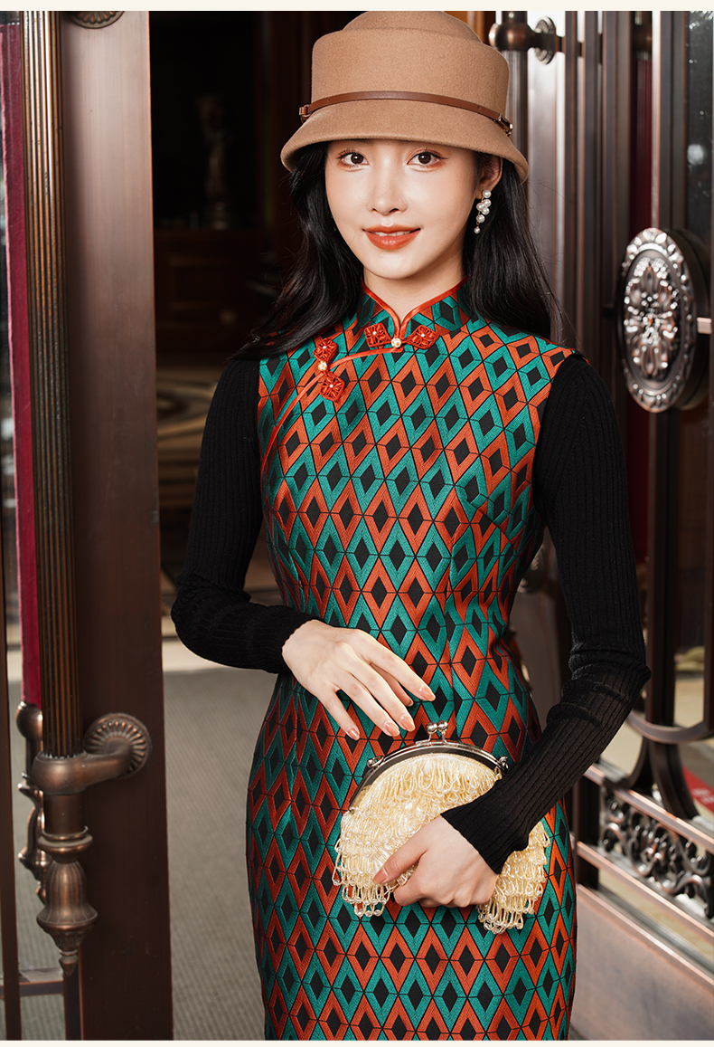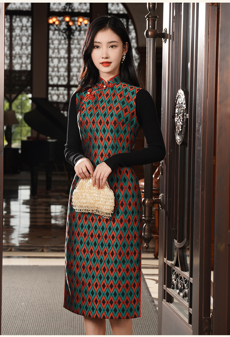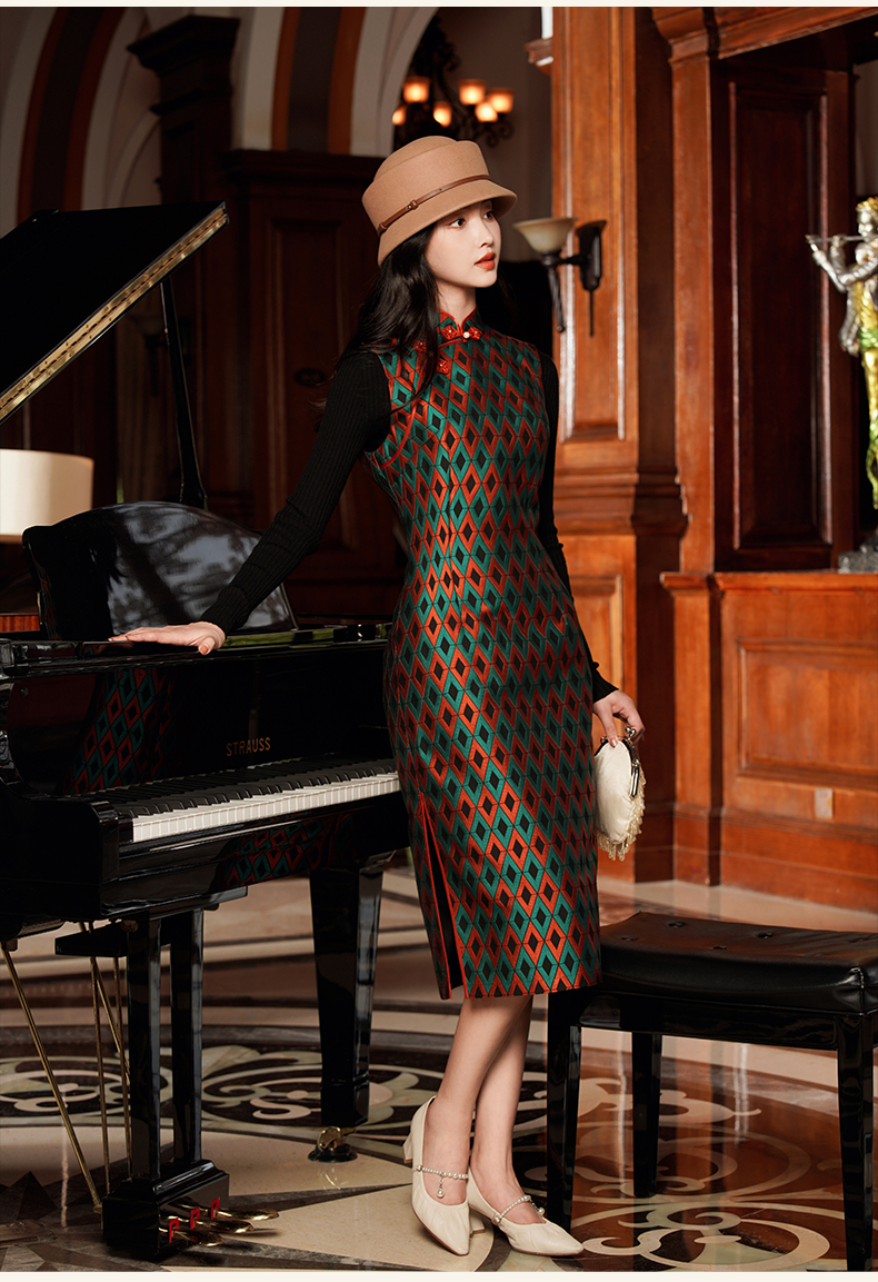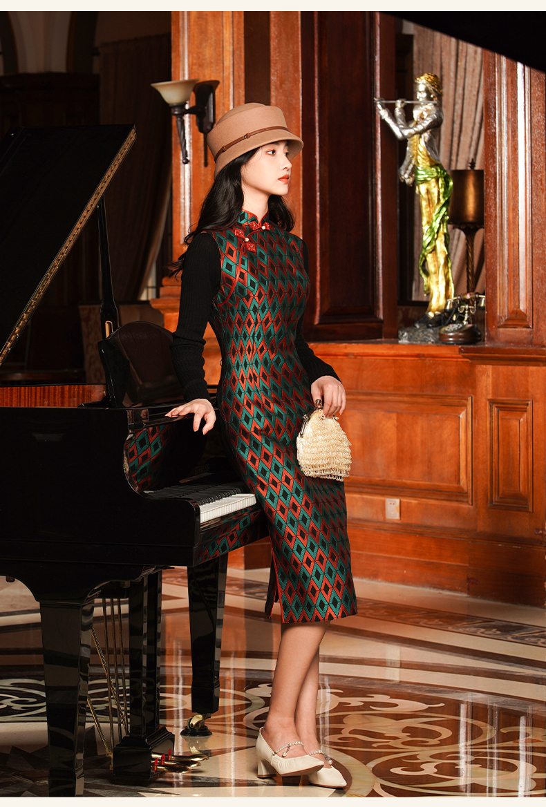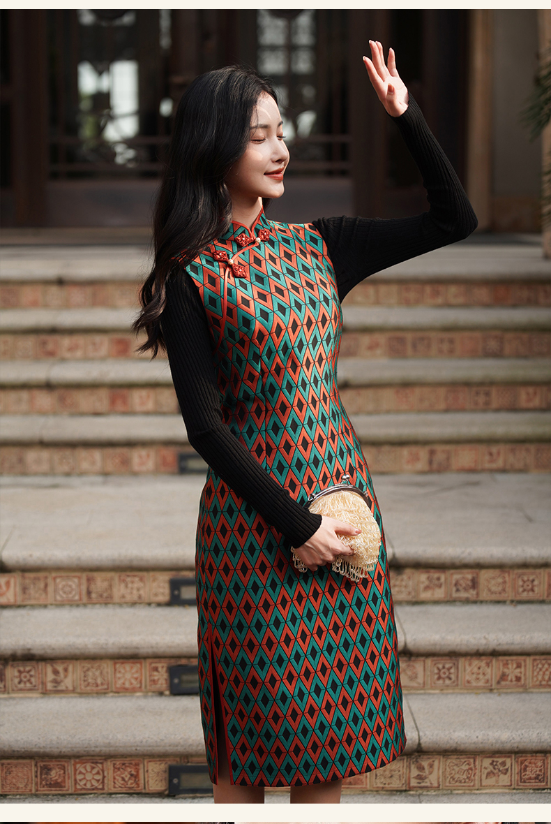 逸红颜 林夕 2025春季新款提花马甲旗袍裙改良无袖中长版洋装女