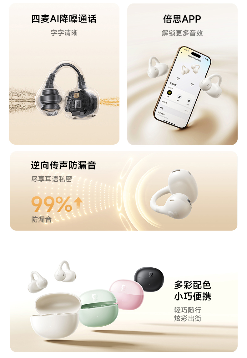 倍思 Bass系列 BC1 开放式真无线耳机(耳夹)蜡笔小新联名版