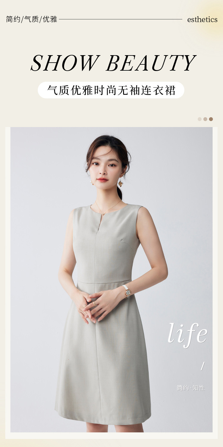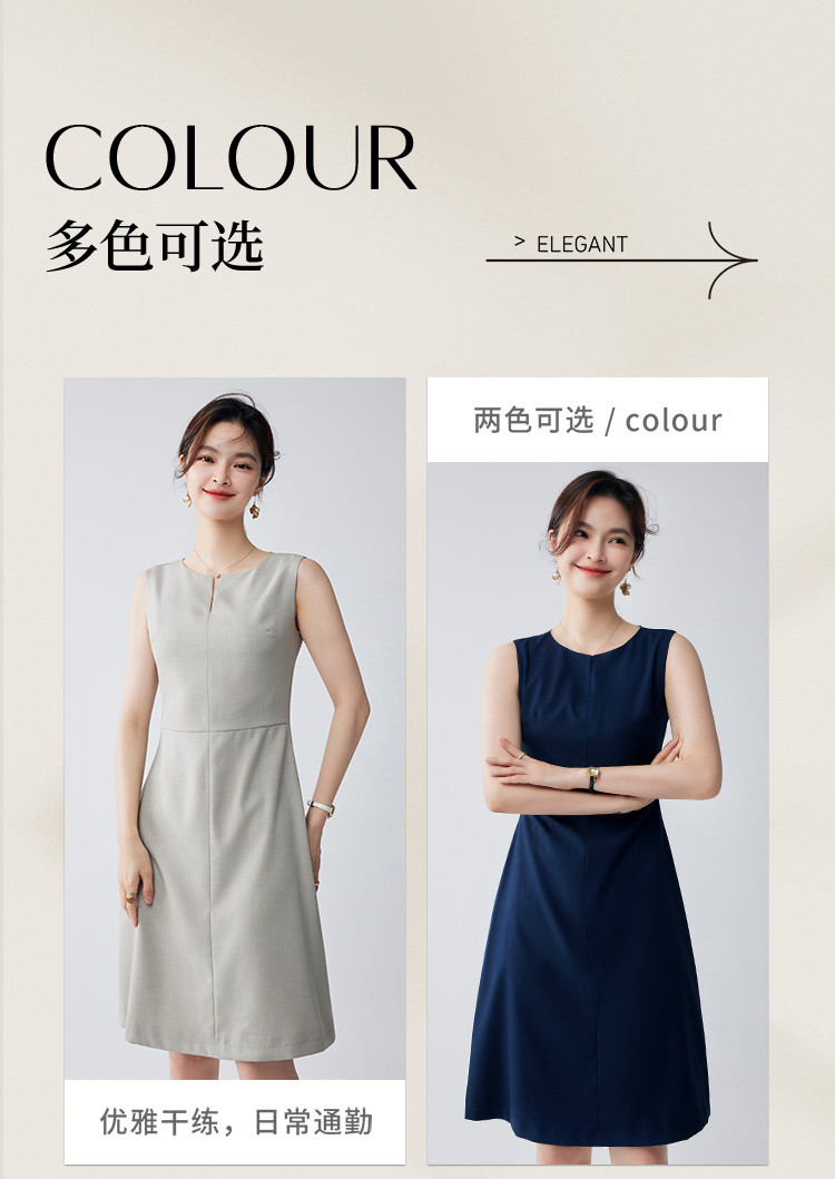 【经典百搭】罗蒙春夏款女士连衣裙知性优雅简约中长款无袖连衣裙女