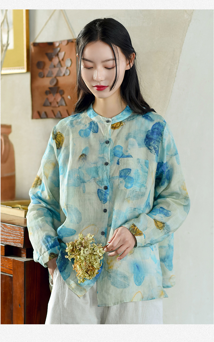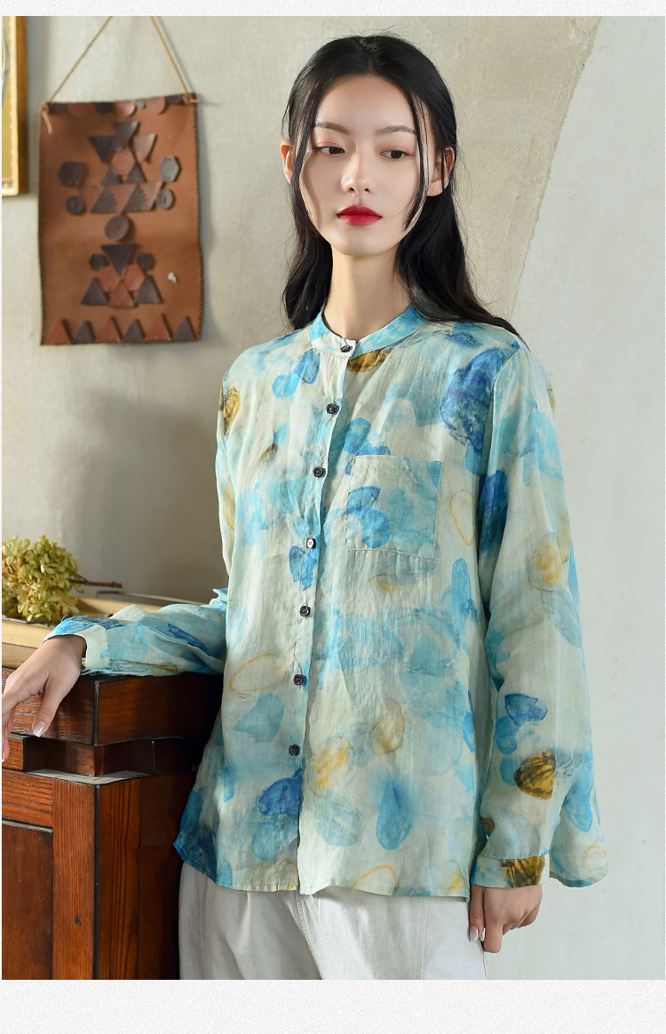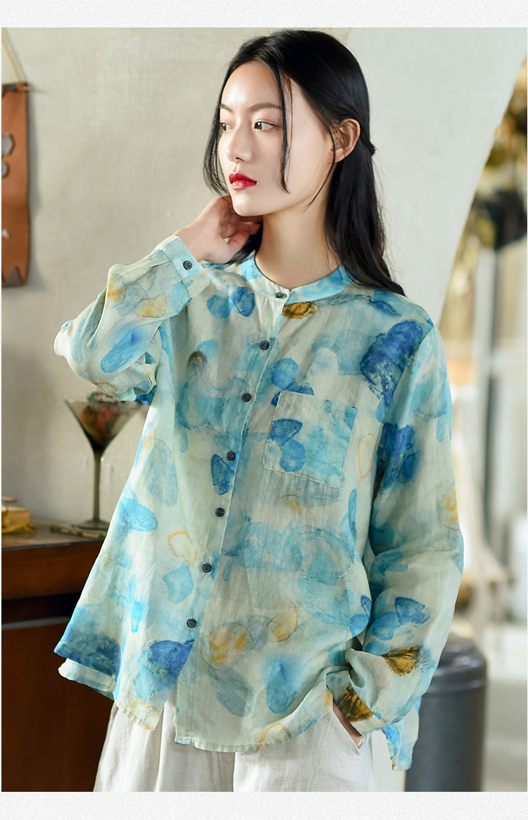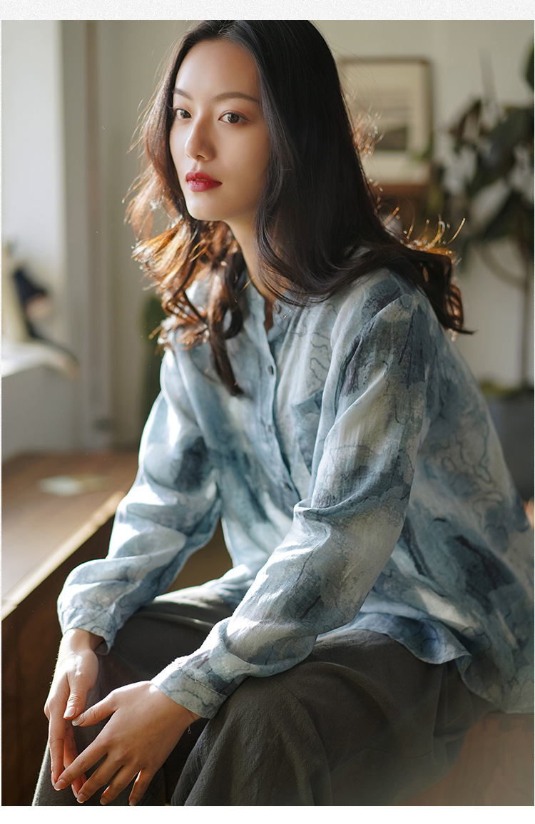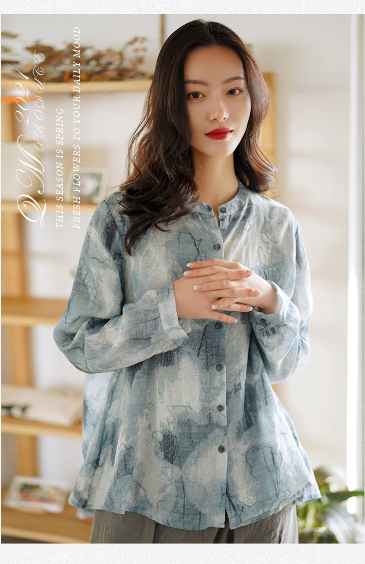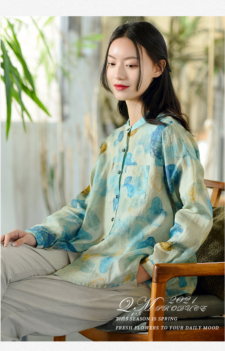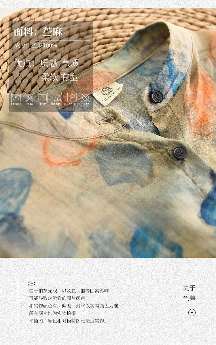 天然苎麻衬衫 小立领设计 宽松舒适 低调淡雅 气质百搭