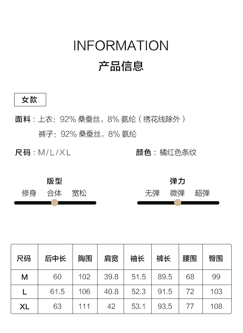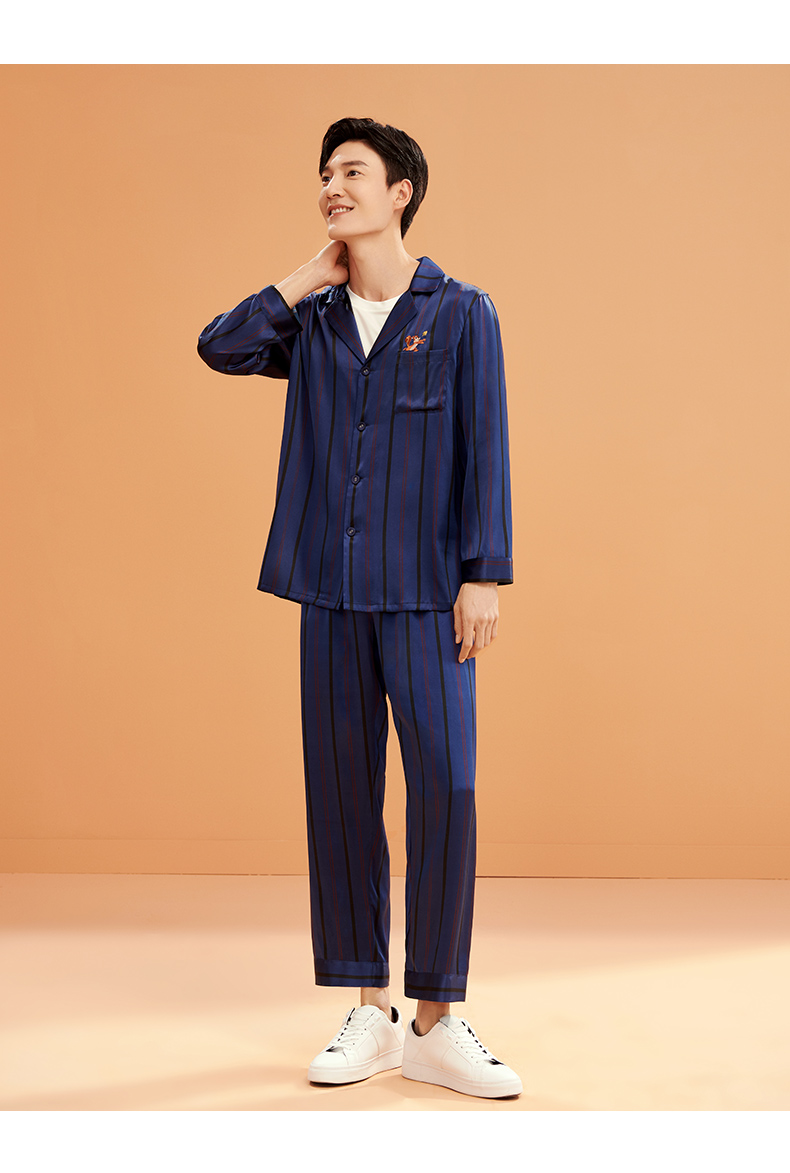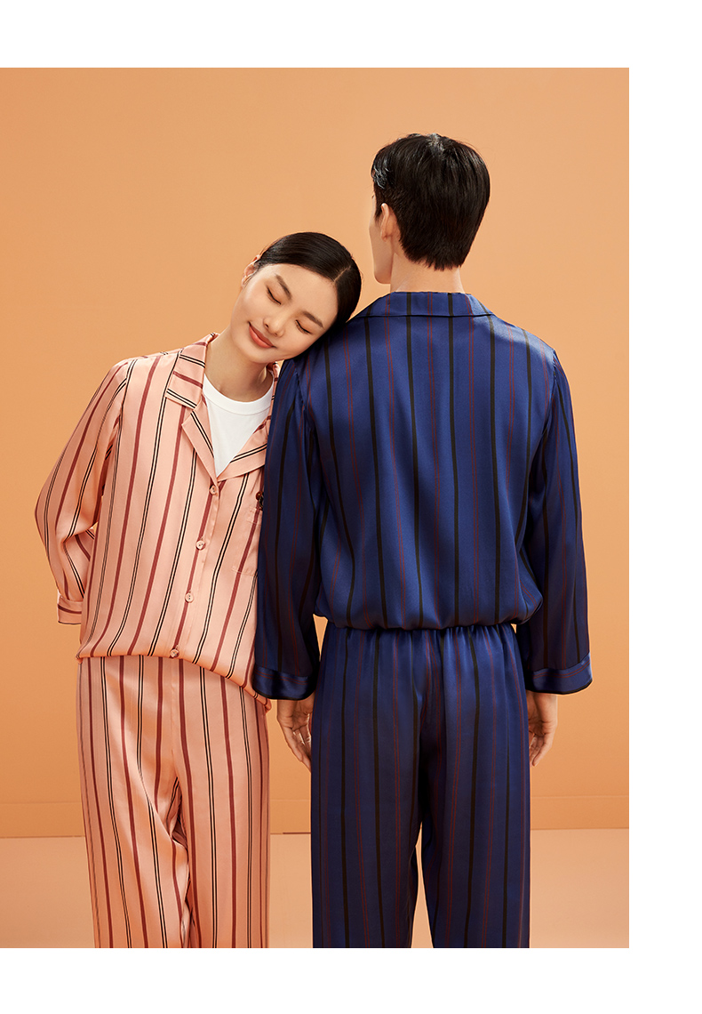 金三塔弹力桑蚕丝 氨基酸美肤 宇宙级别的罗曼情侣条纹刺绣衣裤套 YSFBC209/YSMBC202