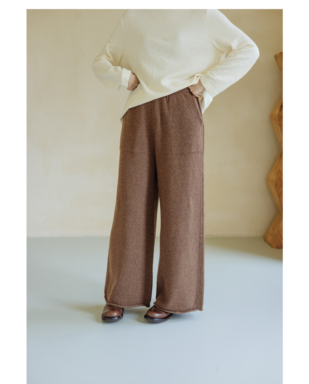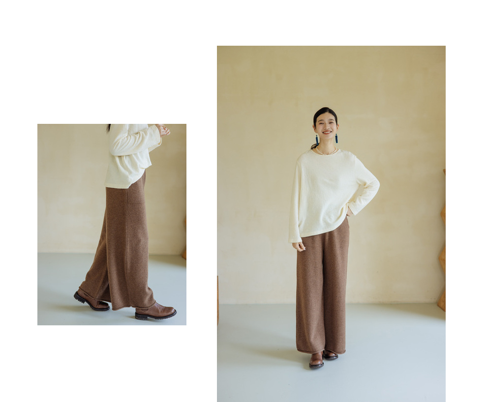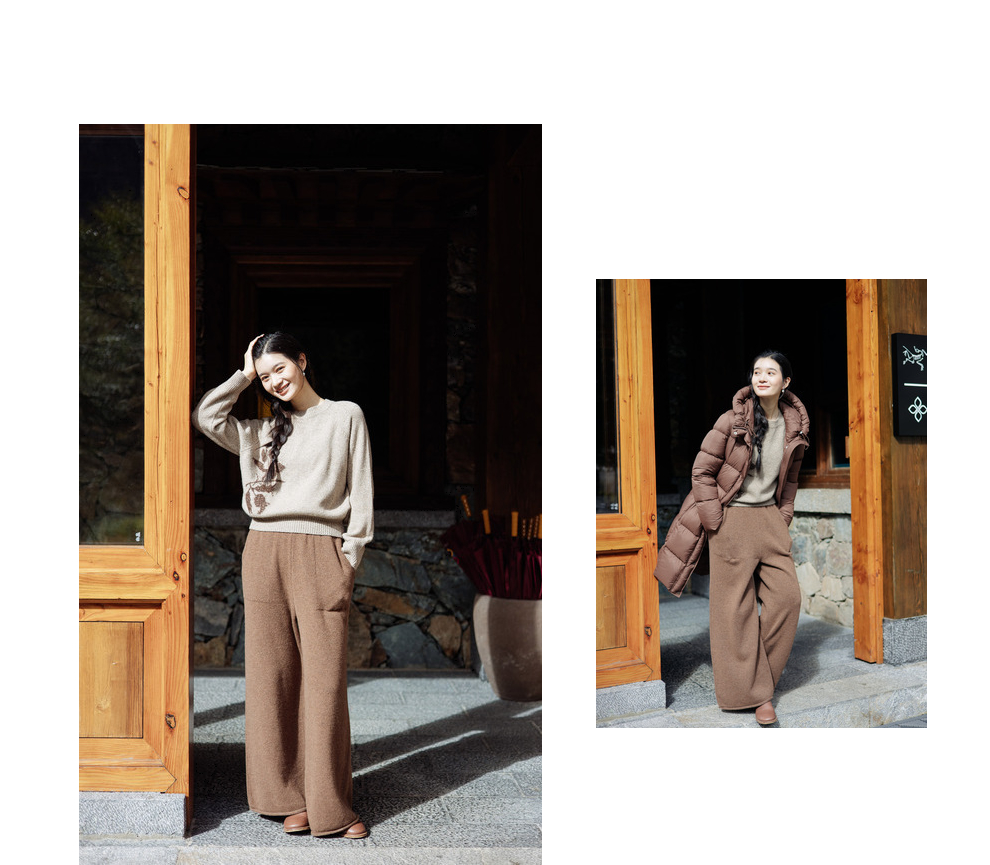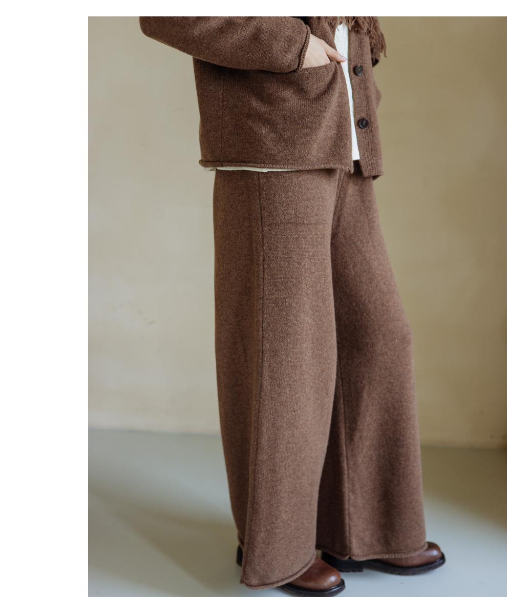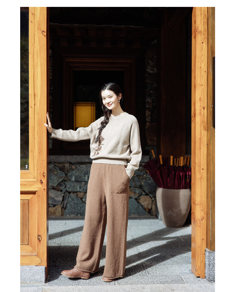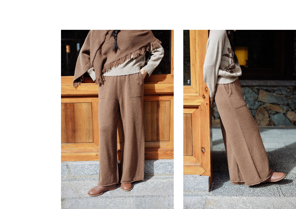 绽放旅行女367朵/全羊毛毛织百搭宽松保暖蓄温裤脚卷边直筒阔腿裤