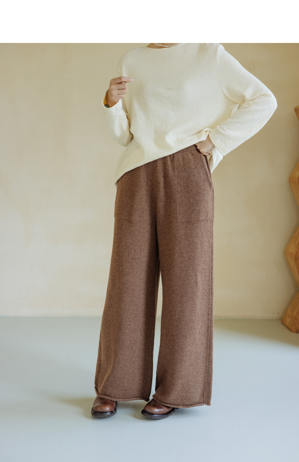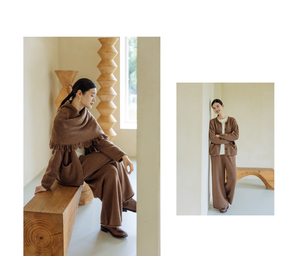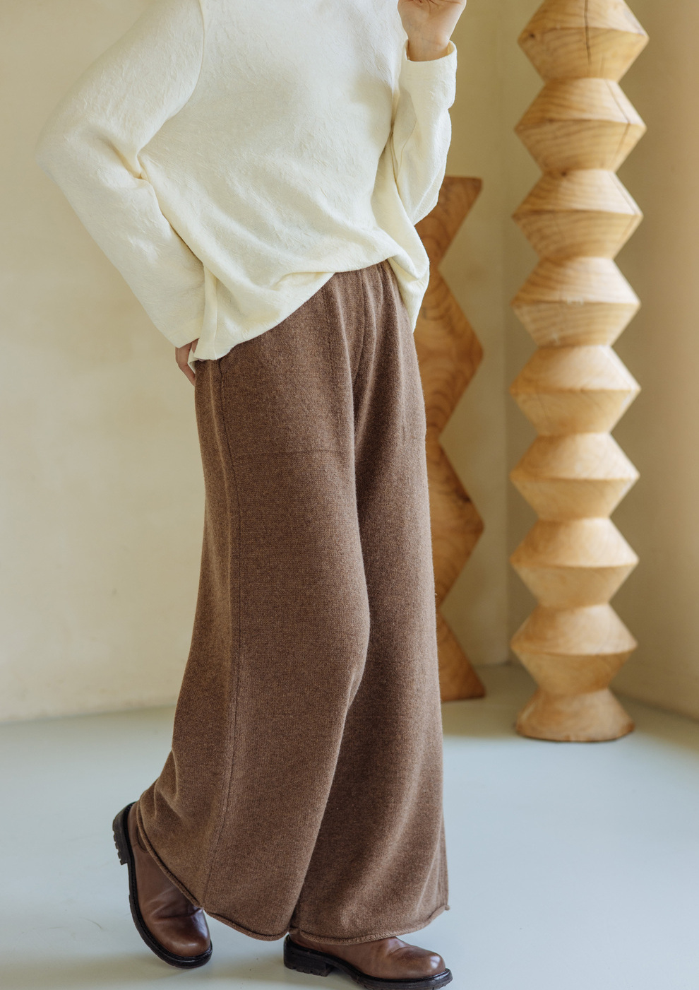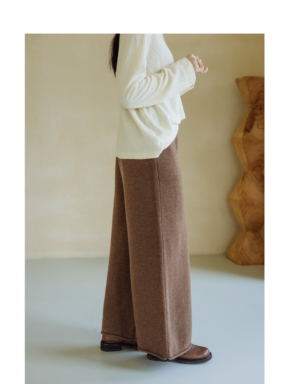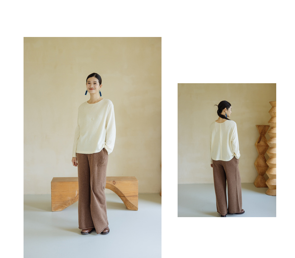 绽放旅行女367朵/全羊毛毛织百搭宽松保暖蓄温裤脚卷边直筒阔腿裤
