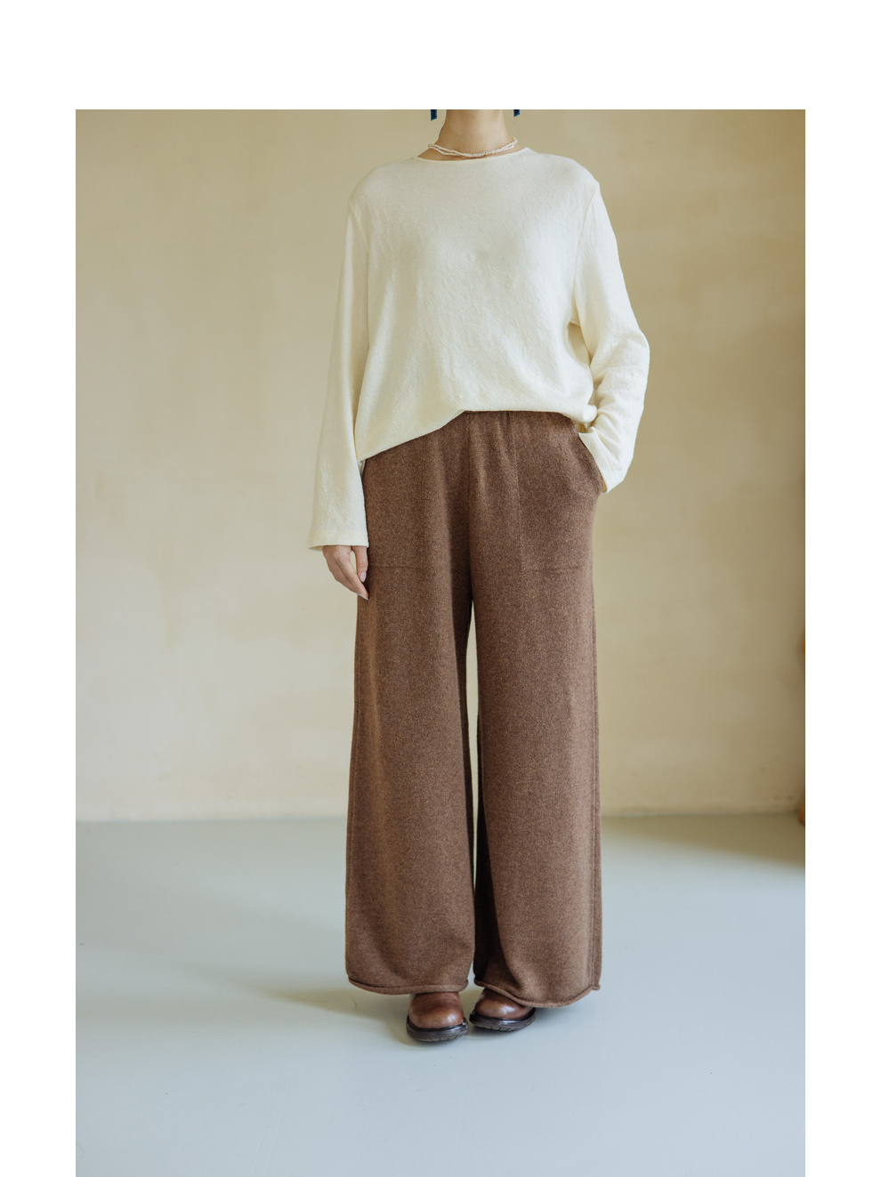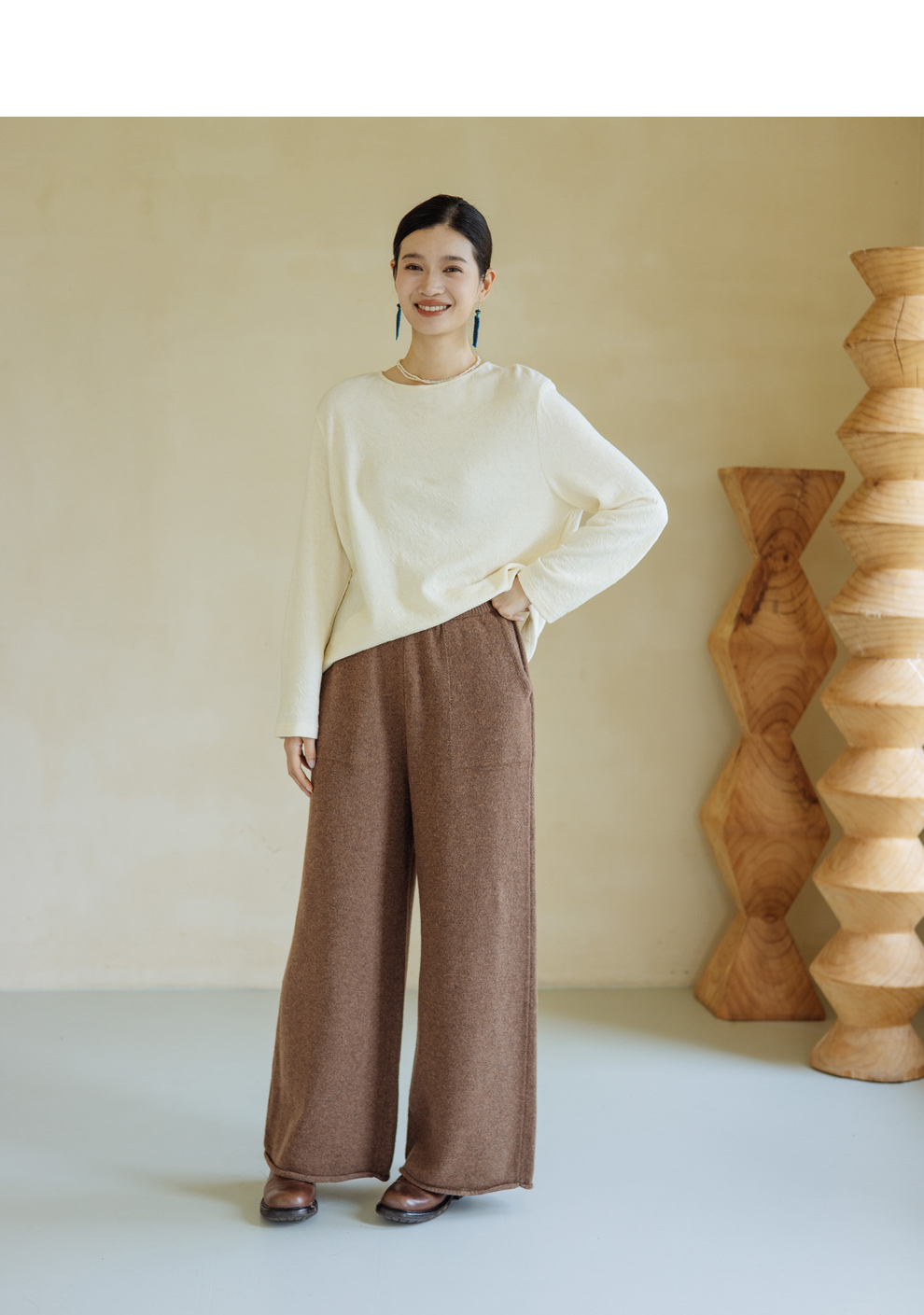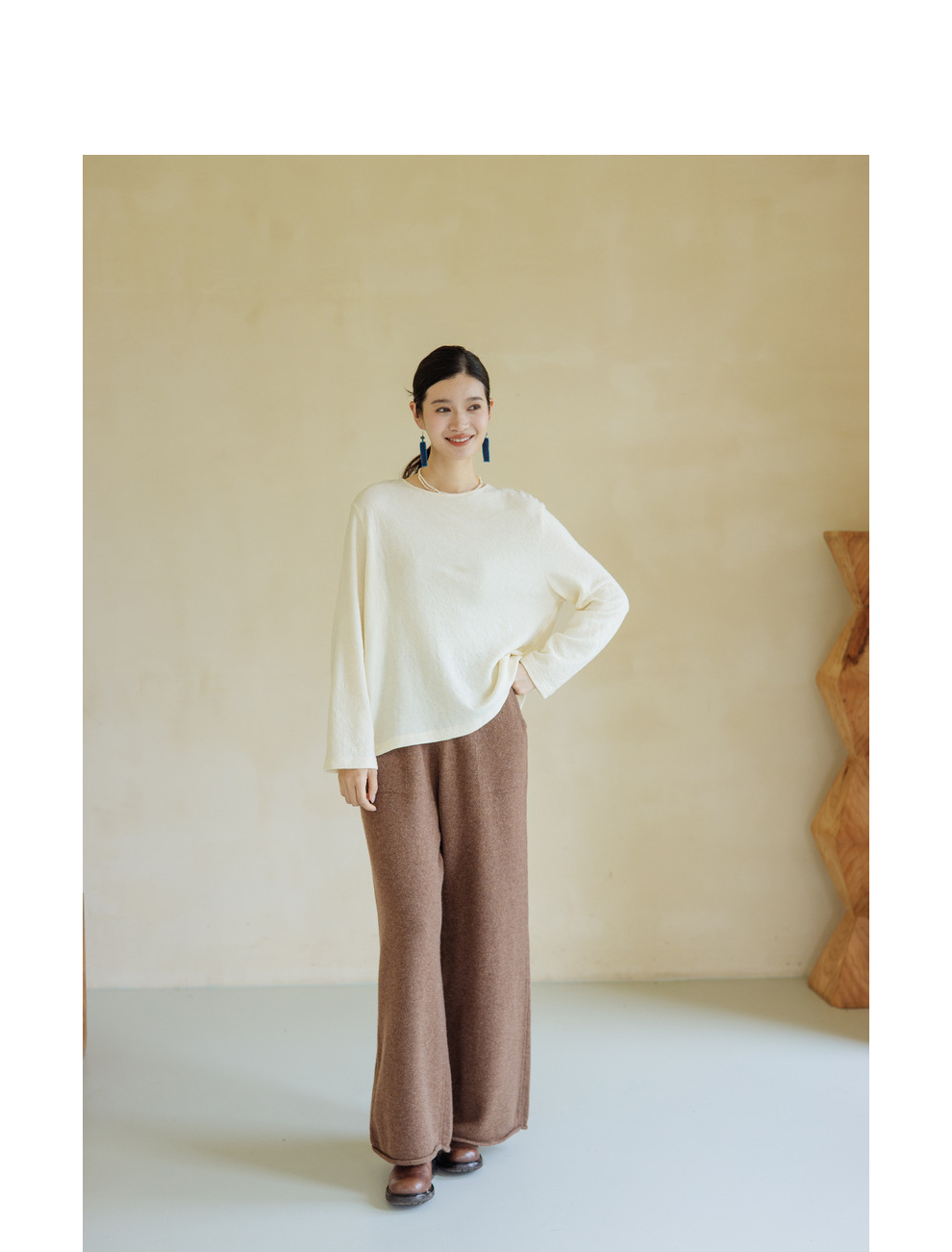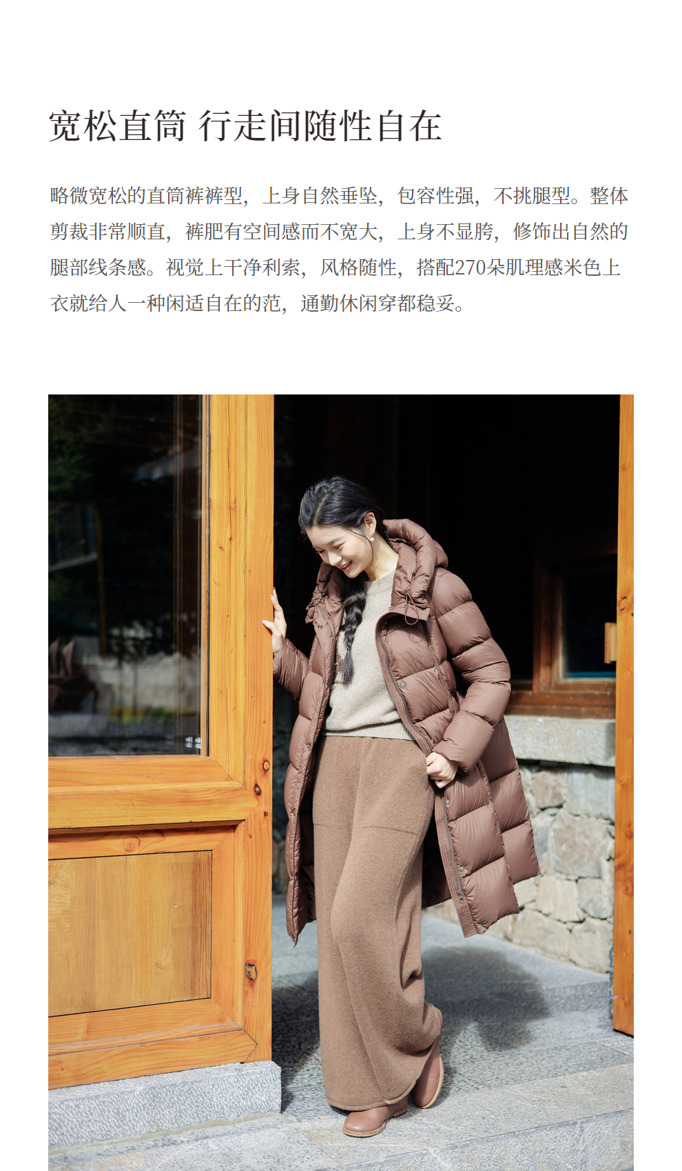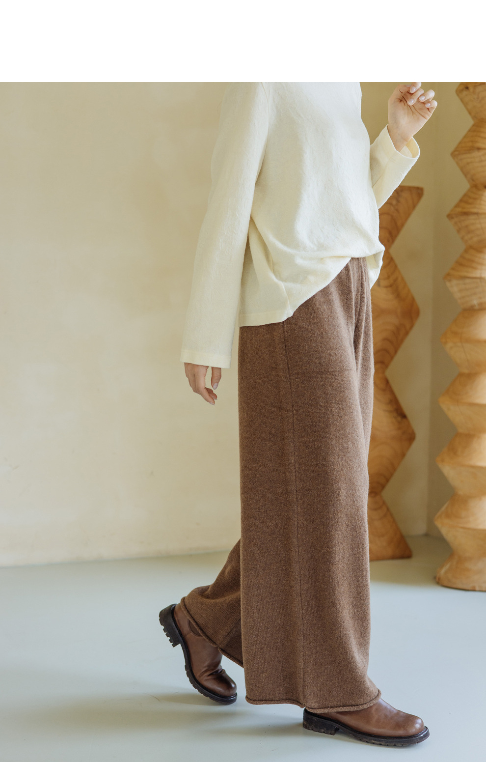 绽放旅行女367朵/全羊毛毛织百搭宽松保暖蓄温裤脚卷边直筒阔腿裤