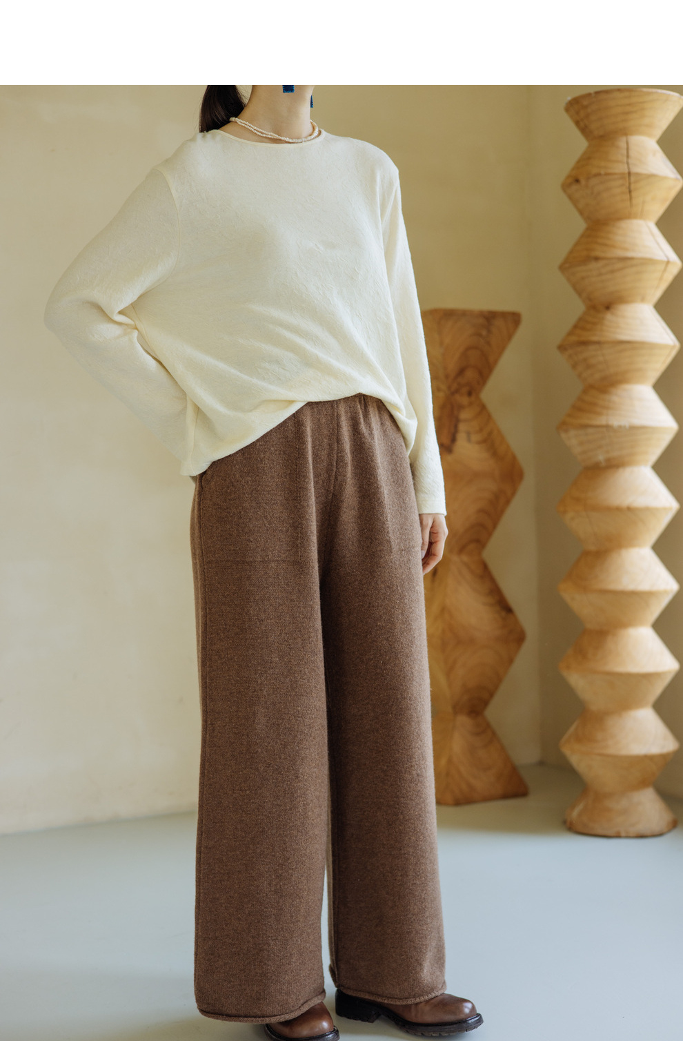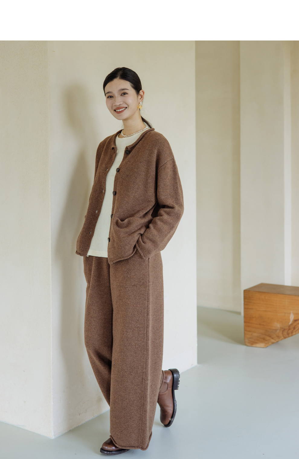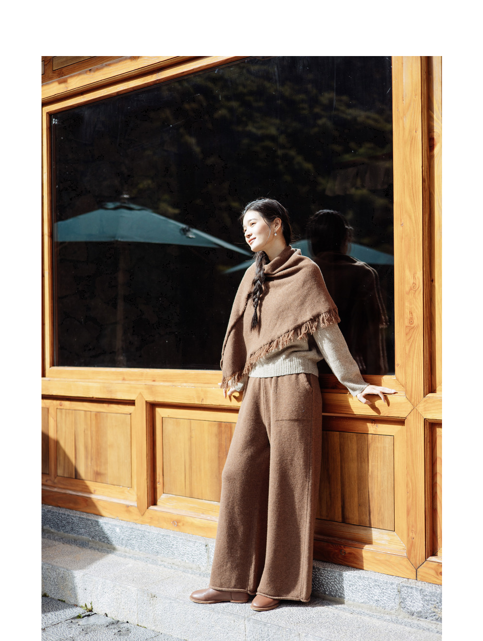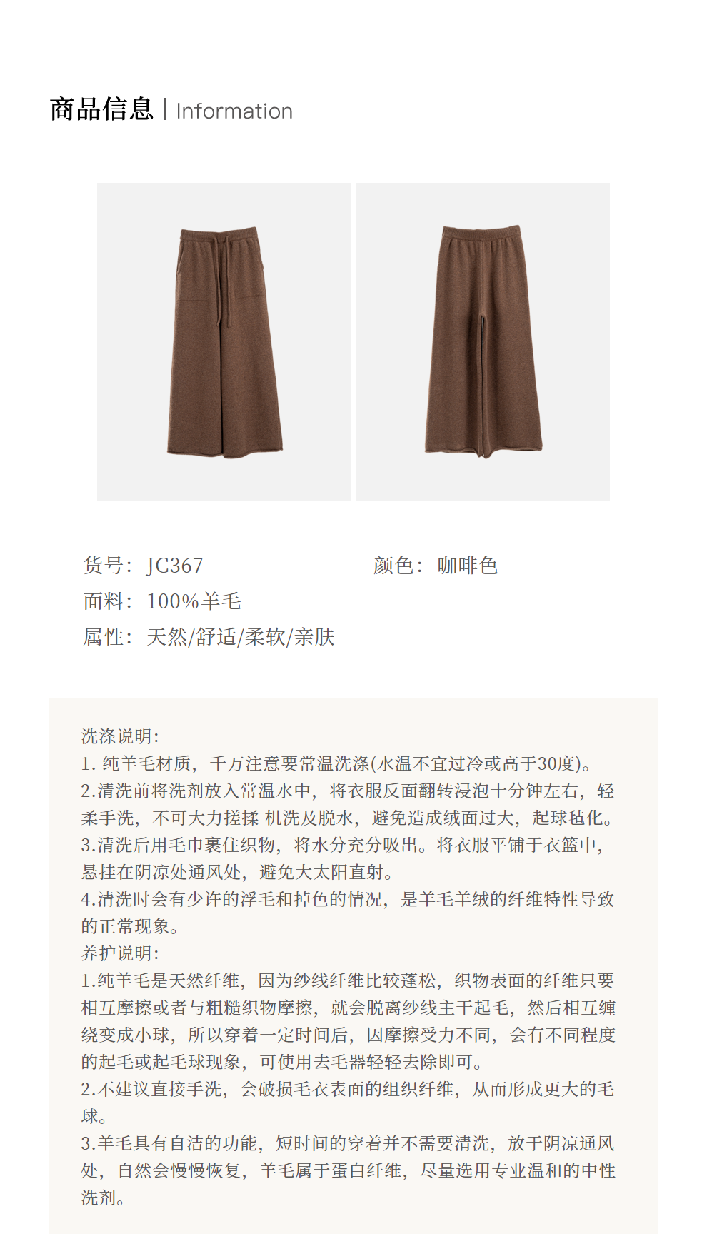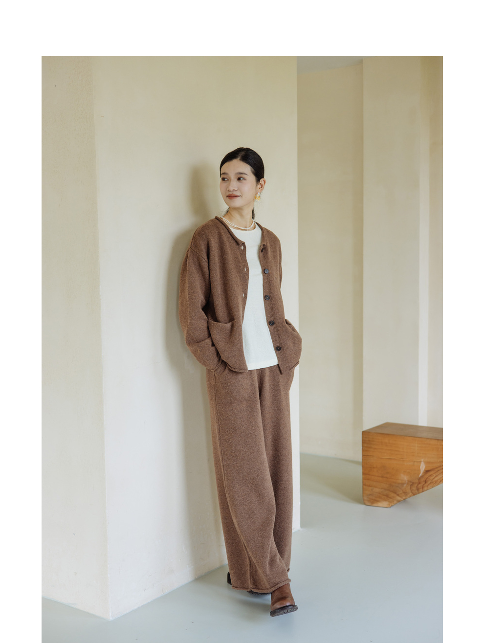 绽放旅行女367朵/全羊毛毛织百搭宽松保暖蓄温裤脚卷边直筒阔腿裤