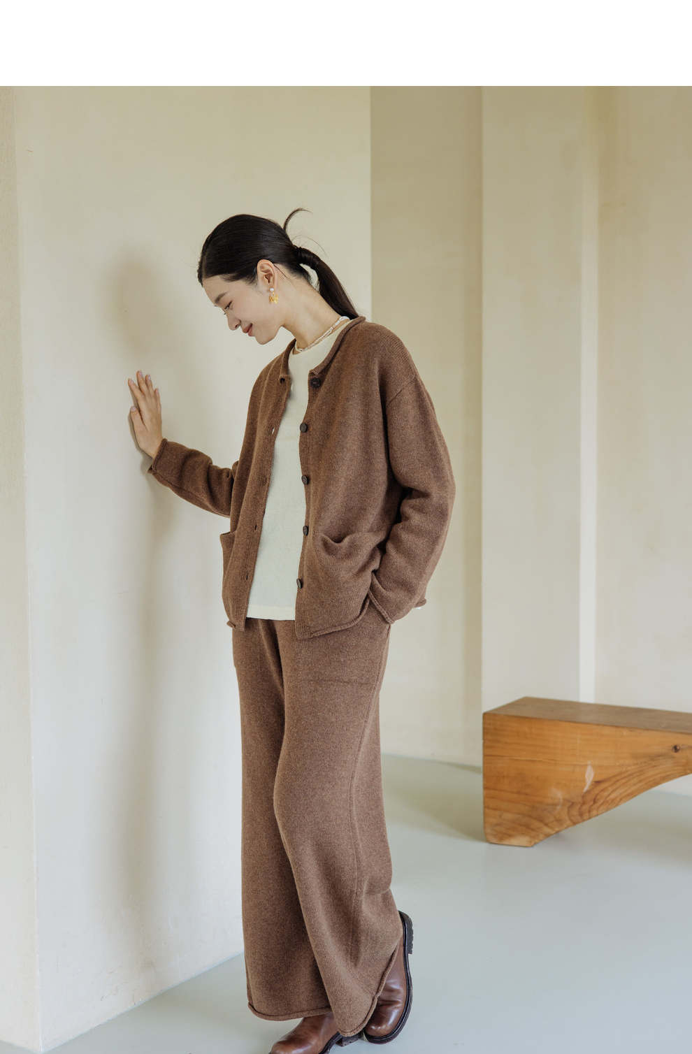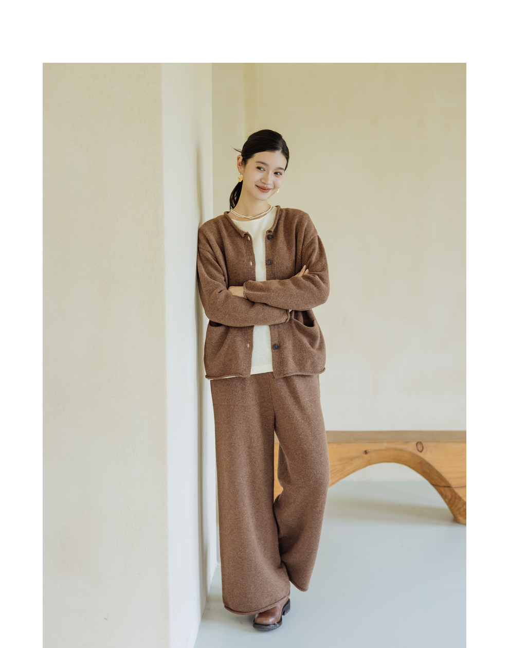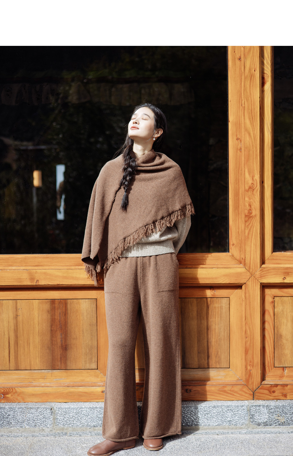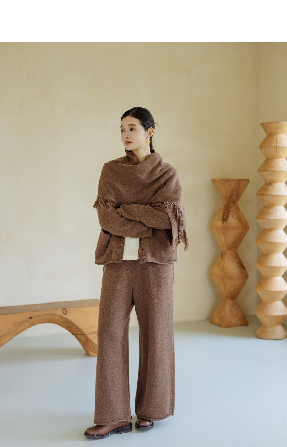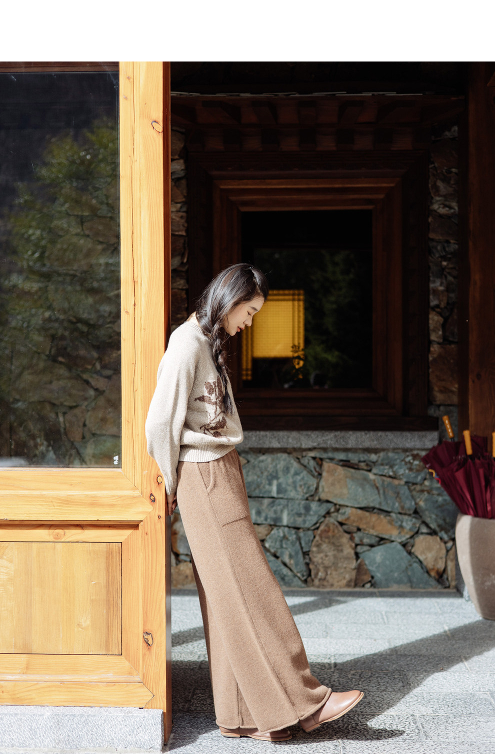 绽放旅行女367朵/全羊毛毛织百搭宽松保暖蓄温裤脚卷边直筒阔腿裤