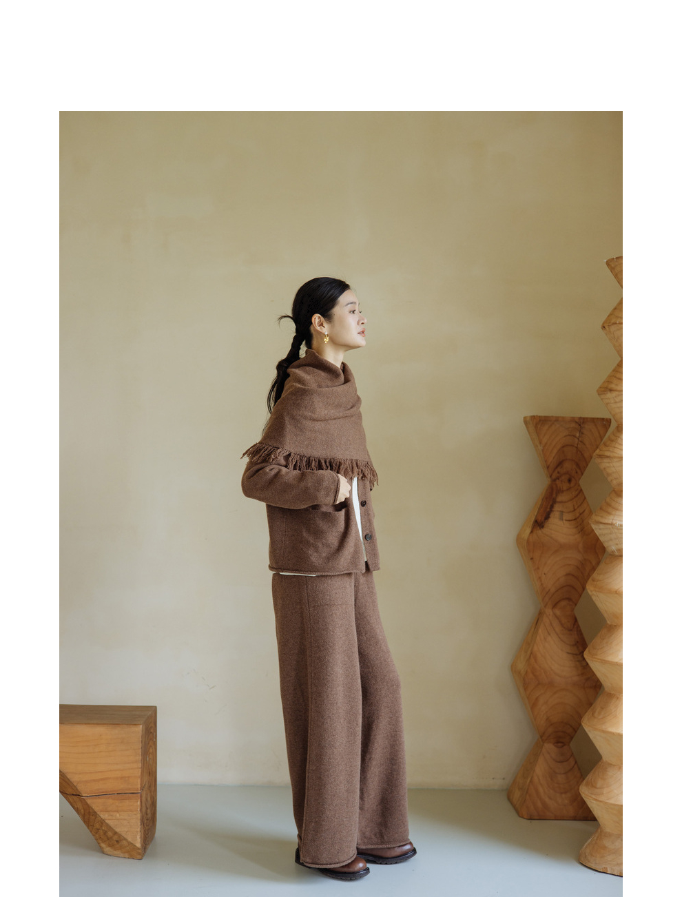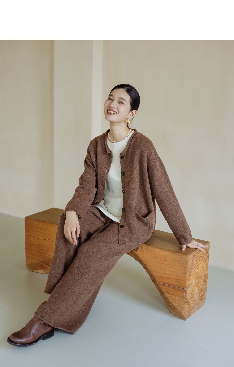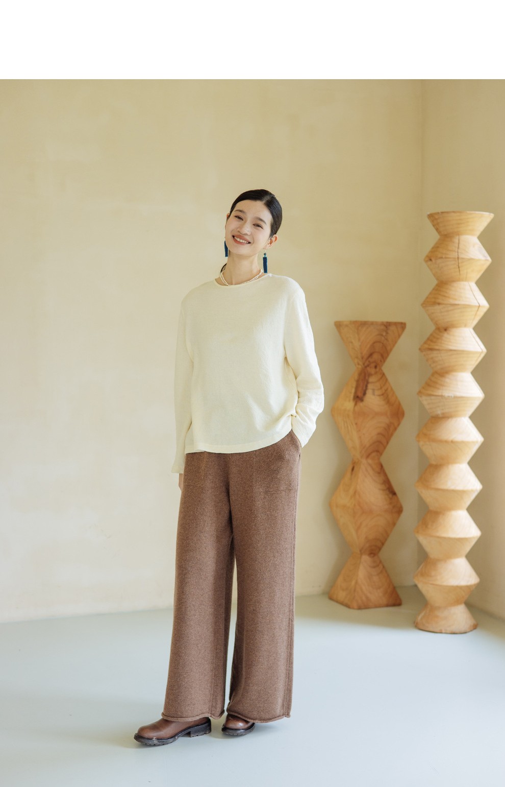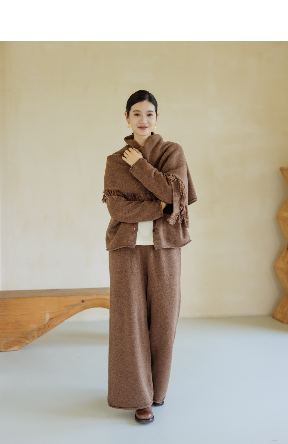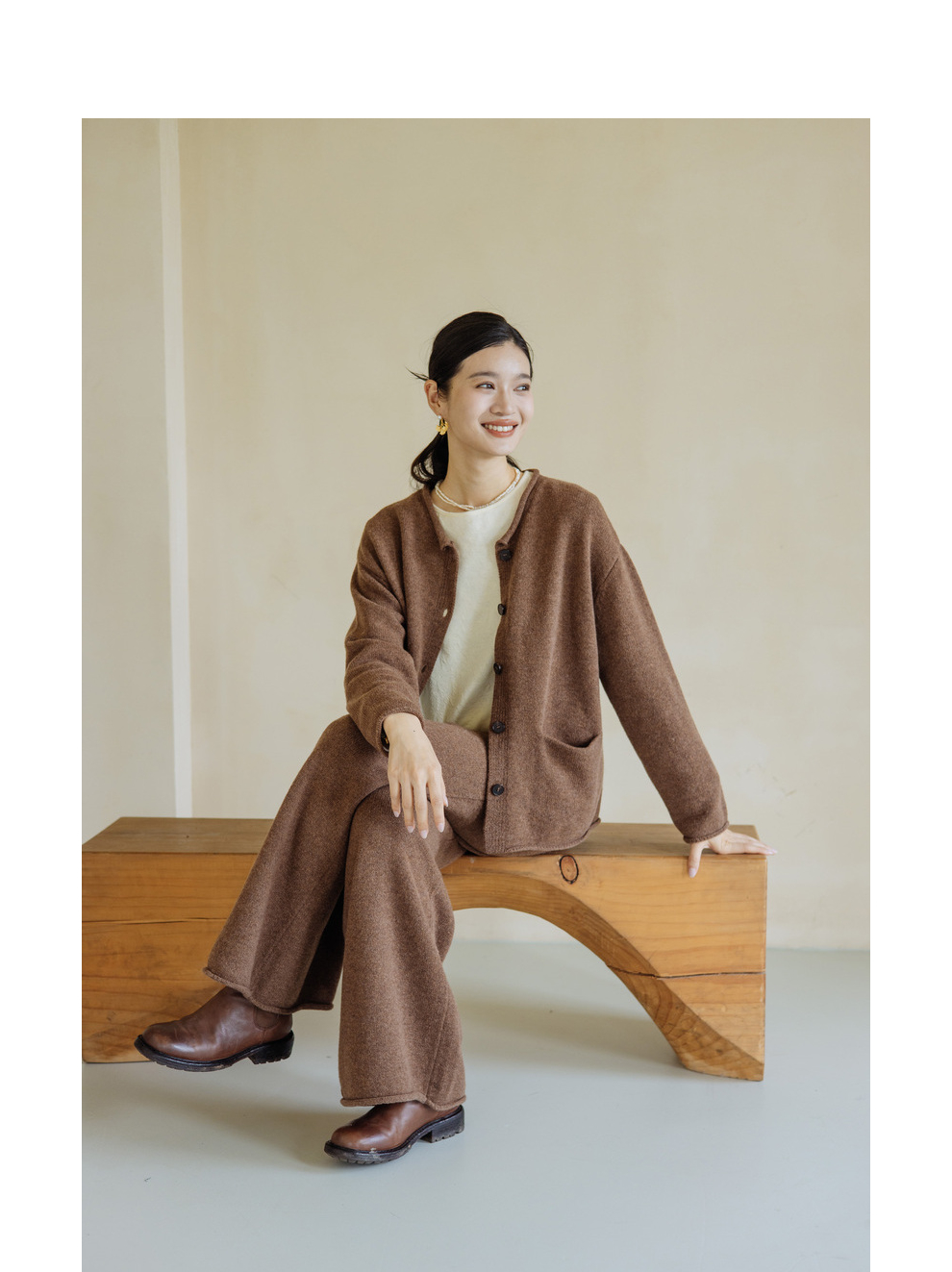 绽放旅行女367朵/全羊毛毛织百搭宽松保暖蓄温裤脚卷边直筒阔腿裤