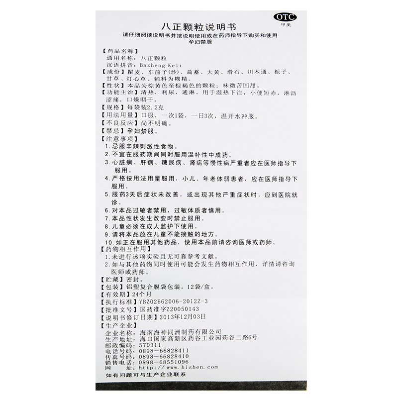 舍济八正颗粒12袋清热利尿通淋湿热下注小便短赤淋漓涩痛口燥咽干