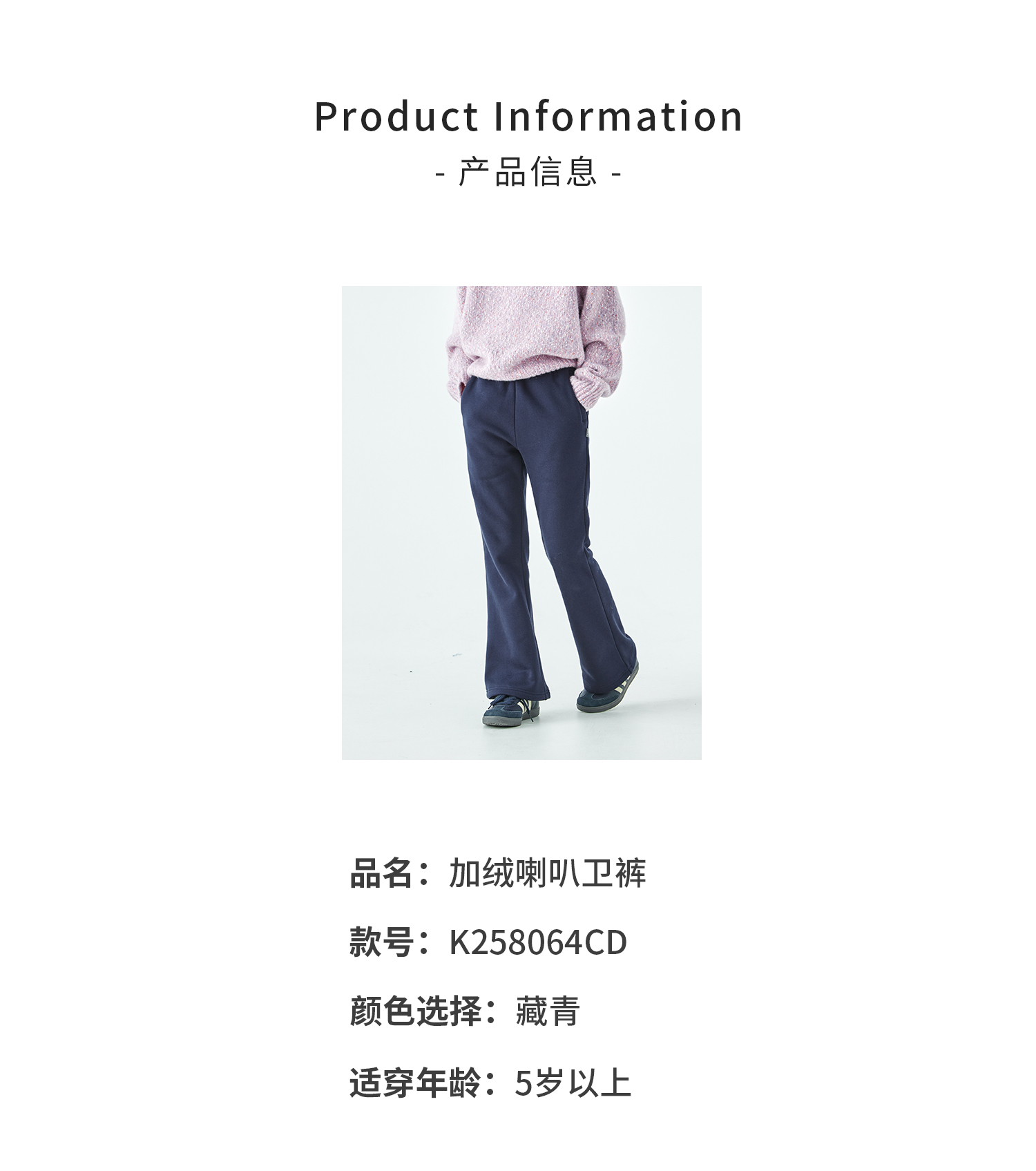 预售1.4发 棵初25年秋冬新款亲子中大童内里加绒喇叭卫裤抗菌抗静电休闲裤子