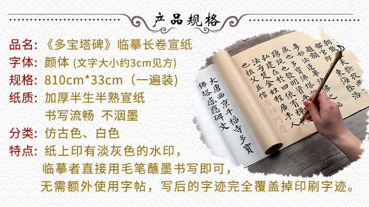 《多宝塔碑》楷书入门描红临摹长卷白色+仿古色宣纸,两件包邮