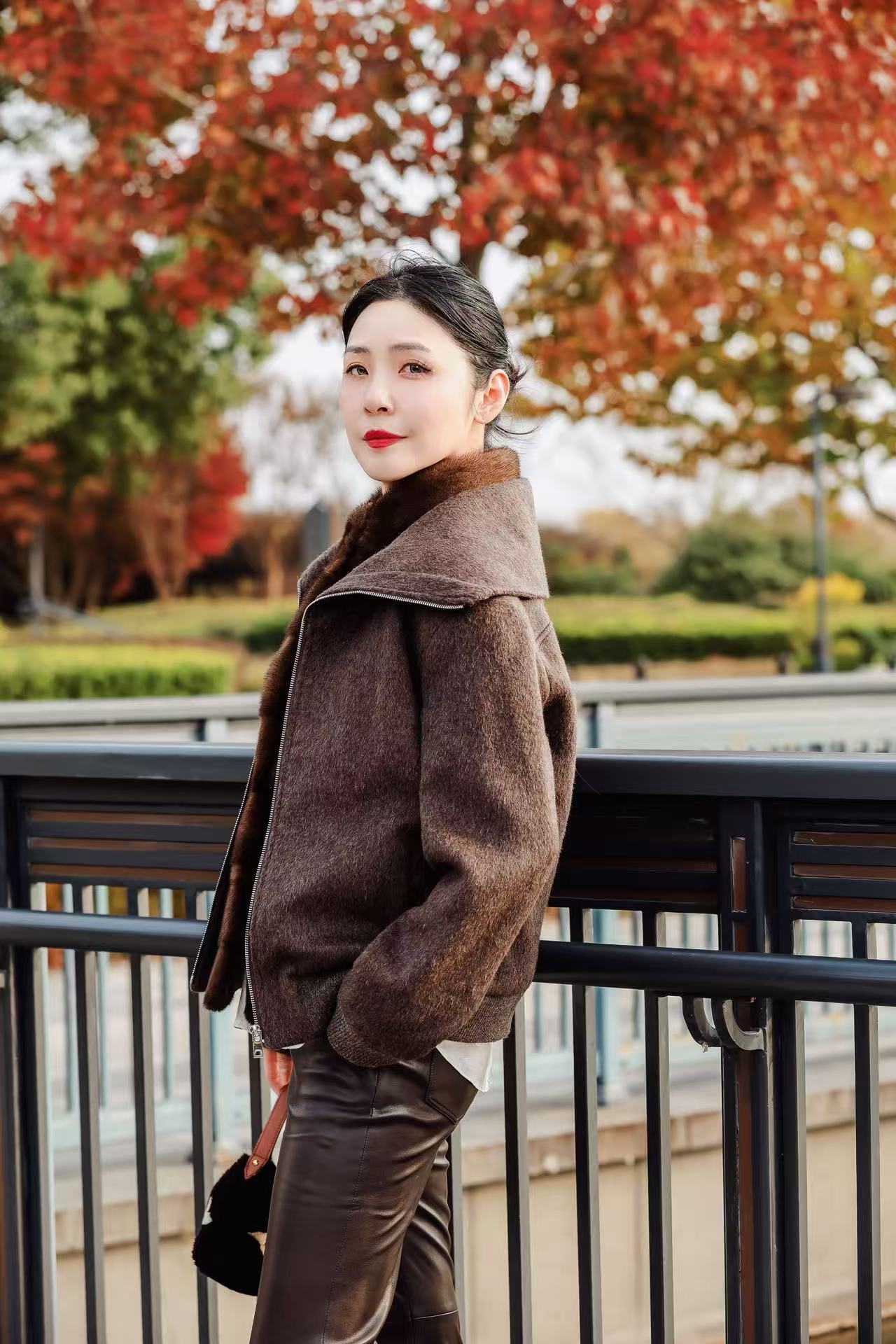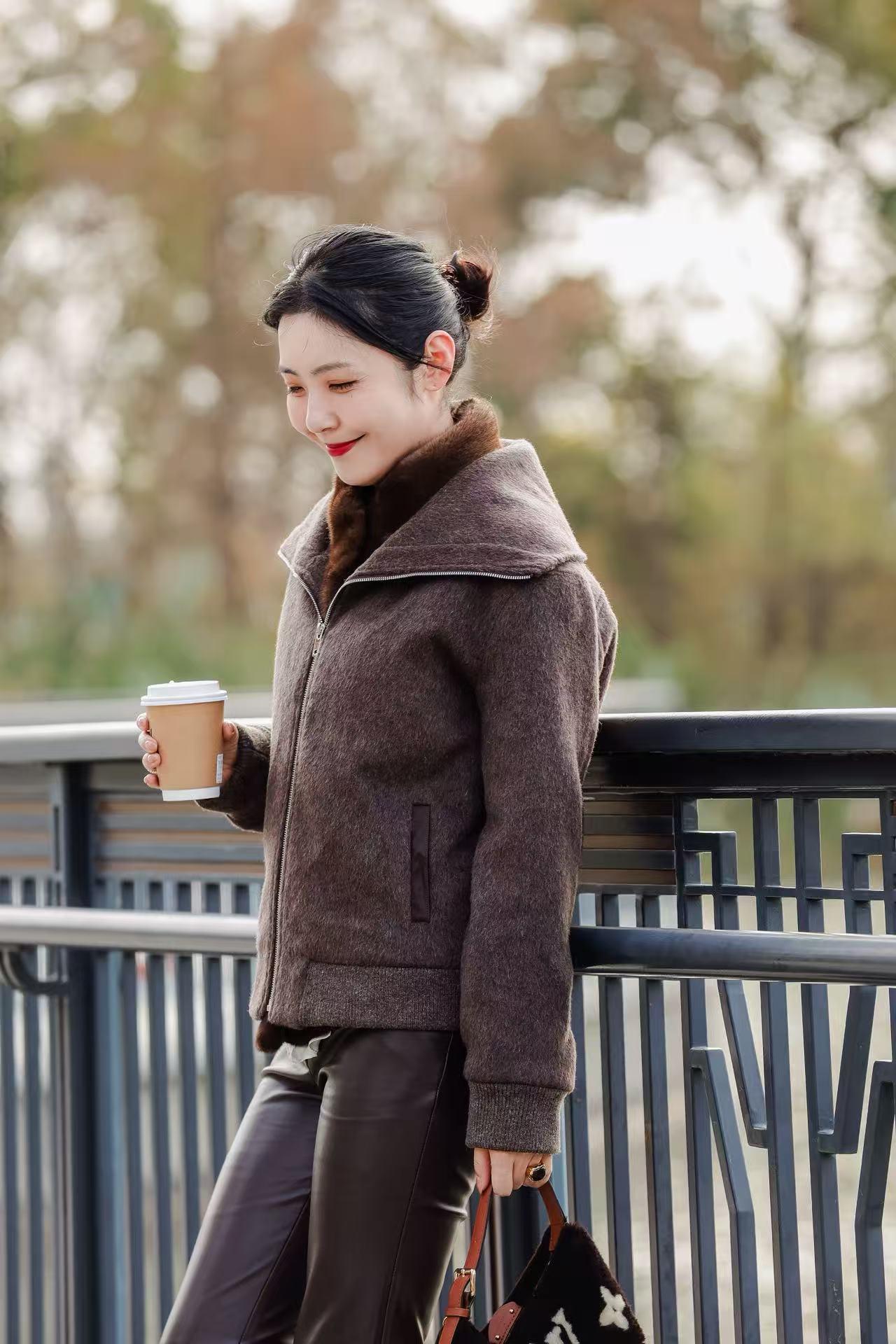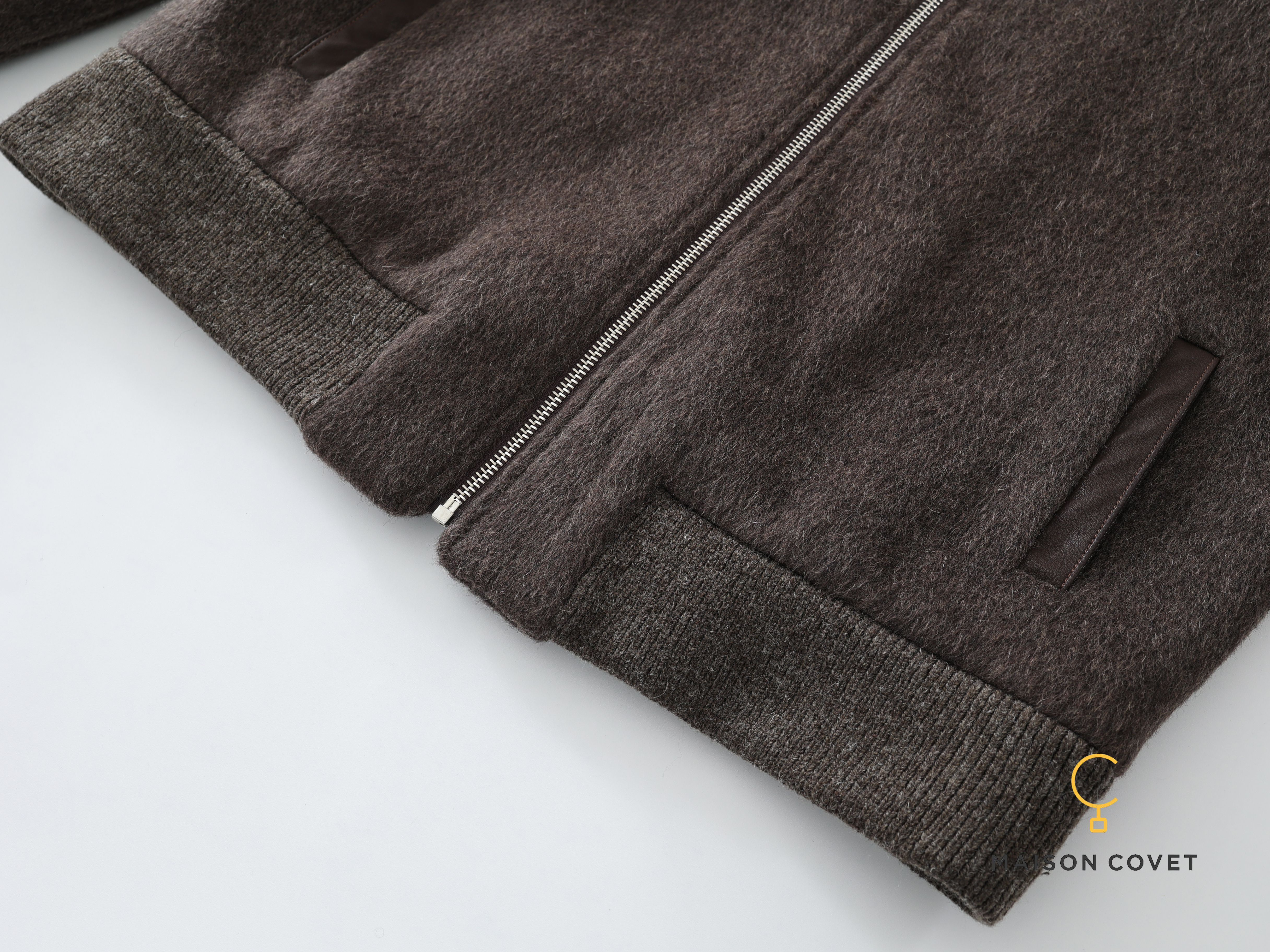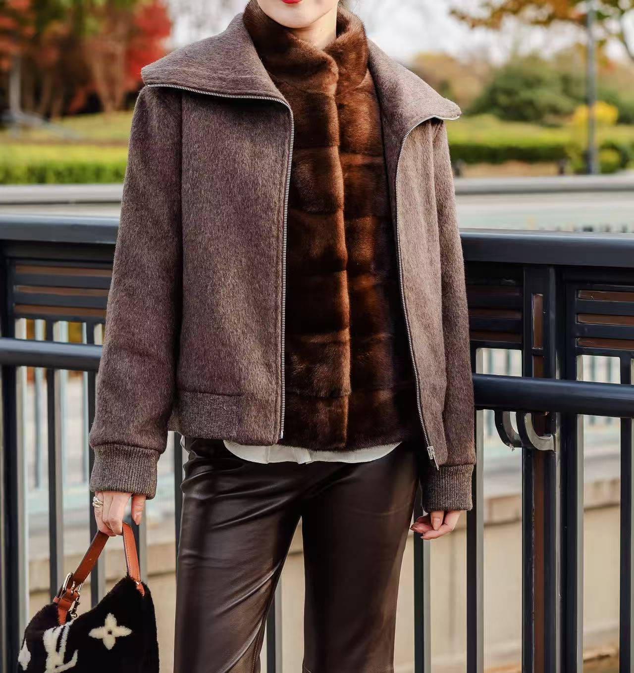 罗纹袖口下摆设计结合小羊皮侧插袋