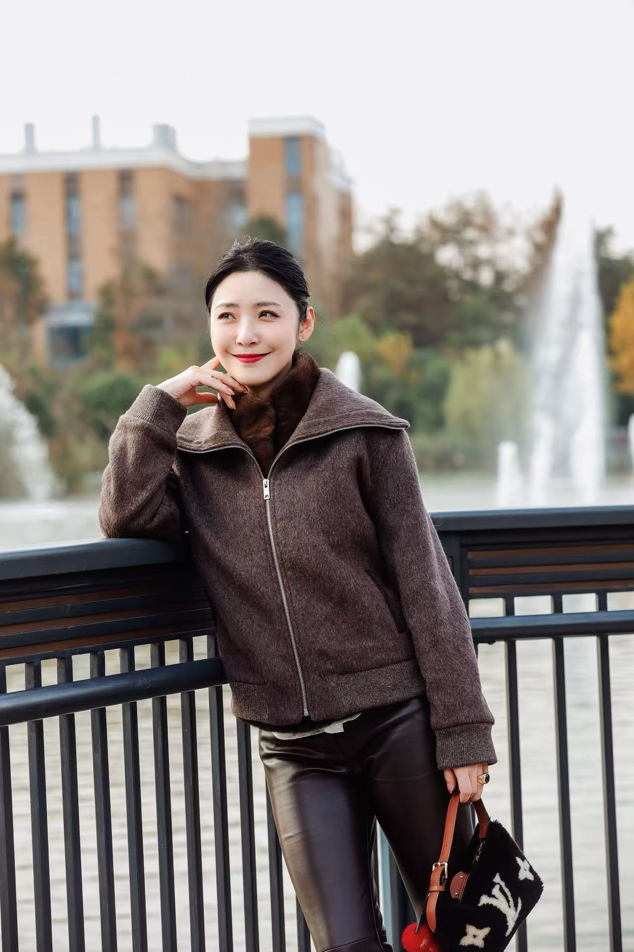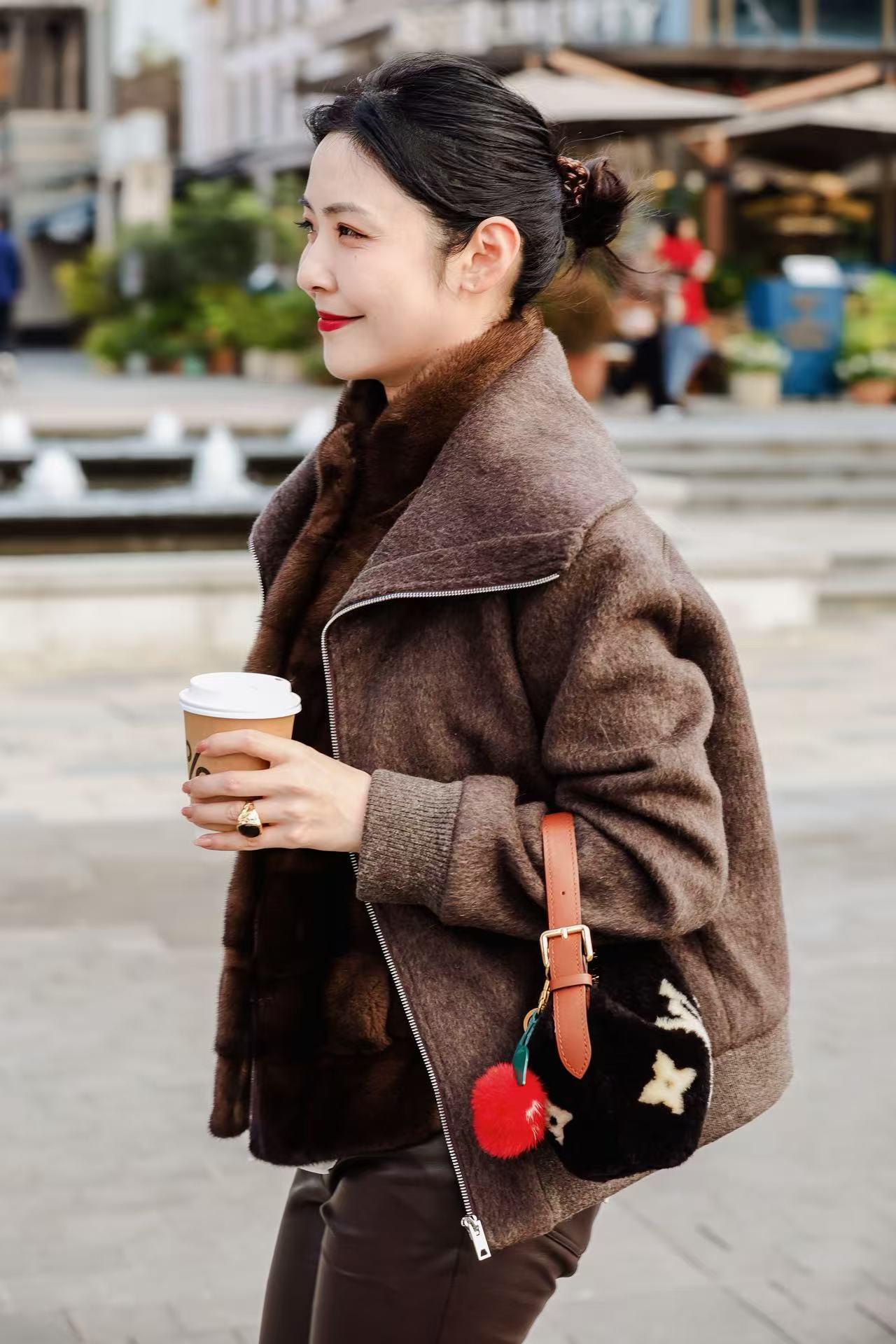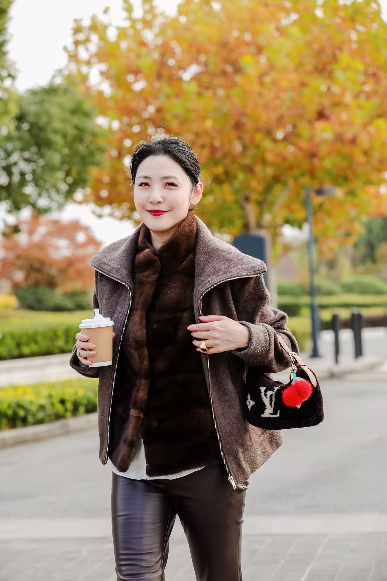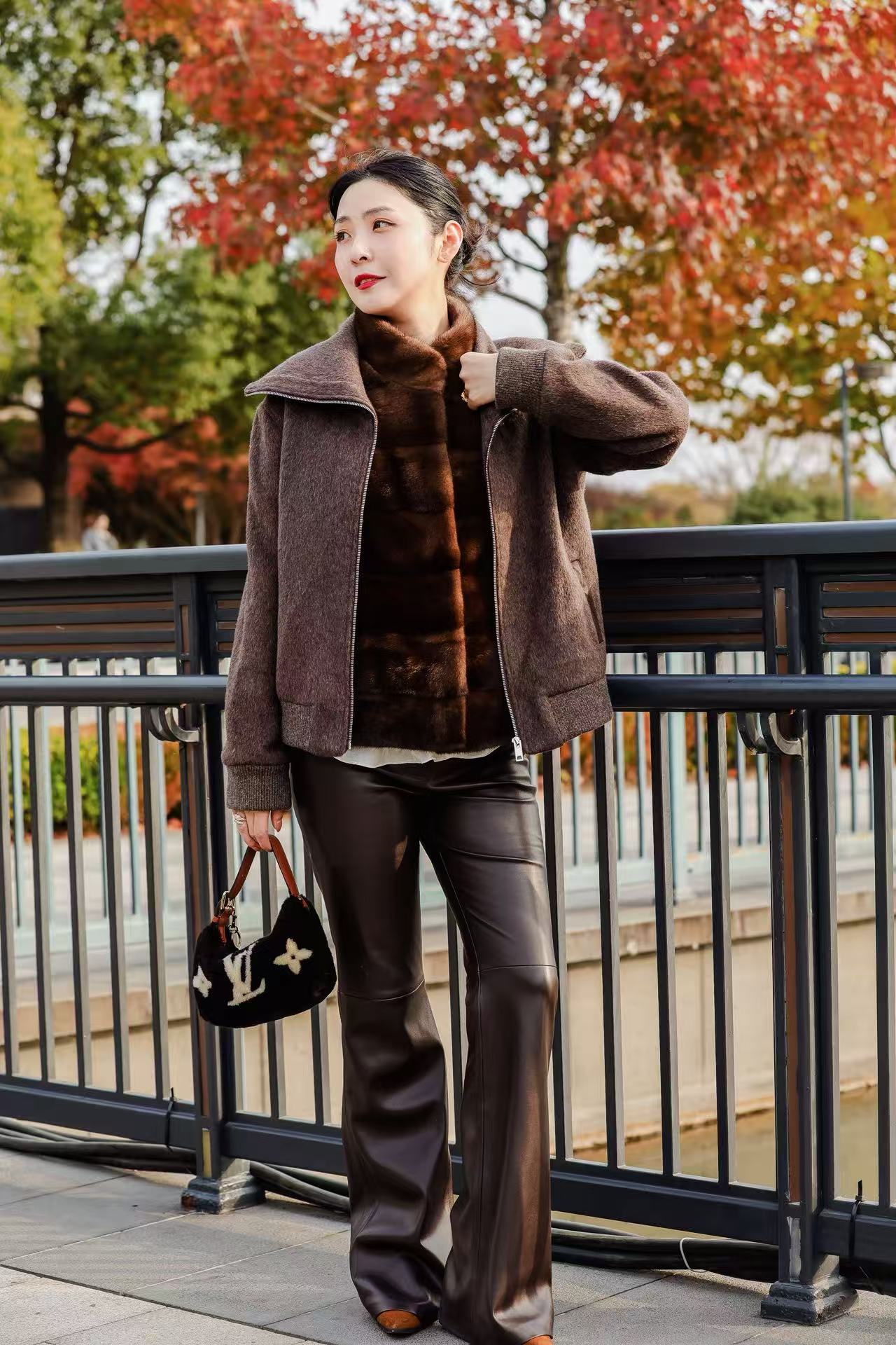罗纹袖口下摆设计结合小羊皮侧插袋