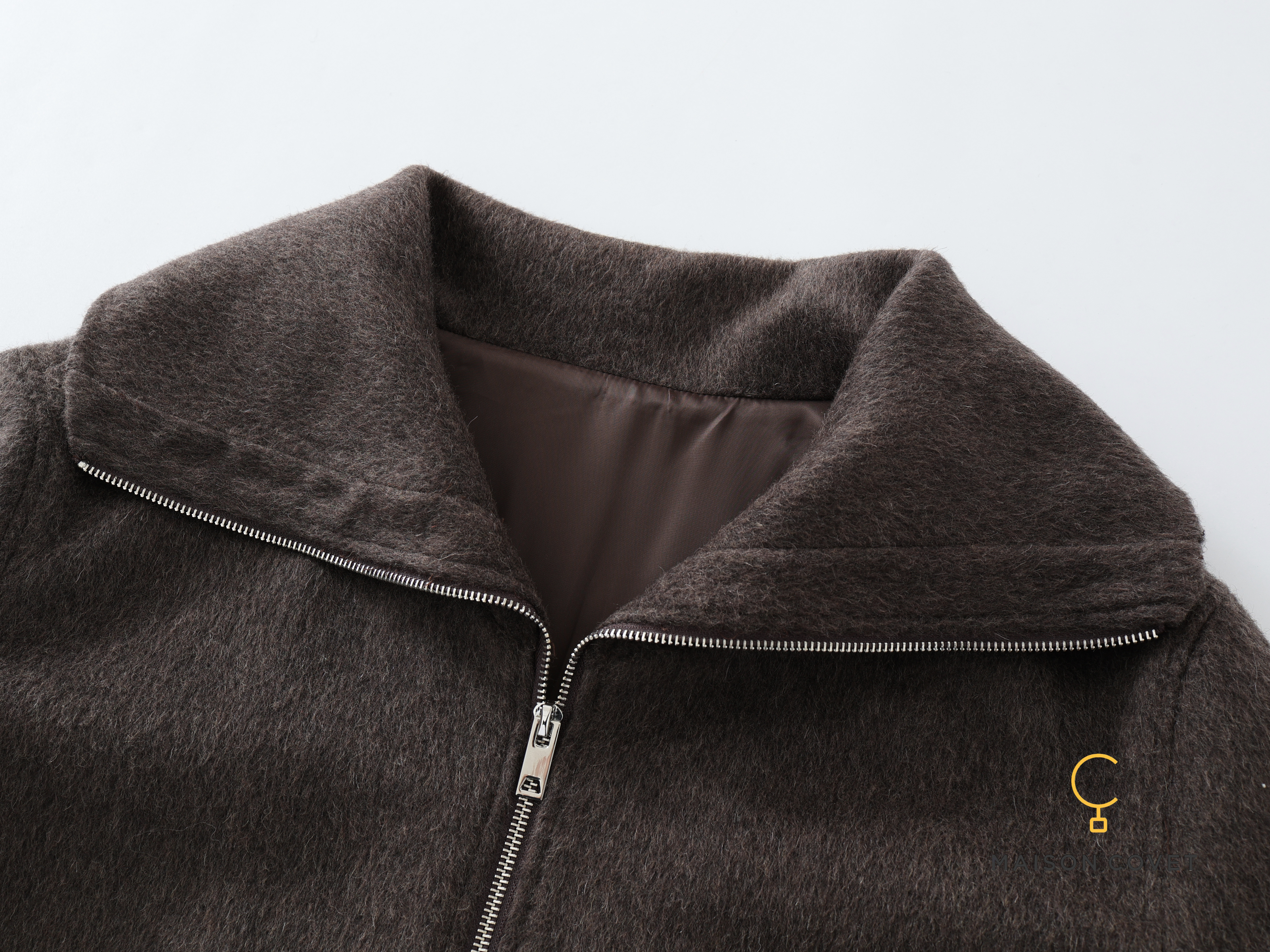 此款夹克采用羊毛/羊绒混纺弹力面料
