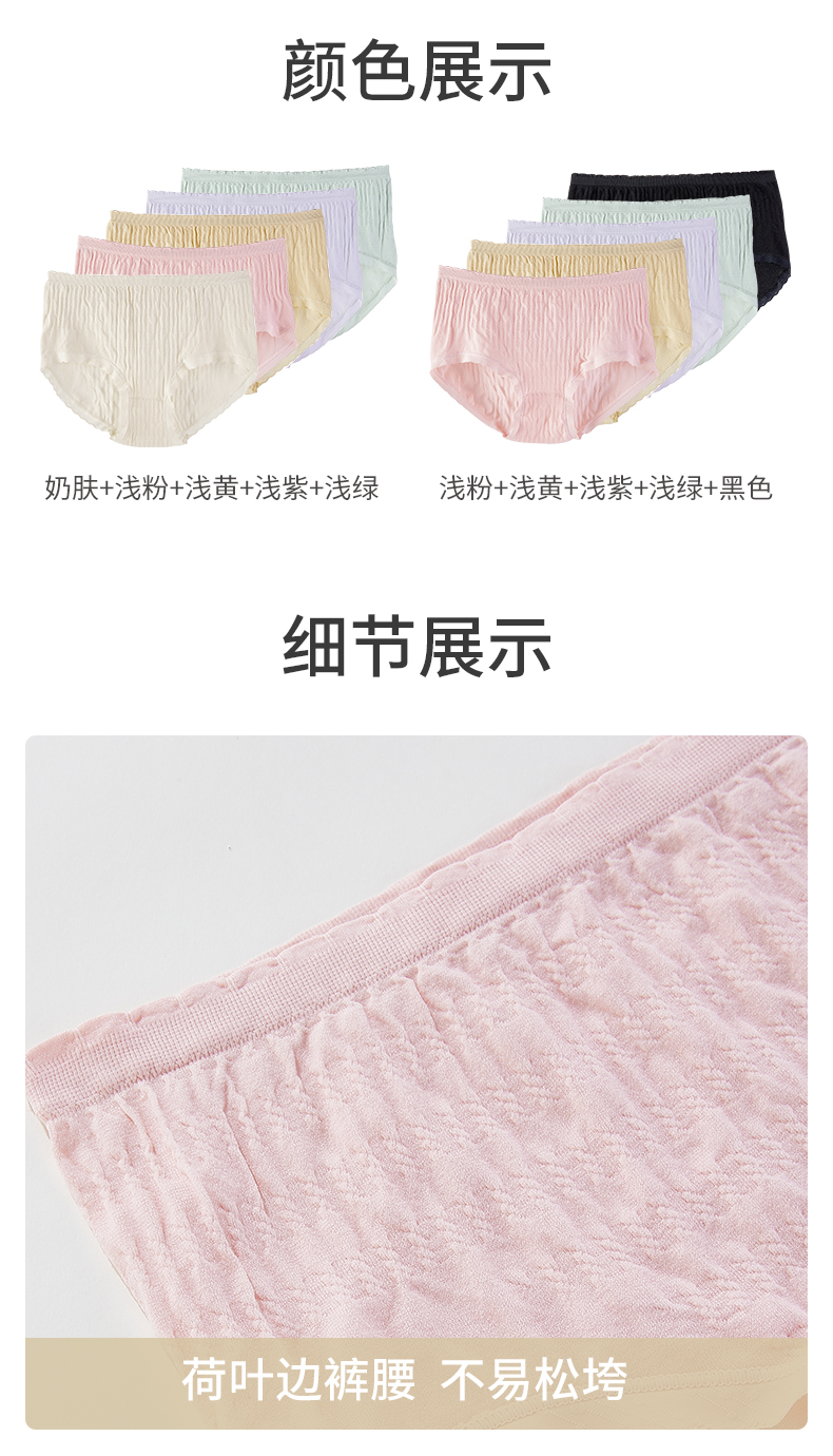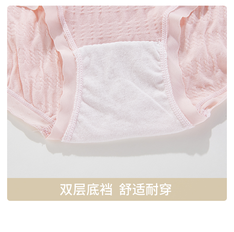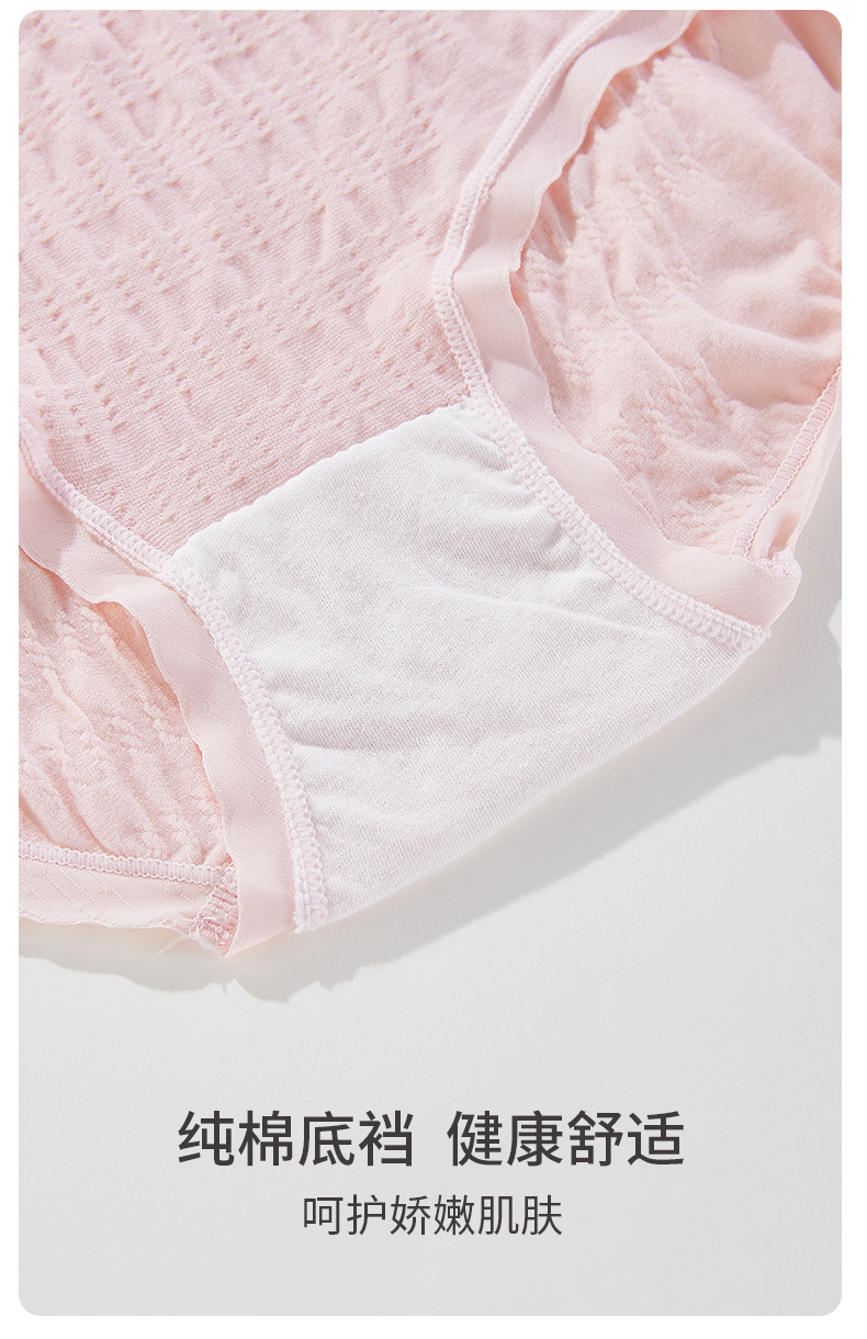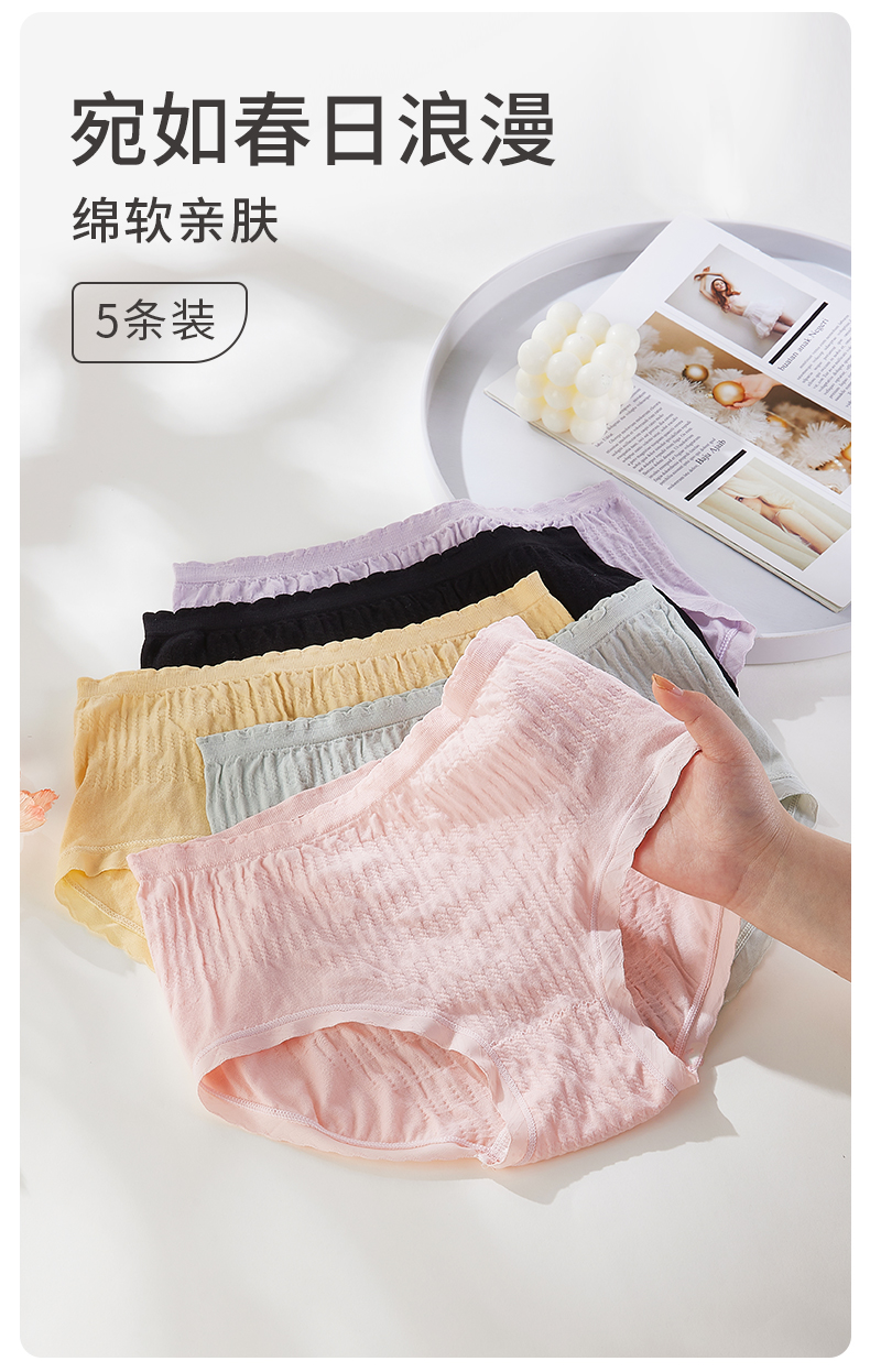 雅黛俪女士内裤女新款透气纯棉底裆中腰三角裤浮雕提花设计5条装