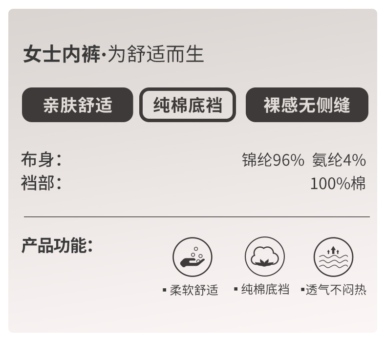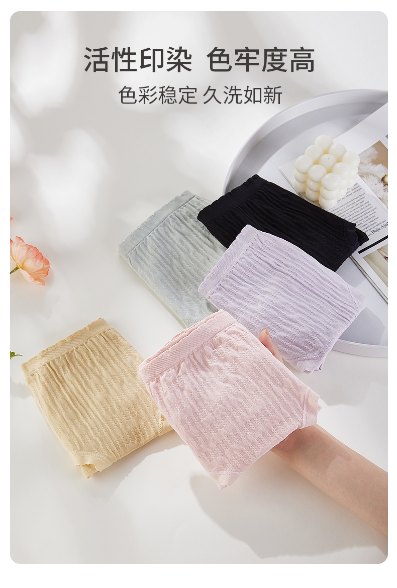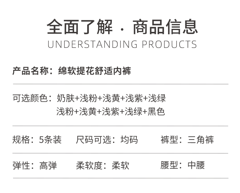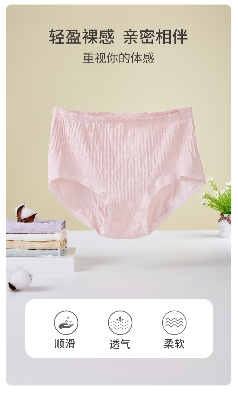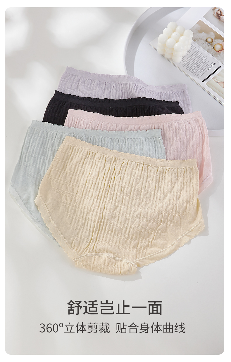 雅黛俪女士内裤女新款透气纯棉底裆中腰三角裤浮雕提花设计5条装