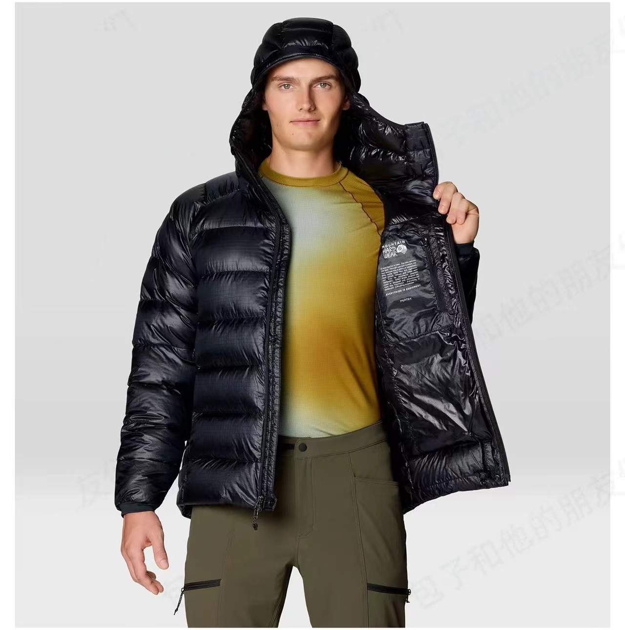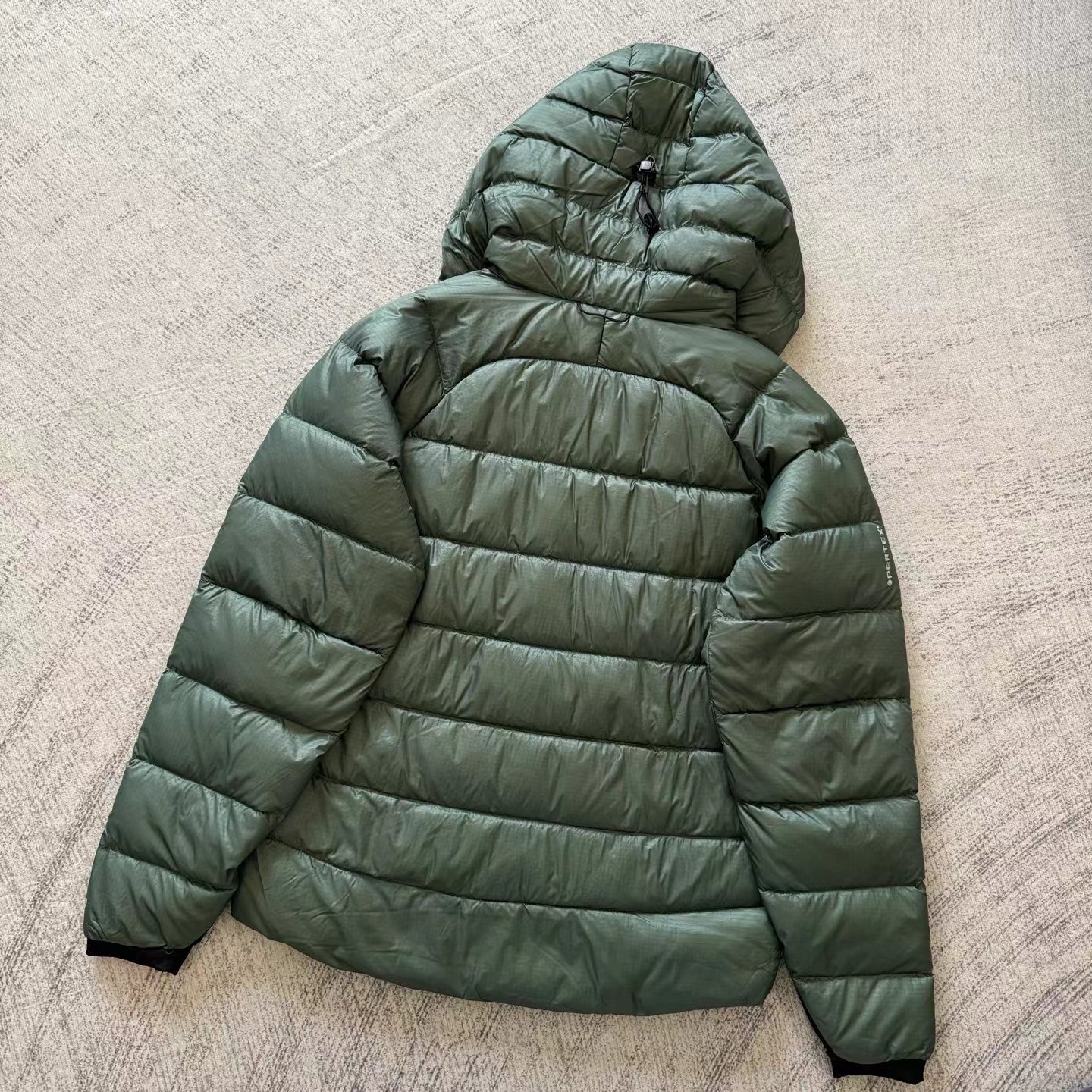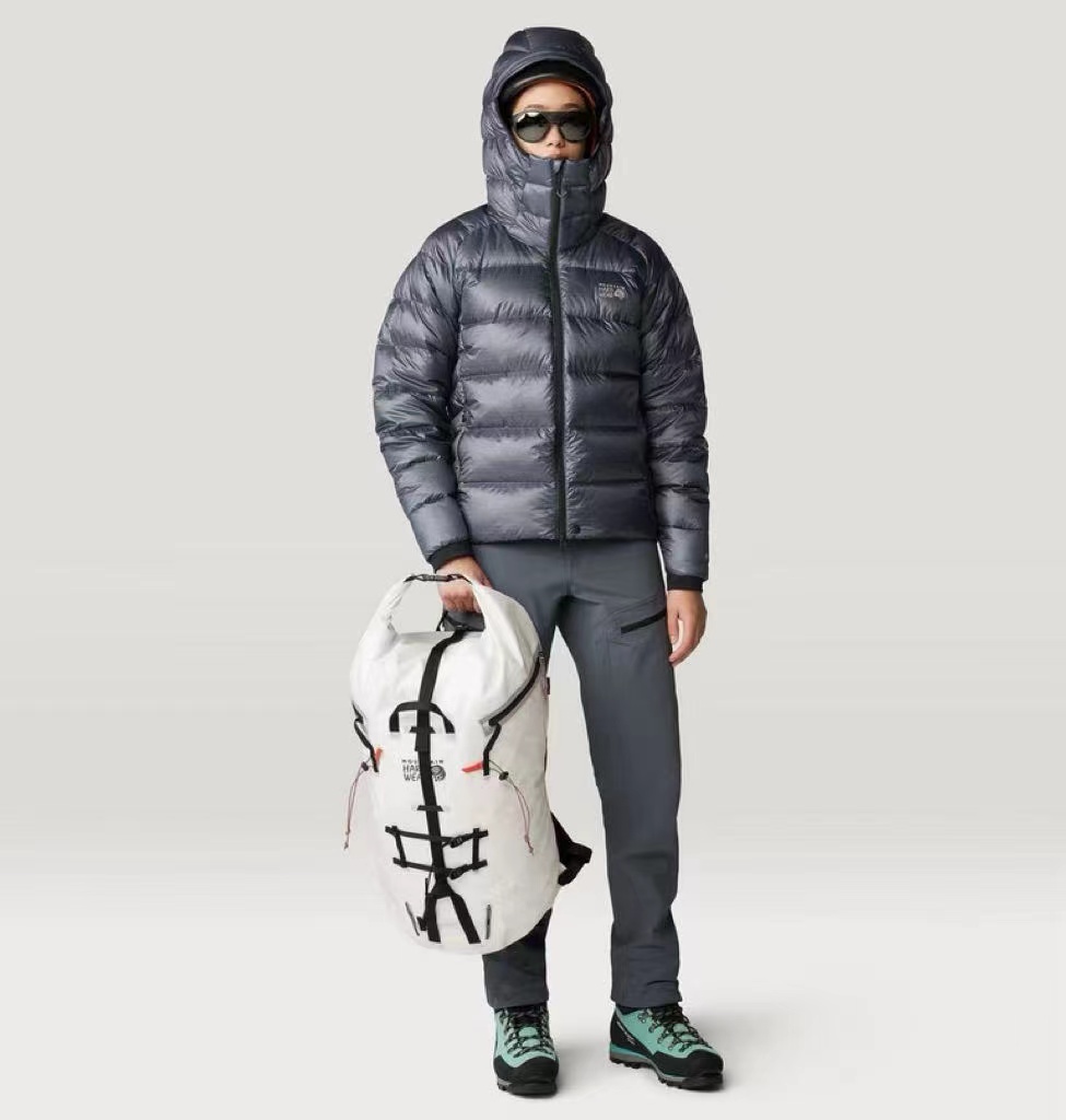 「幻影」800蓬?高山羽绒服,·?采用Pertex??超轻薄耐磨科技面料,搭载?DWR?持久防泼水涂层,兼具防水、透气与耐磨性能。这款羽绒采用?九州定制?90%?高蓬白鸭绒,蓬松度达?800+。充绒量?200克,采用?全盒式立衬结构,保暖均匀不跑绒。面料经?防钻绒处理,久穿依旧紧密扎实。尽管拥有800高蓬松度与200克充绒量,整衣重量仅约?1KG,易于打包,便于旅行与户外携带。剪裁合身不臃肿,适合长时间高山攀登与狭窄地形活动。1.?头盔兼容连帽,带抽绳调节,适配攀登需求。2.?袖口采用弹力针织面料,保暖舒适。3.?双向前拉链?+两侧超大拉链手袋,实用便捷。4.?抽绳下摆,增强防风锁温。5.?内设卡扣环与安全拉链口袋,便于携带与收纳