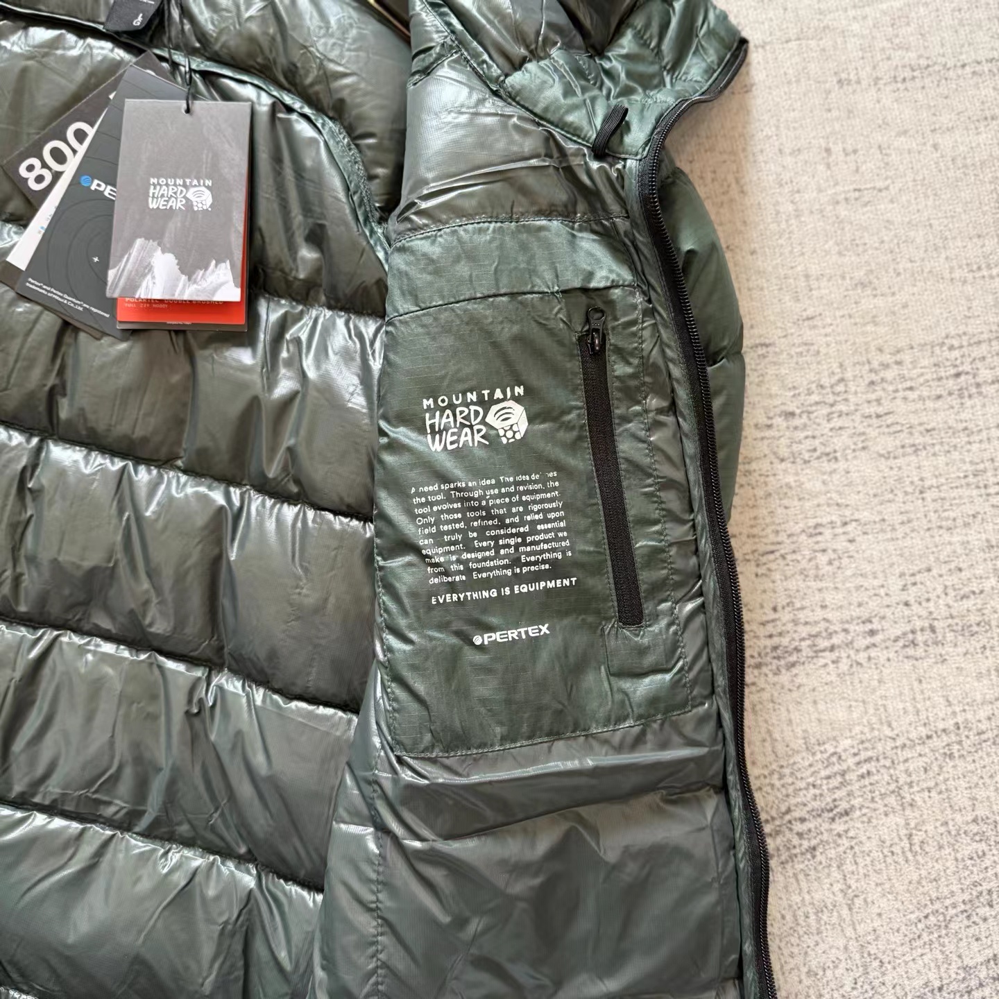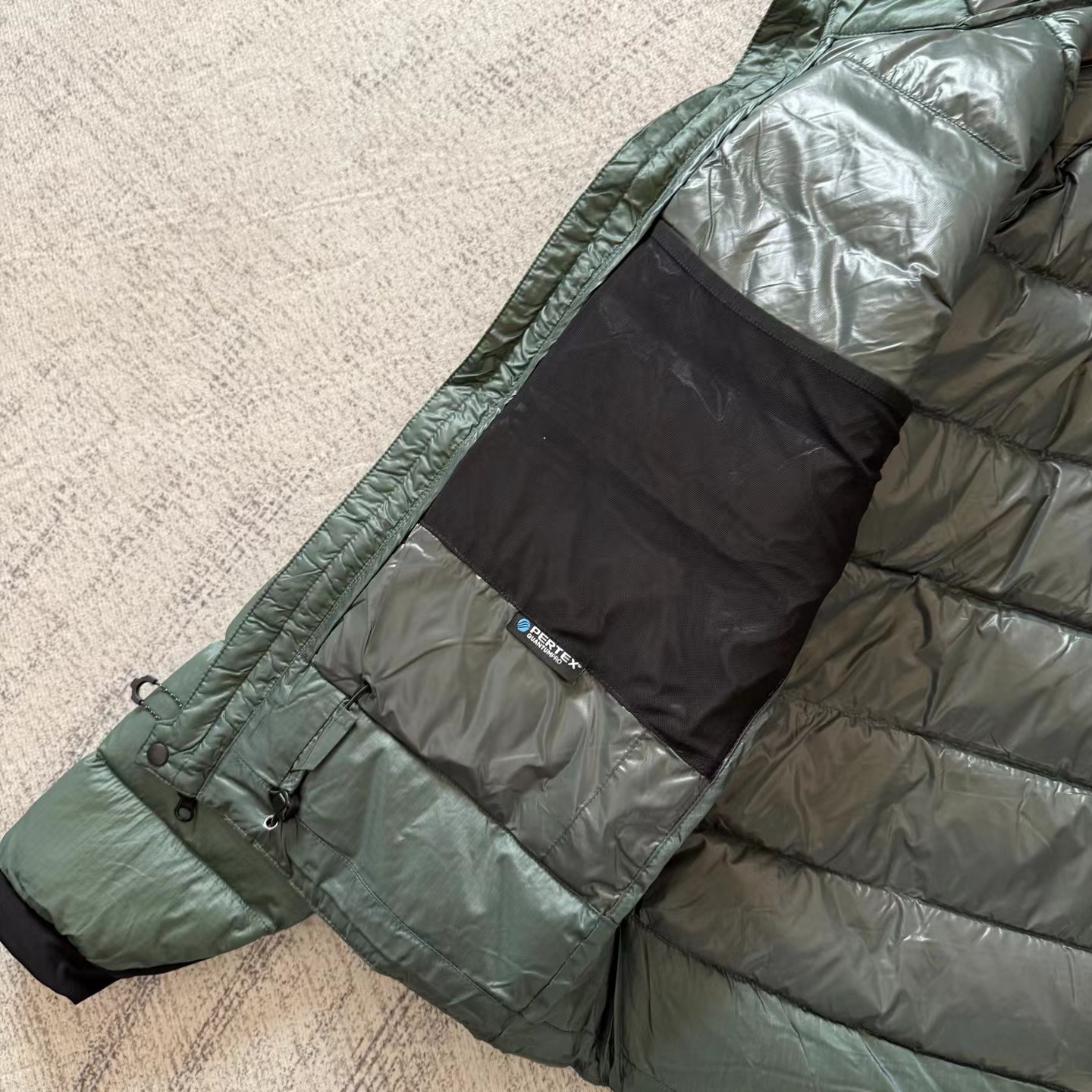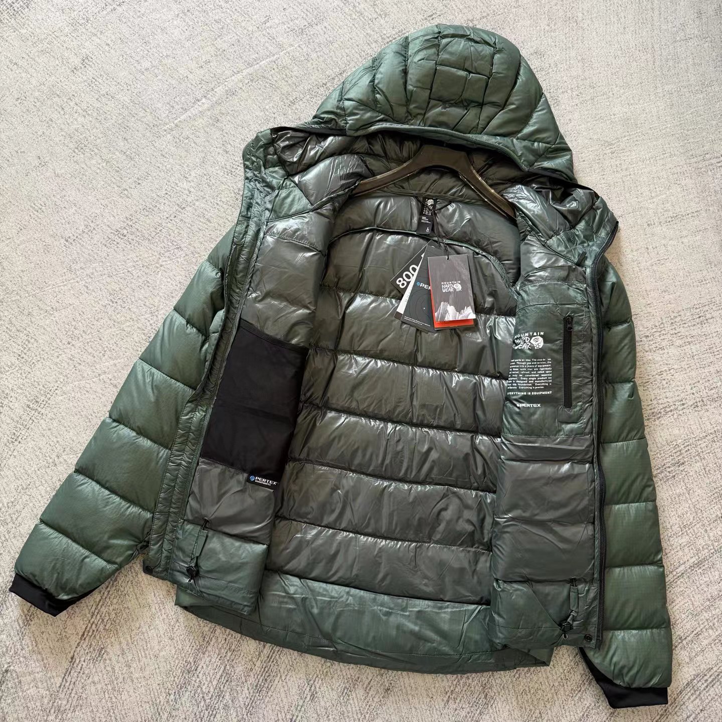 「幻影」800蓬?高山羽绒服,·?采用Pertex??超轻薄耐磨科技面料,搭载?DWR?持久防泼水涂层,兼具防水、透气与耐磨性能。这款羽绒采用?九州定制?90%?高蓬白鸭绒,蓬松度达?800+。充绒量?200克,采用?全盒式立衬结构,保暖均匀不跑绒。面料经?防钻绒处理,久穿依旧紧密扎实。尽管拥有800高蓬松度与200克充绒量,整衣重量仅约?1KG,易于打包,便于旅行与户外携带。剪裁合身不臃肿,适合长时间高山攀登与狭窄地形活动。1.?头盔兼容连帽,带抽绳调节,适配攀登需求。2.?袖口采用弹力针织面料,保暖舒适。3.?双向前拉链?+两侧超大拉链手袋,实用便捷。4.?抽绳下摆,增强防风锁温。5.?内设卡扣环与安全拉链口袋,便于携带与收纳