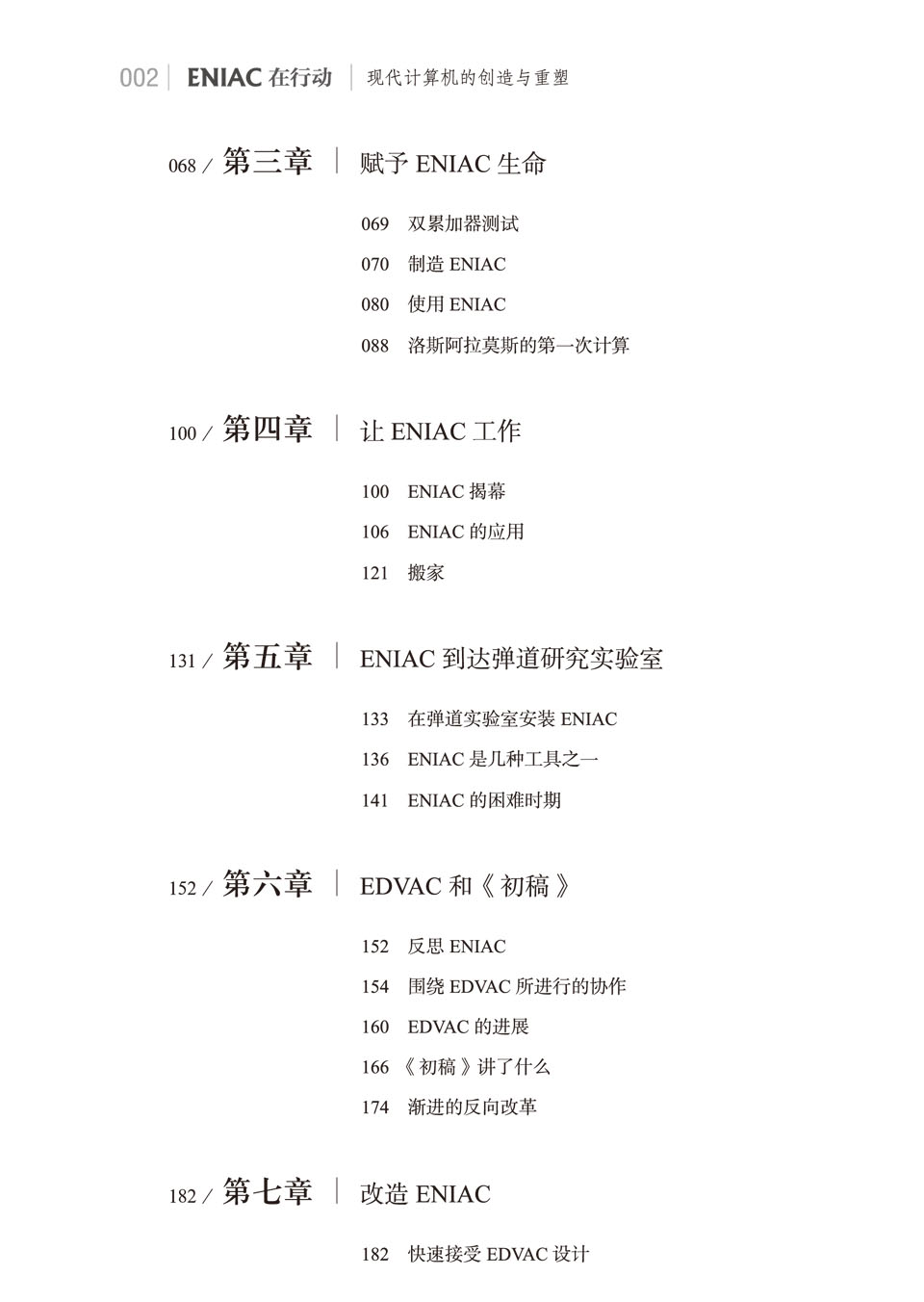 本书按时间的大致顺序展开,但会从多重不同的角度来讲述ENIAC的故事,涵盖了从发明、建造、使用、改进到淘汰的过程。每个角度都提供了有关ENIAC过去和现在的样貌的不同观点,从而诠释了它的重要性。