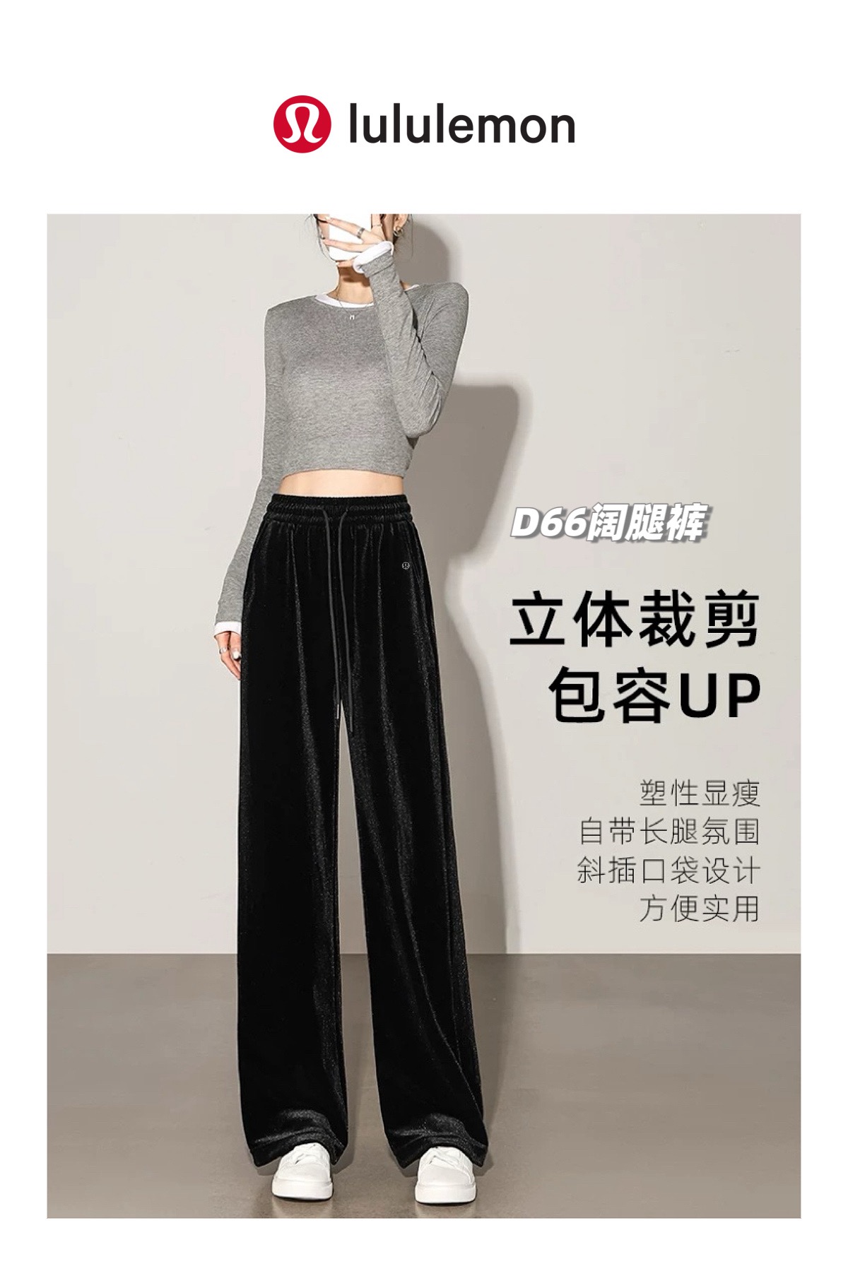 一包2条装!金丝绒,高端大气又保暖!lulu2025冬款双面金丝绒阔腿裤!一整条裤子都是软软糯糯的金丝绒,上身无敌舒服的,绝对的力荐款!