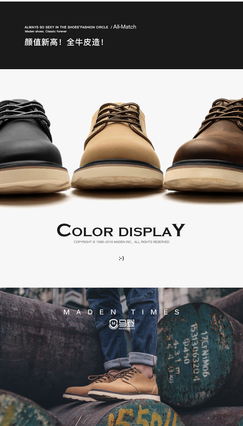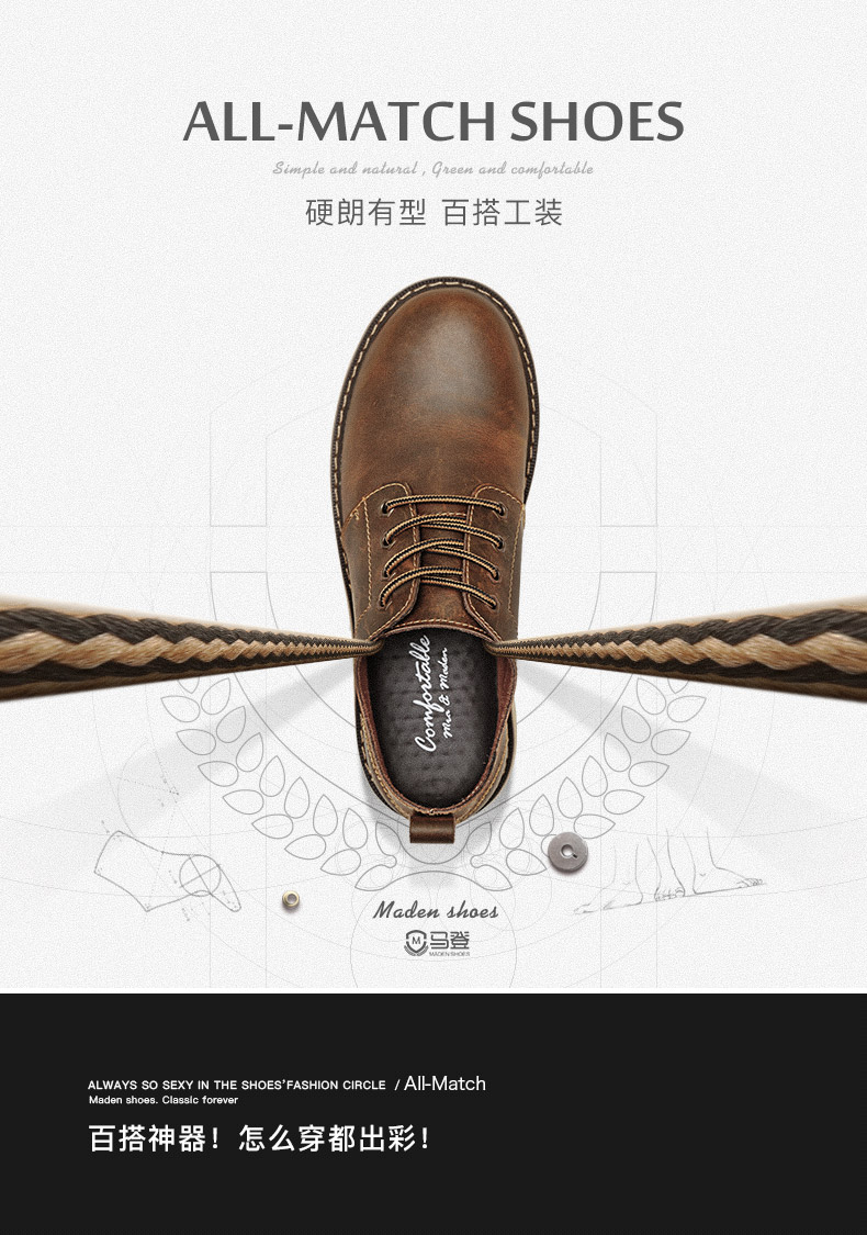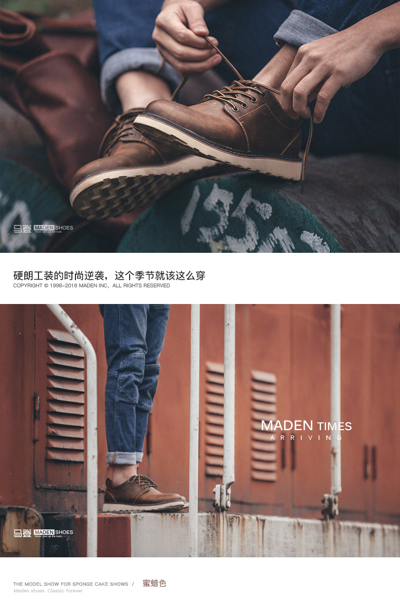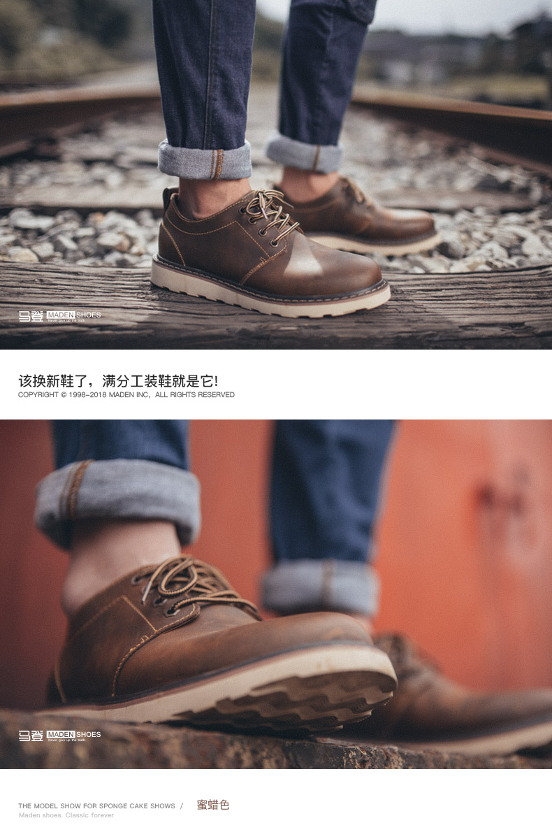 男鞋冬季2018新款男士大头休闲皮鞋韩版潮流英伦低帮工装马丁靴潮