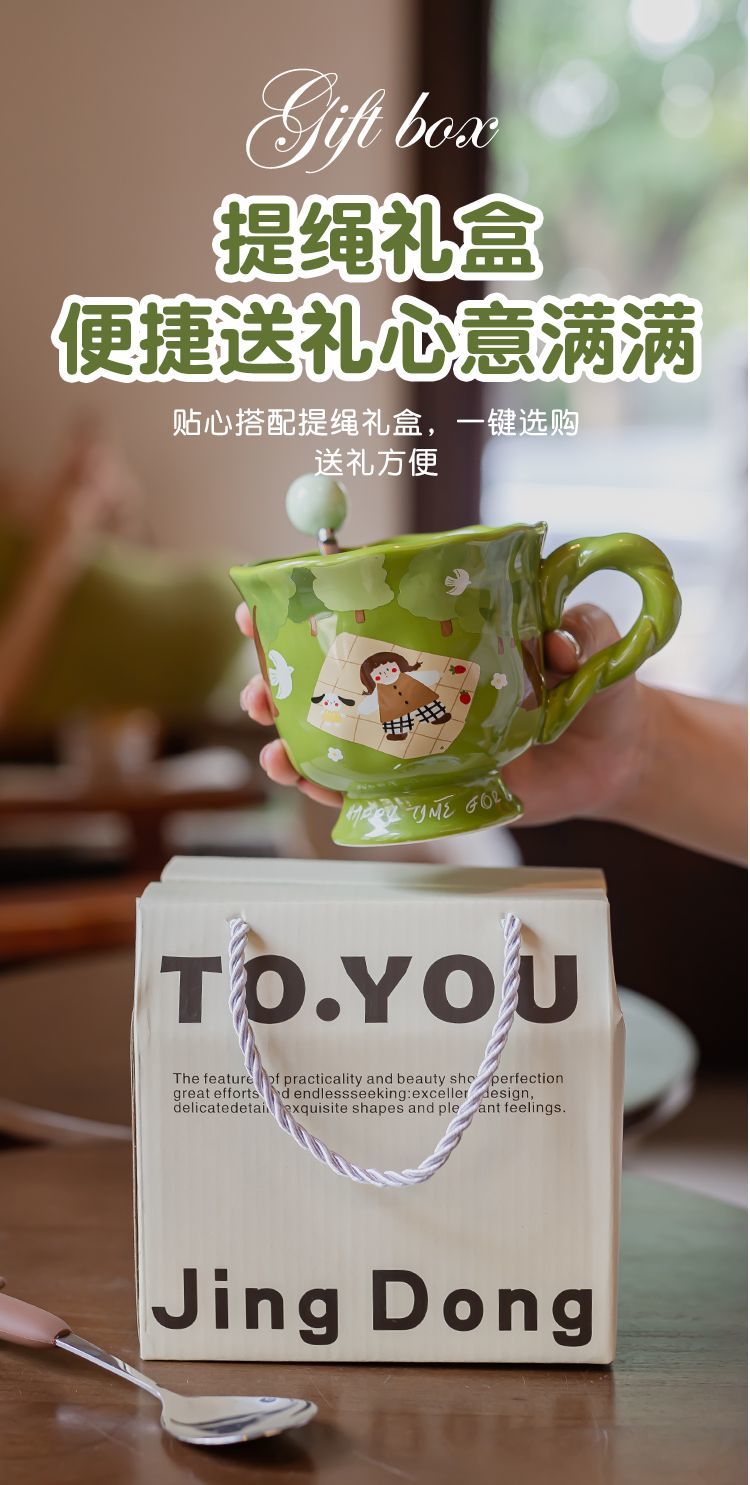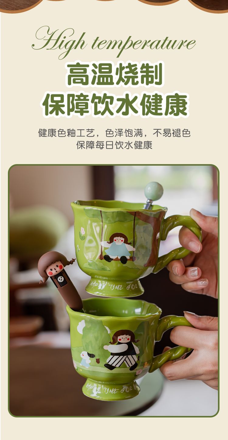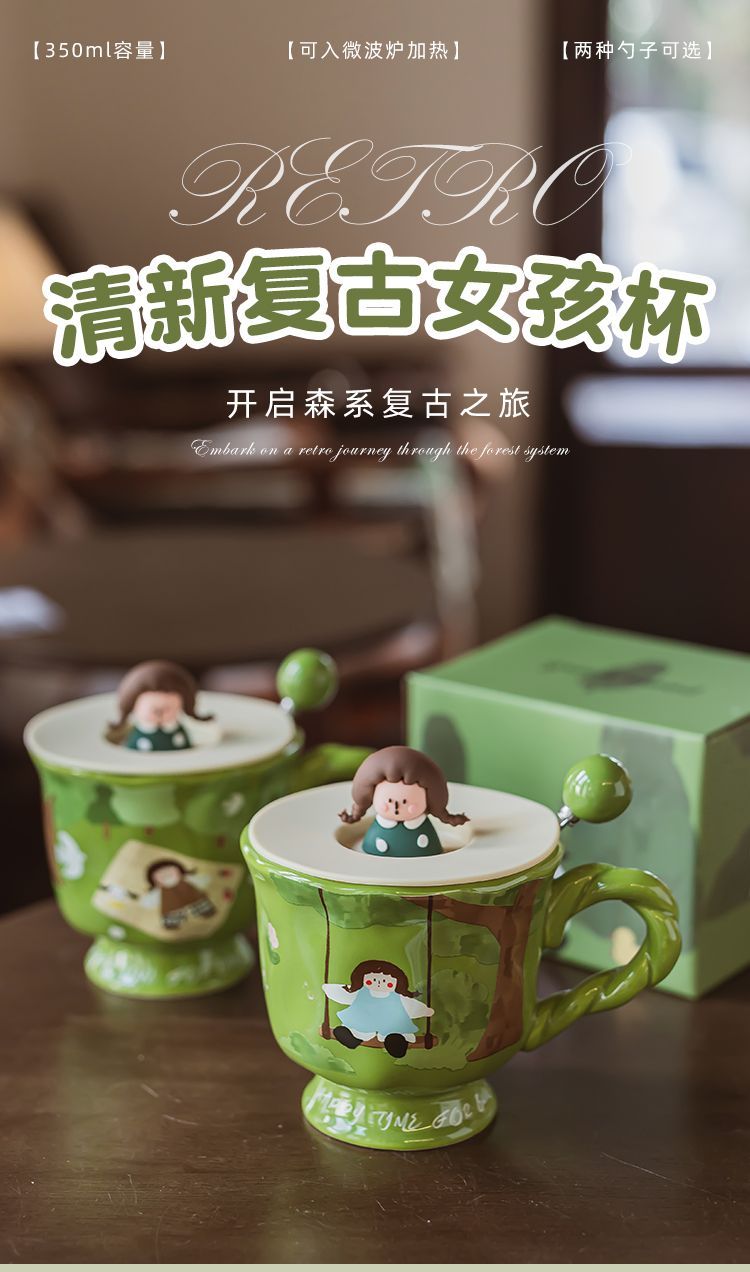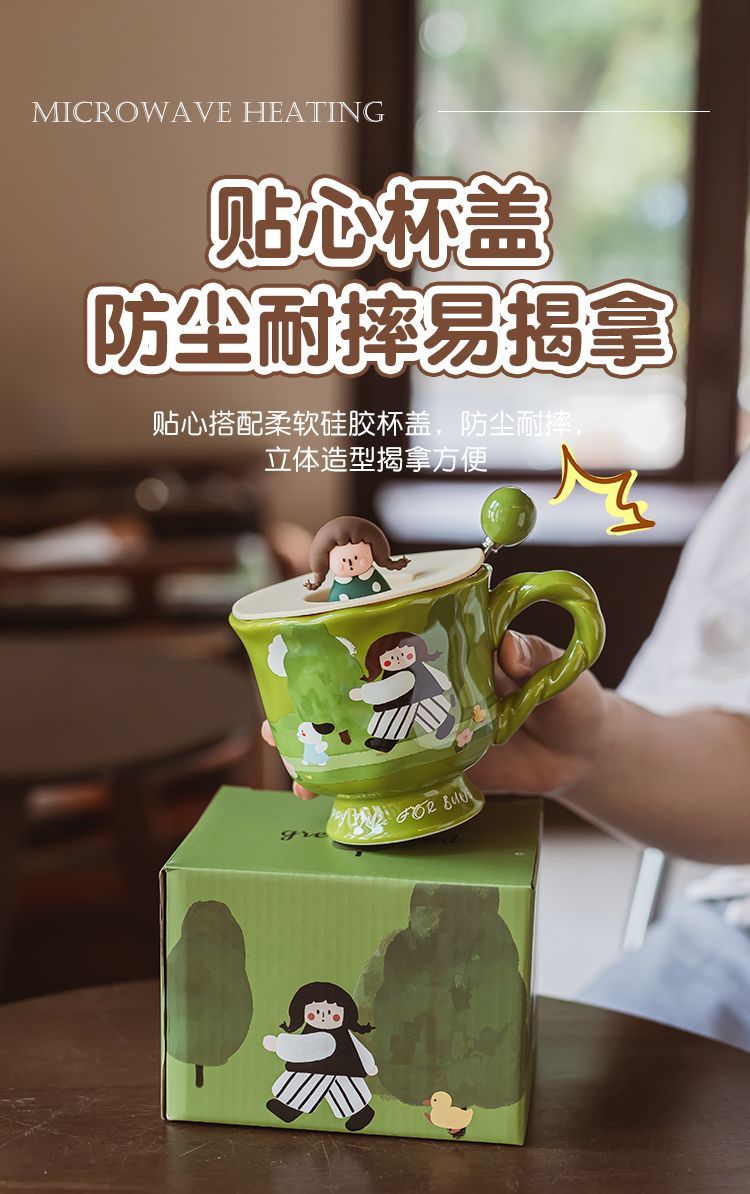 陶瓷杯子带盖勺马克杯可爱女生水杯家用办公室早餐咖啡杯