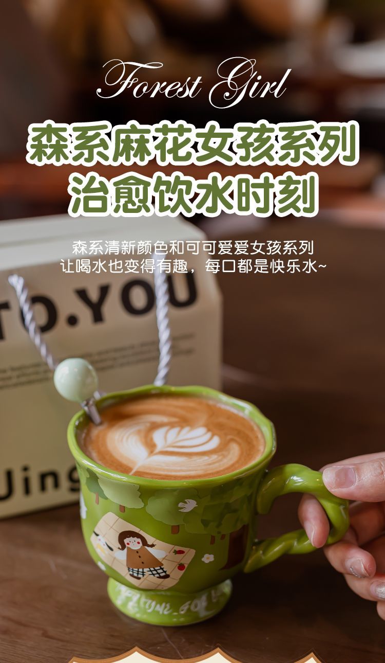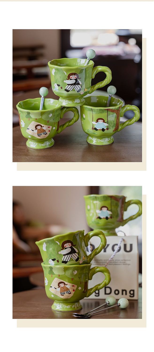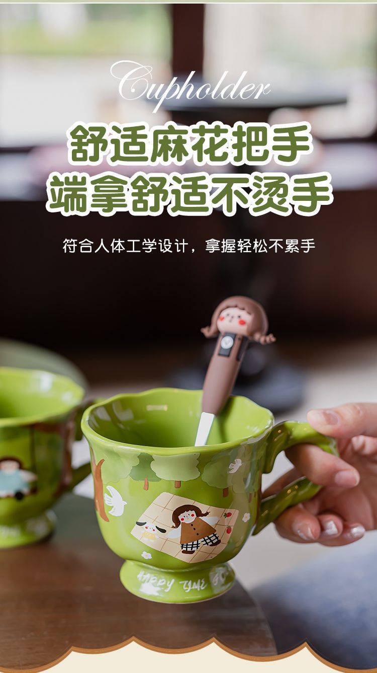 陶瓷杯子带盖勺马克杯可爱女生水杯家用办公室早餐咖啡杯